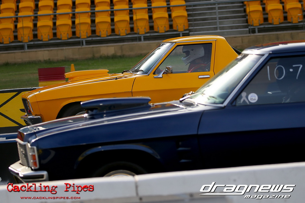 Super Street fielded the largest number of cars of any bracket of the event, and it was Anthony Gattellari with his Holden ute and Bill Hatzi’s wheelstanding Camaro left standing for the final. Gattellari had the start line jump in the final, but both racers pushed each other to a break out at the stripe, Gattellari going under by the least amount with a 10.682 on a 10.69 for the win.