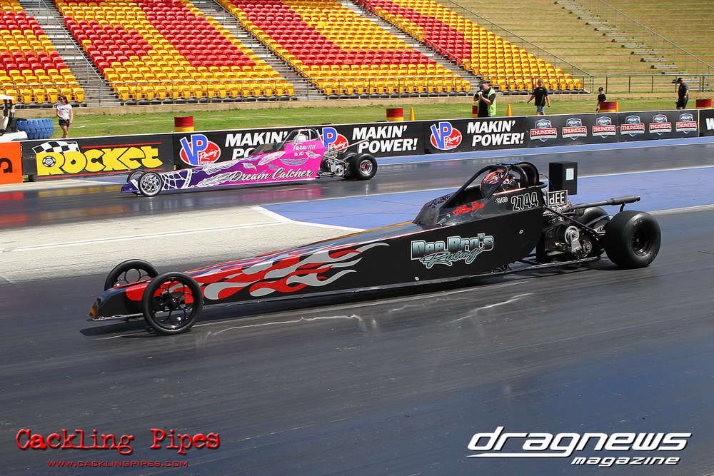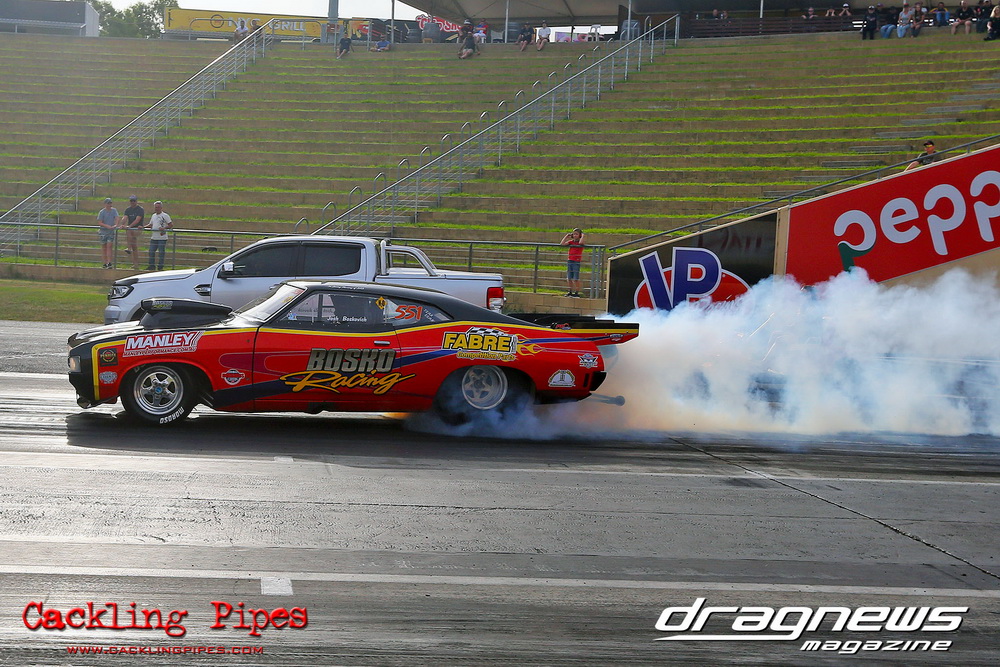 In Super Gas Darryl Stephen dropped a .001 reaction on Vince Panetta in the final, and capped off the run with a 9.910 at the strip for the win, forcing a 9.892 breakout from the Panetta Torana.