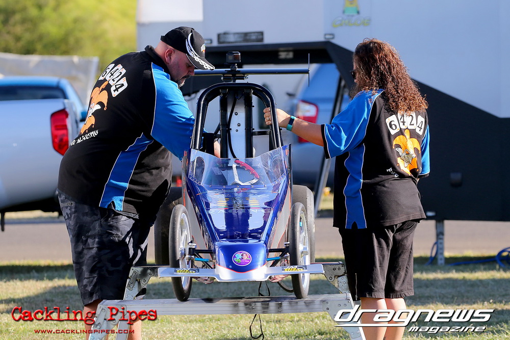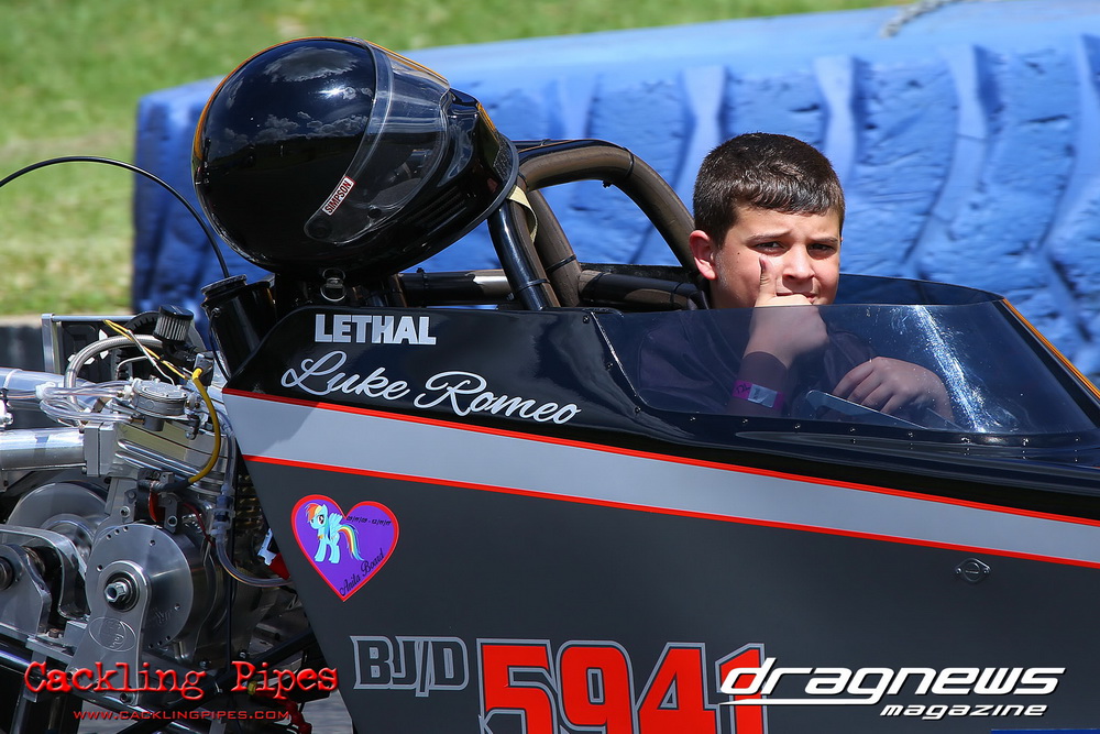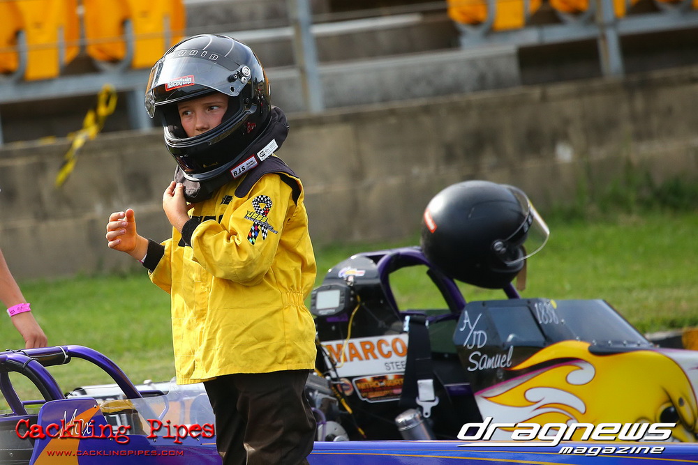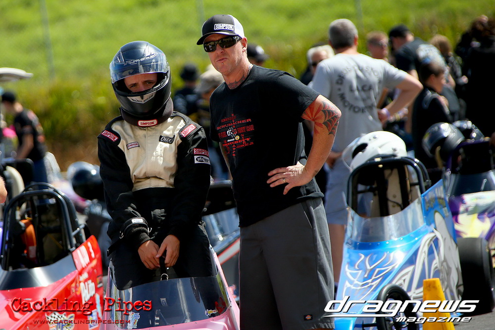 James Hazzard won Junior Dragster on a holeshot with his .012 reaction, and despite Chelsea Smith’s 7.972 on a 7.97, could not run down the Hazzard dragster’s 8.093 on a 8.07.