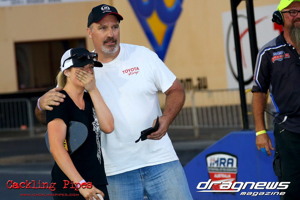 Starting off with Top Sportsman and Paul Crocker honoured his late mate and fellow competitor Frank Palumbo with a win from his little Escort, Crocker overcame a substantial start line deficit to drive around Thomas Leake with a 8.36 on a 8.25.
