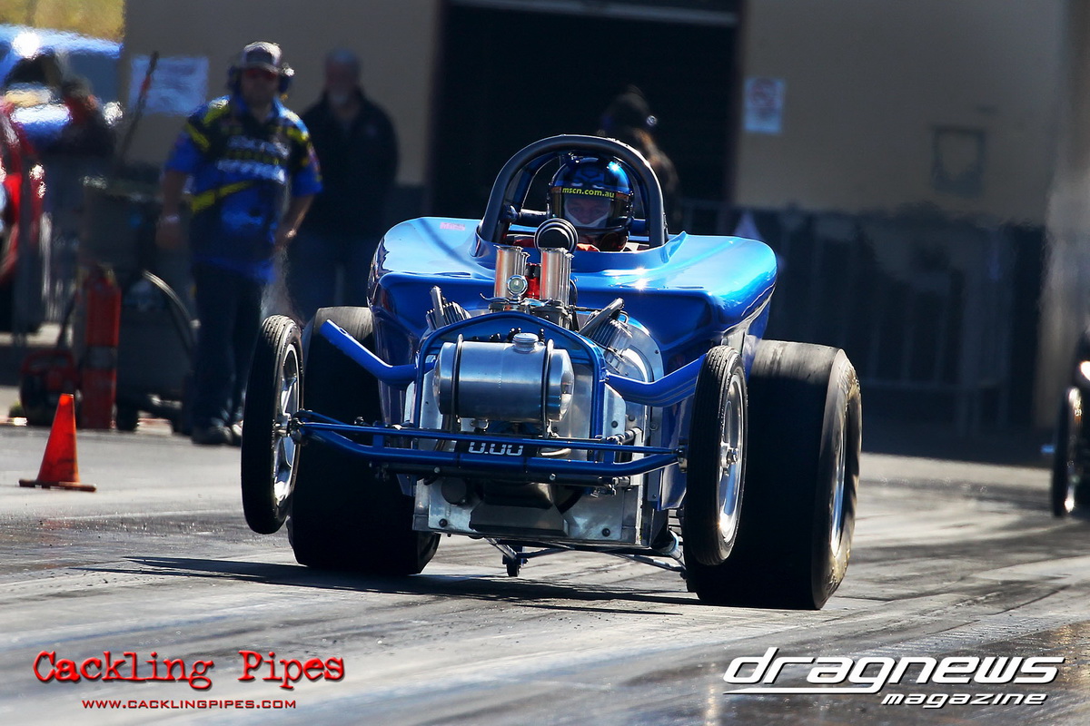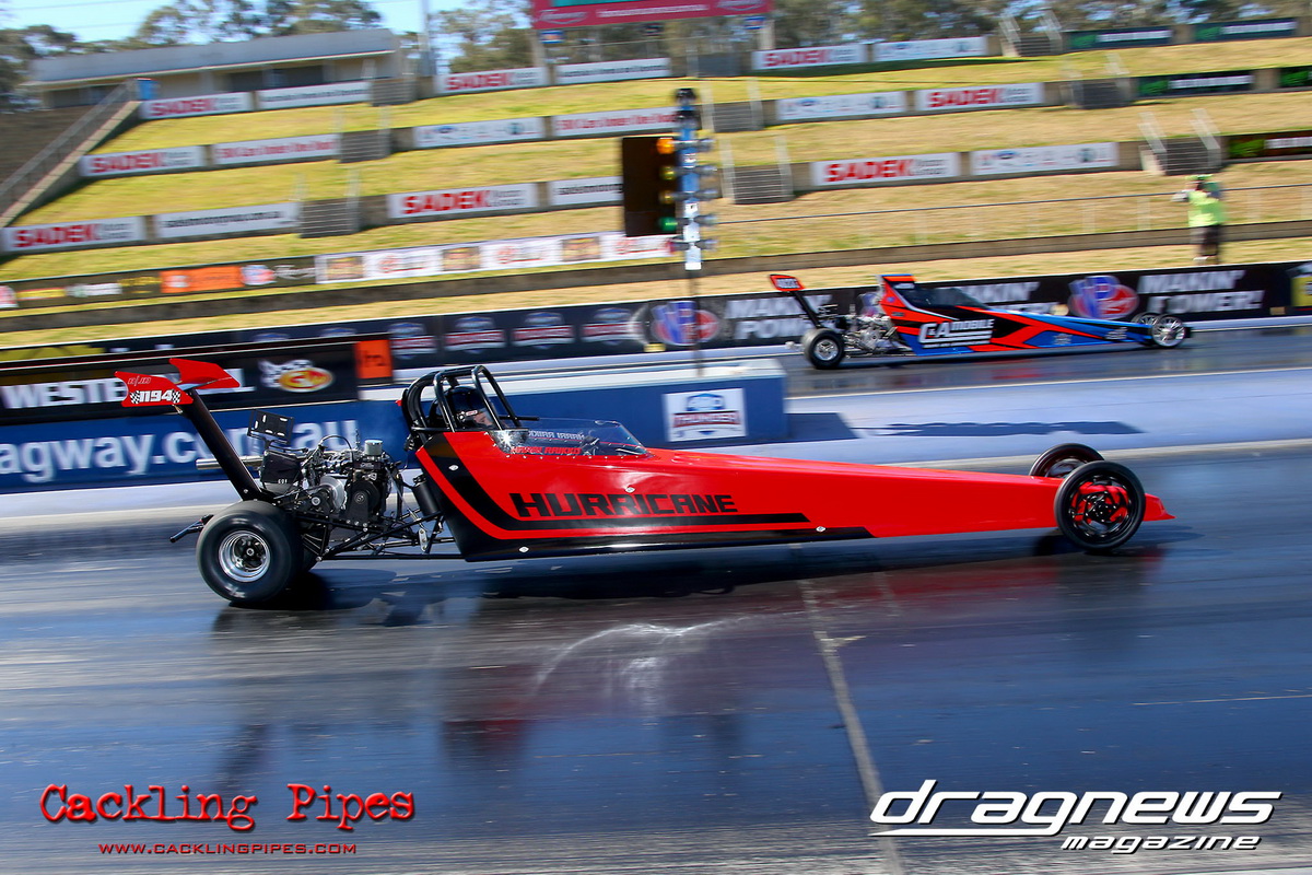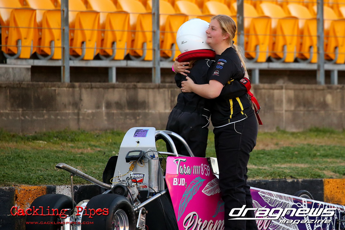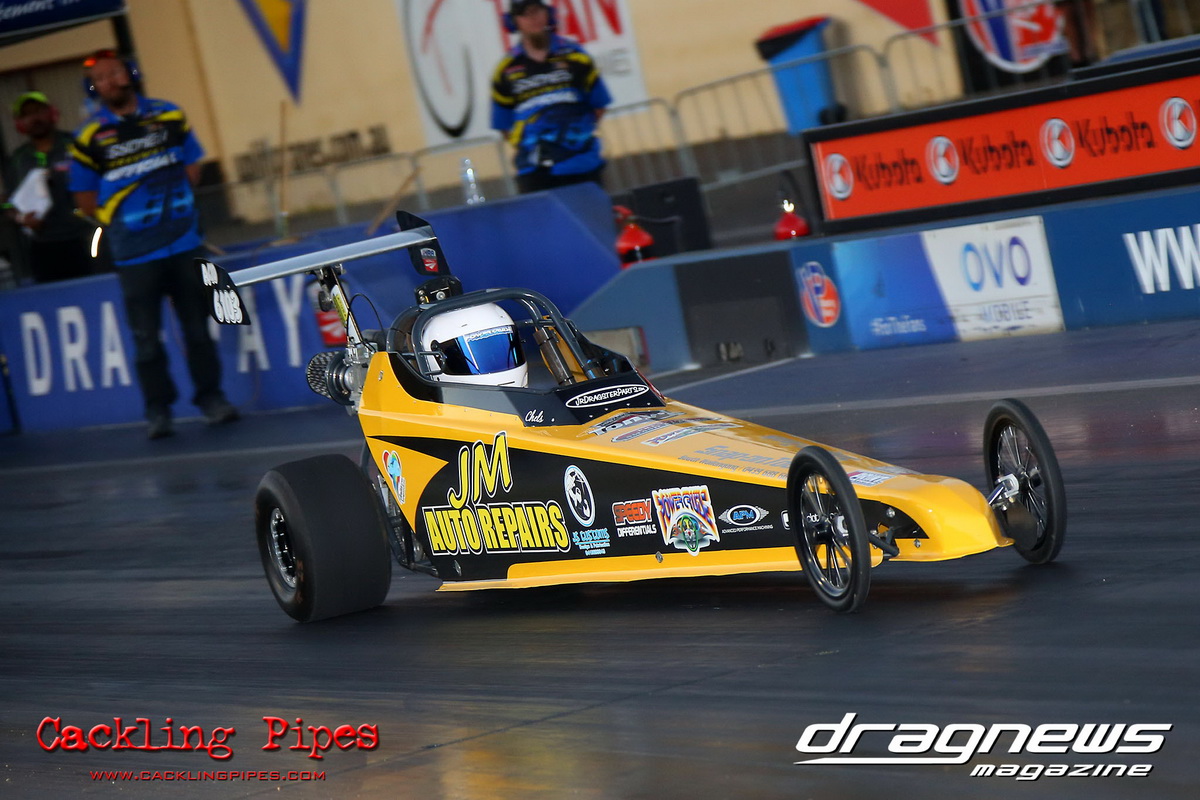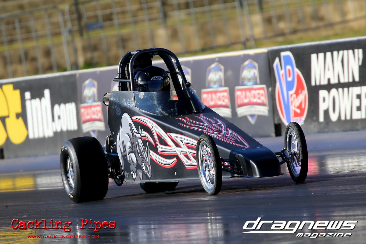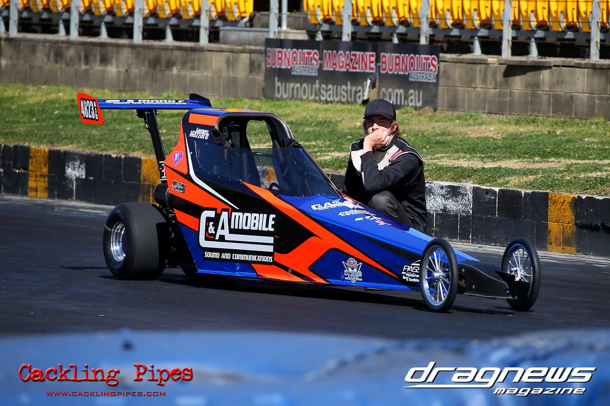 It was a case of better to be lucky than good in Modified with Cheyne Williams taking his first ever win in the class. Williams won every race on behalf of his opponent red lighting – Chris Manks -.016, Brendon Luke -.002 and Peter Ilsley -.023. In the final he faced Allison Stewart in the Boss Bullet dragster, Stewart had top qualified with a perfect reaction but let the button go a perilous 3 thou too quick and Williams in the sweet looking Purple Rain altered would take the event win.