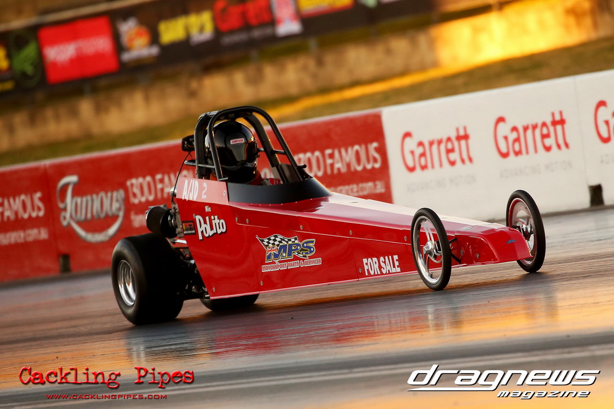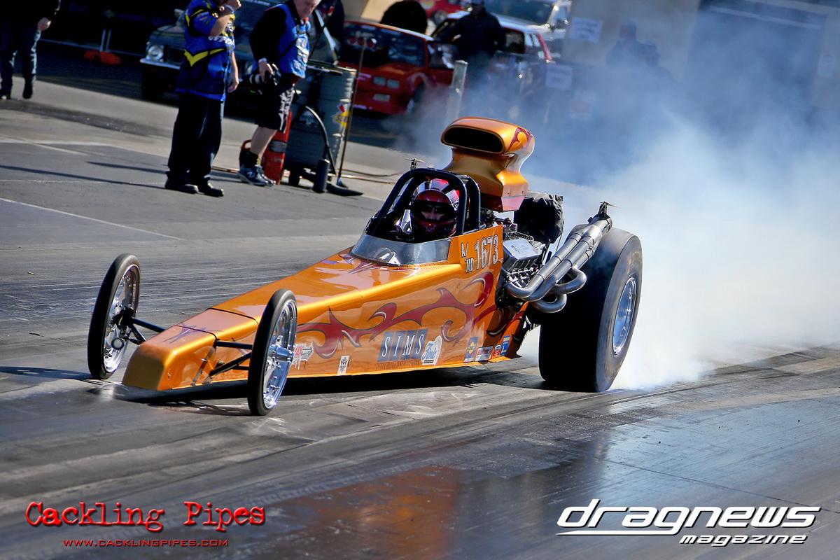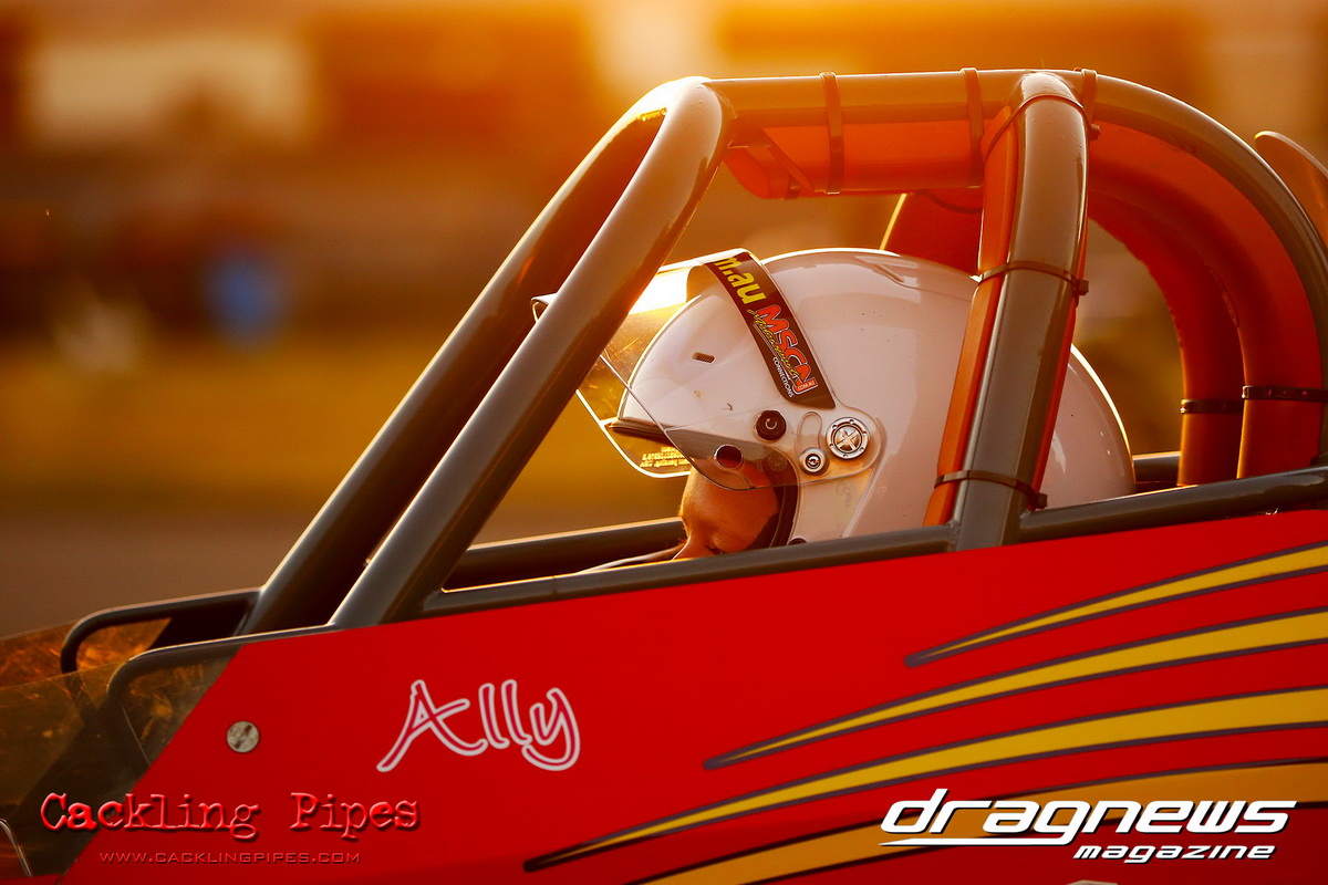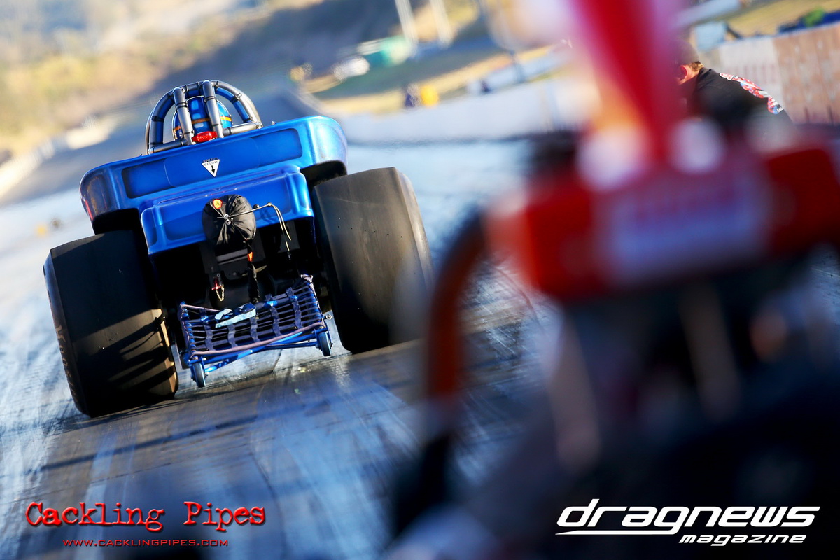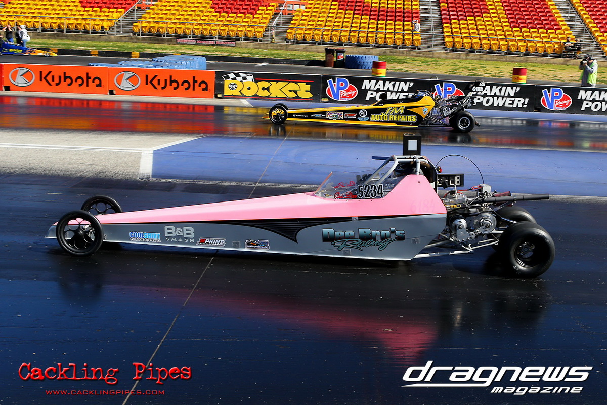 It was a case of better to be lucky than good in Modified with Cheyne Williams taking his first ever win in the class. Williams won every race on behalf of his opponent red lighting – Chris Manks -.016, Brendon Luke -.002 and Peter Ilsley -.023. In the final he faced Allison Stewart in the Boss Bullet dragster, Stewart had top qualified with a perfect reaction but let the button go a perilous 3 thou too quick and Williams in the sweet looking Purple Rain altered would take the event win.