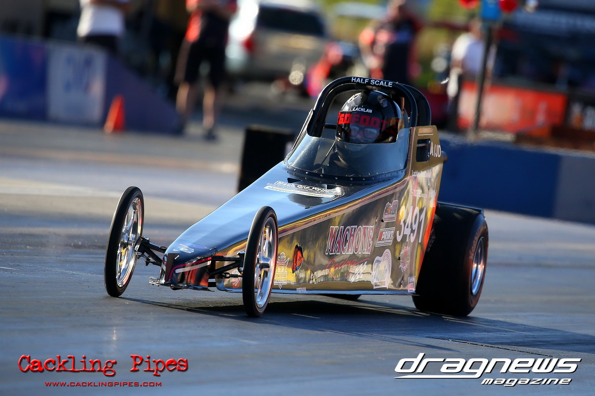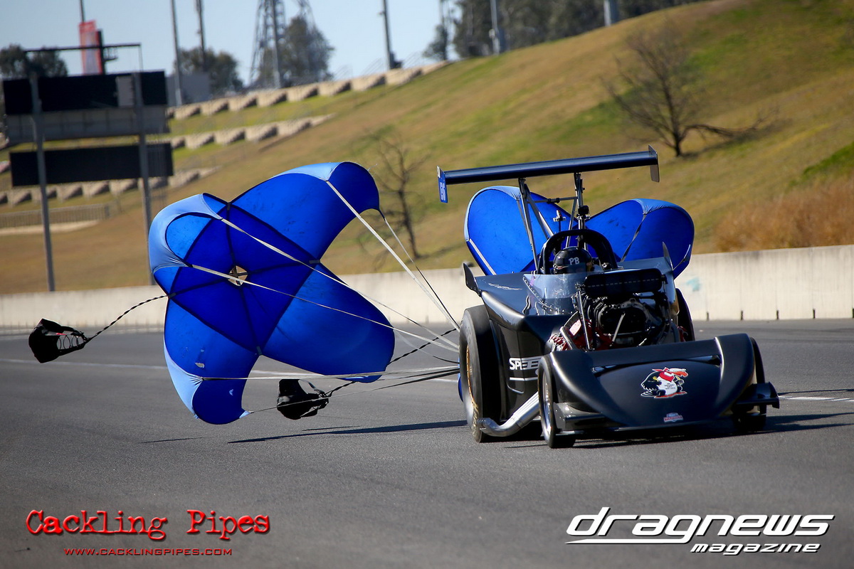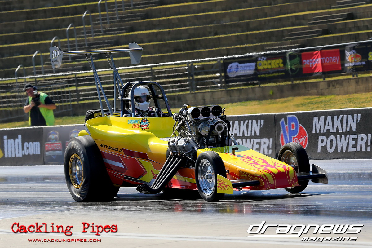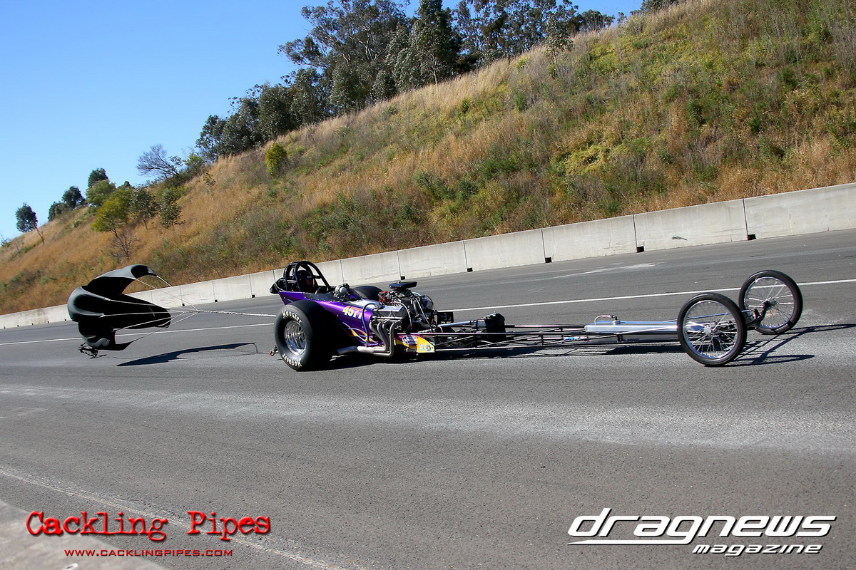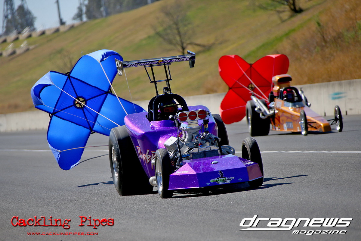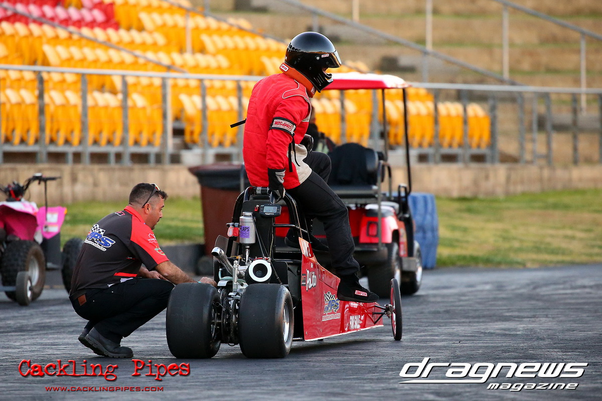 It was a case of better to be lucky than good in Modified with Cheyne Williams taking his first ever win in the class. Williams won every race on behalf of his opponent red lighting – Chris Manks -.016, Brendon Luke -.002 and Peter Ilsley -.023. In the final he faced Allison Stewart in the Boss Bullet dragster, Stewart had top qualified with a perfect reaction but let the button go a perilous 3 thou too quick and Williams in the sweet looking Purple Rain altered would take the event win.