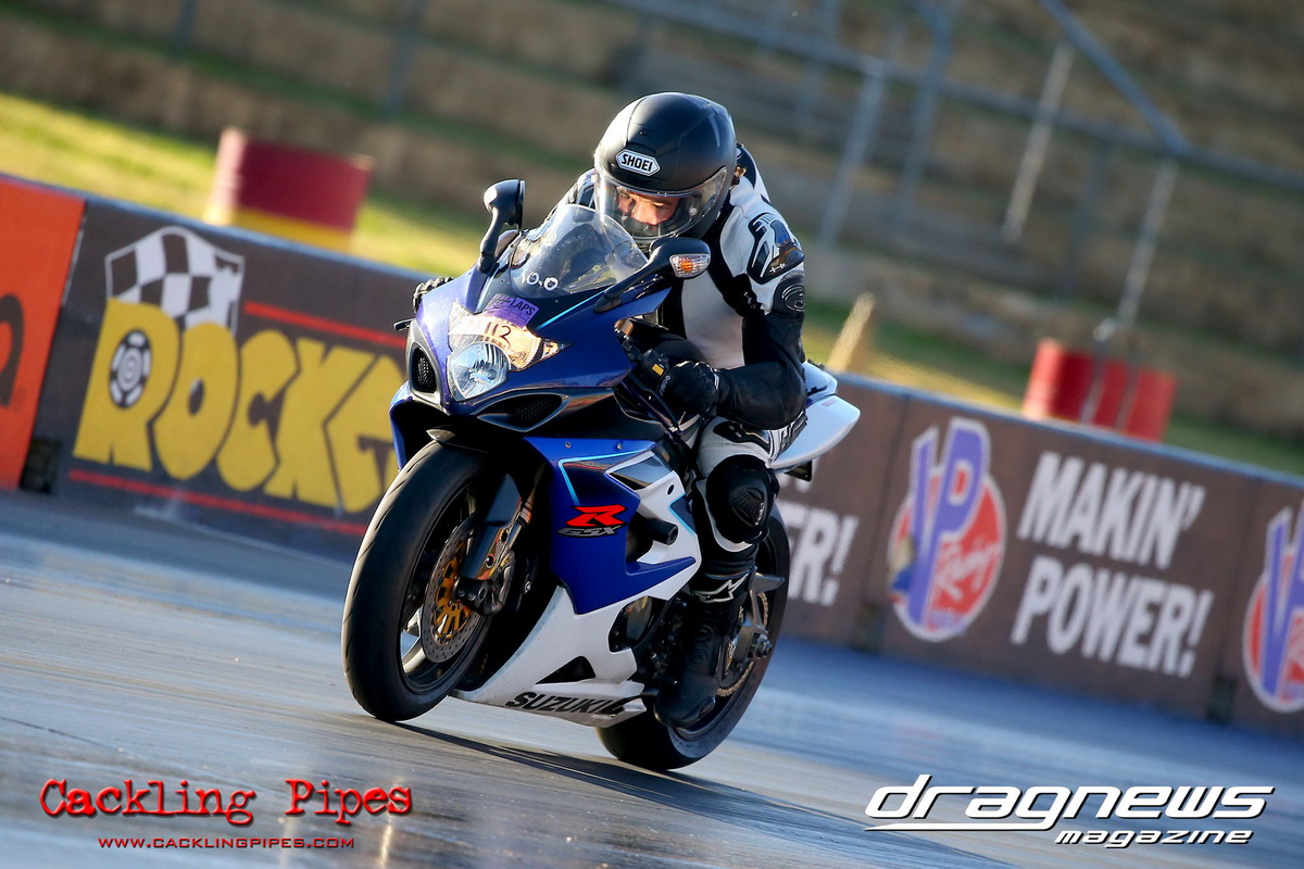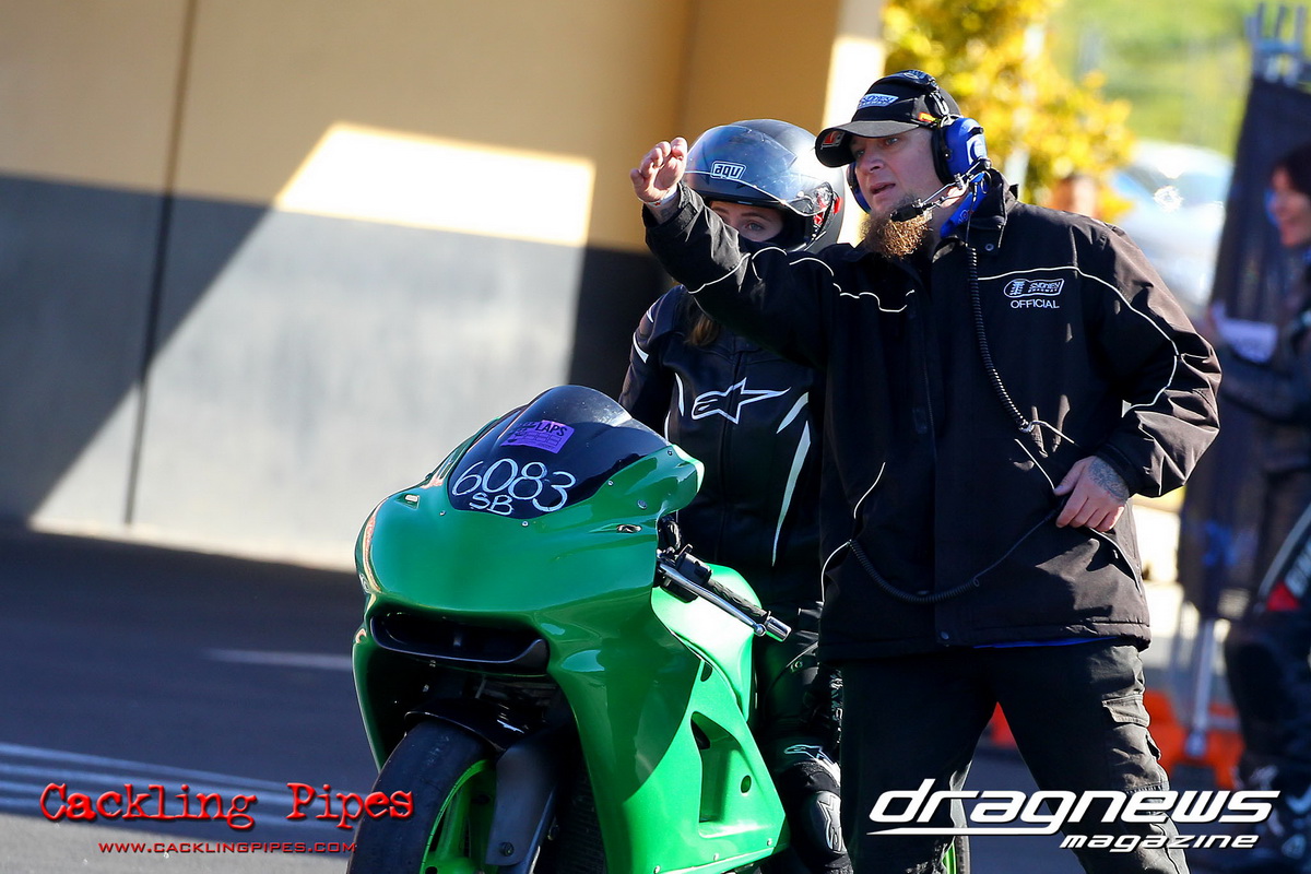 Street Bike got off to an unfortunate start with championship leader Sharona Reddy having a moment in the braking area with her Honda and taking a tumble. Reports had Reddy a little banged up and sore, but we hope to see her back for the next round. However, her championship lead also took a hit with Belinda Mannix now joining her as equal leader and the conclusion of the event. The event win itself went to Brian Vernon in his first showing in the series this year aboard his triumph when opponent Phil Gardner red lit.