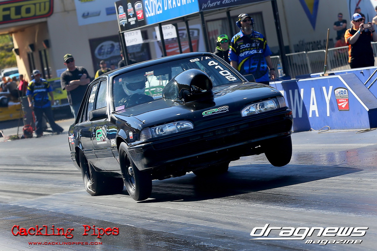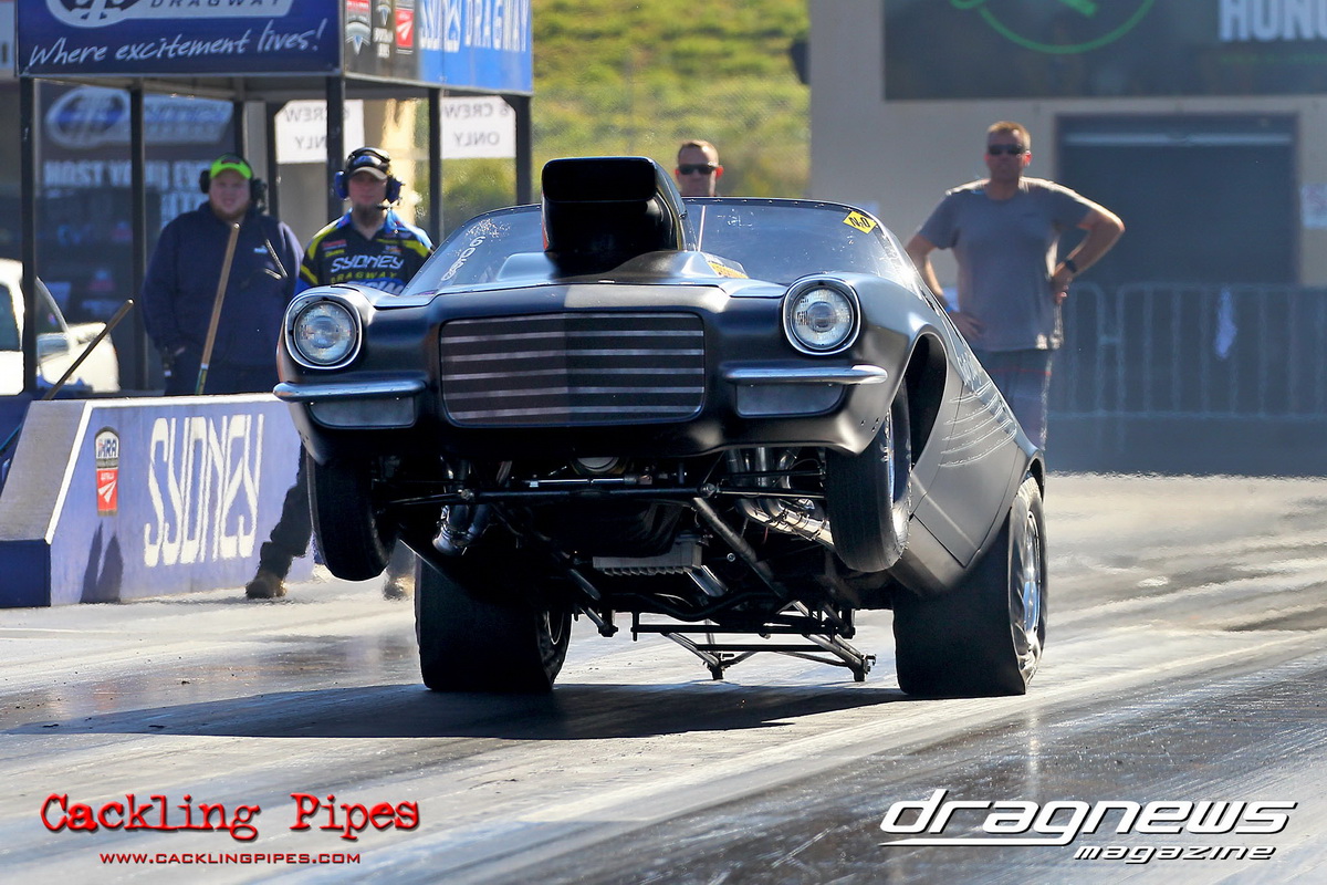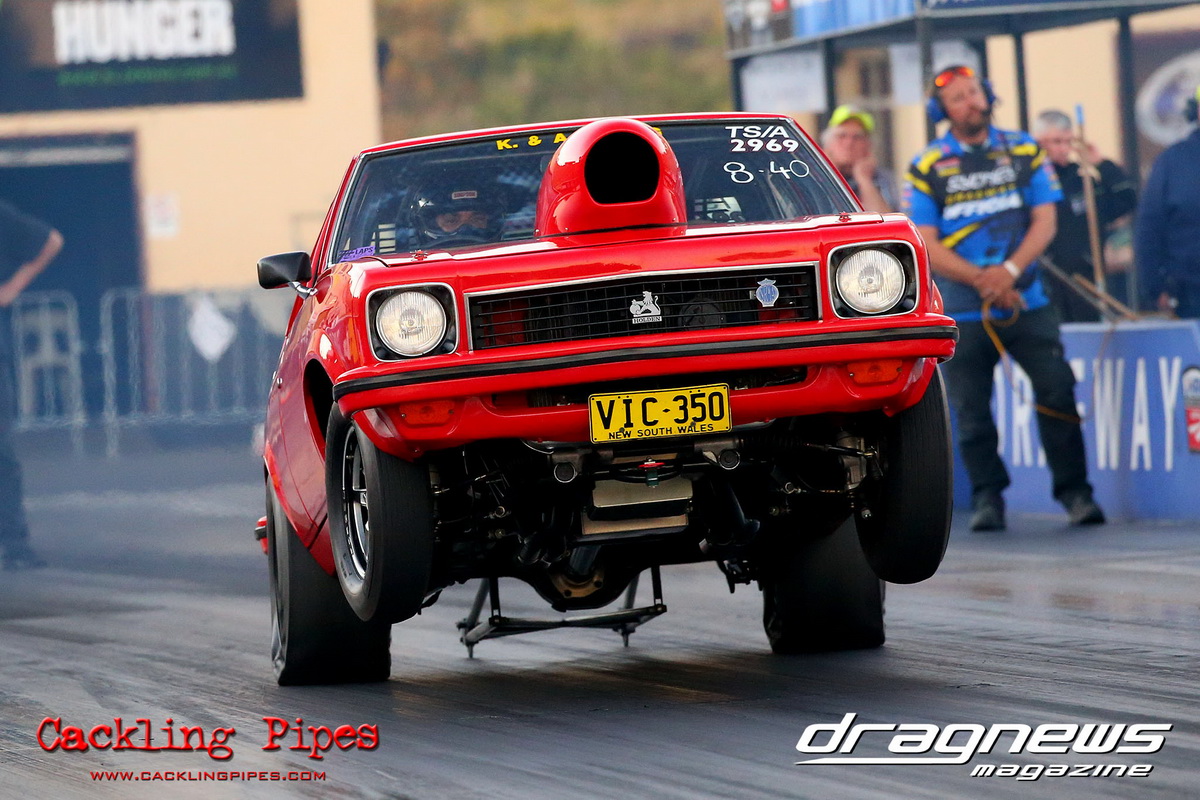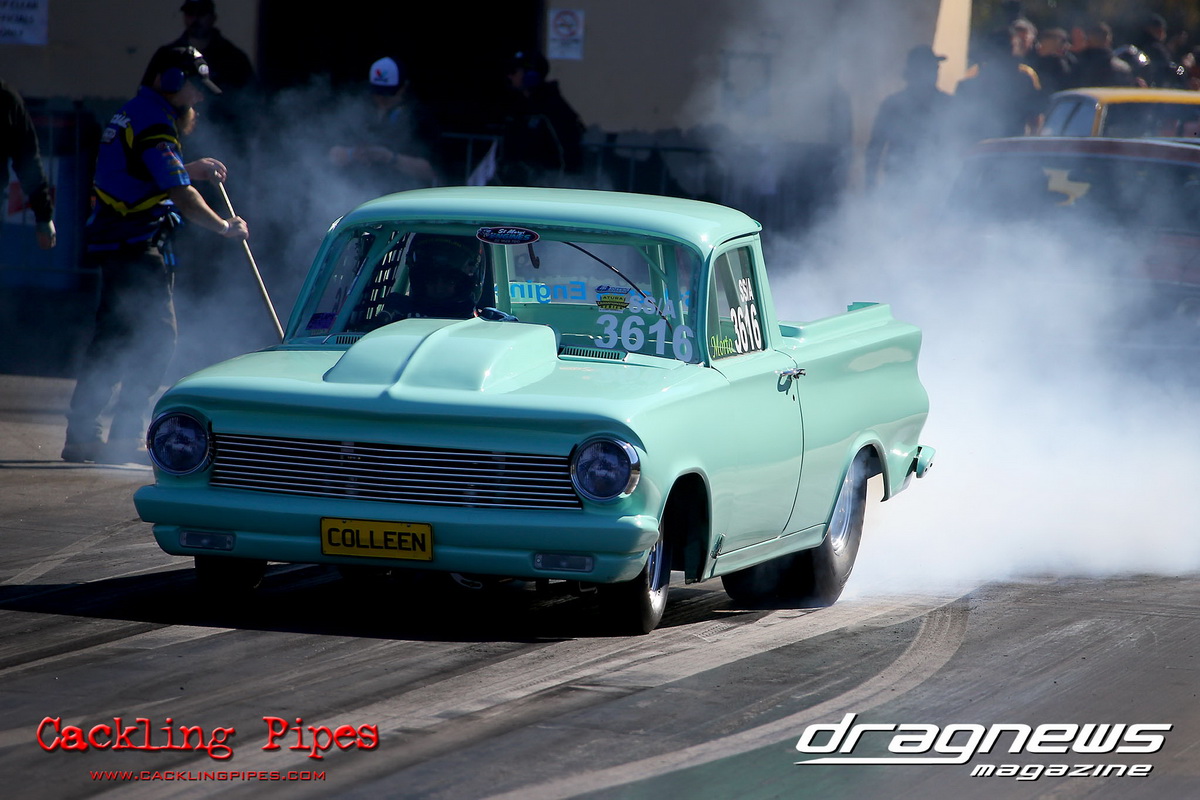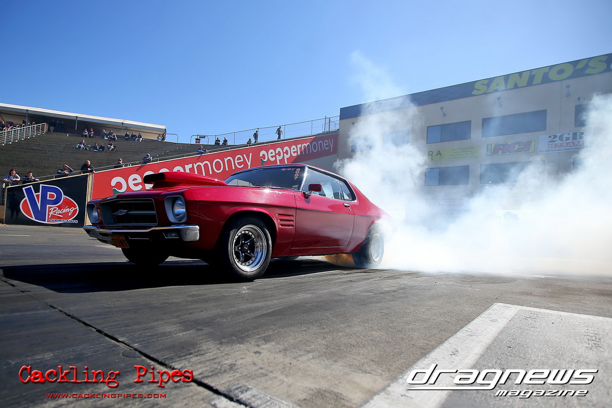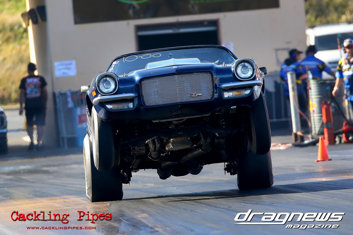 Conversely it was O’Connor’s start line game that got him the win in the final against Victor Tsatlogianis’ wheelstanding Torana with a .015. Tsatlogianis was let down by his reaction after carding a .002 in the semi-final, with even a tight 8.415 on a 8.40 at the line from the Torana unable to overcome his .139 tree. O’Connor taking the win with his nitrous Camaro.