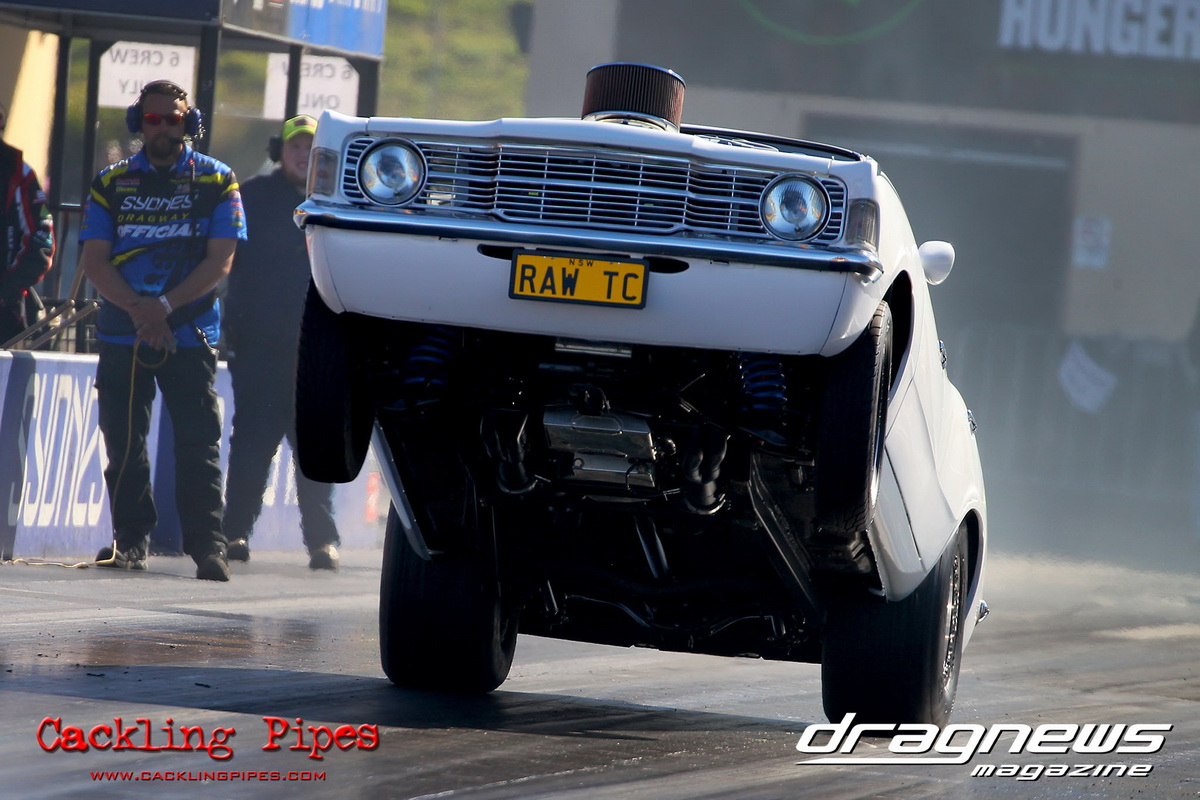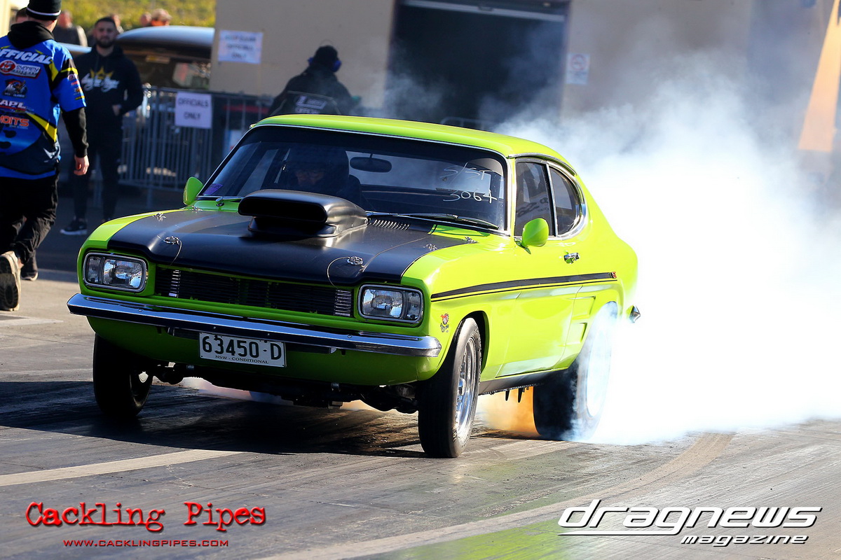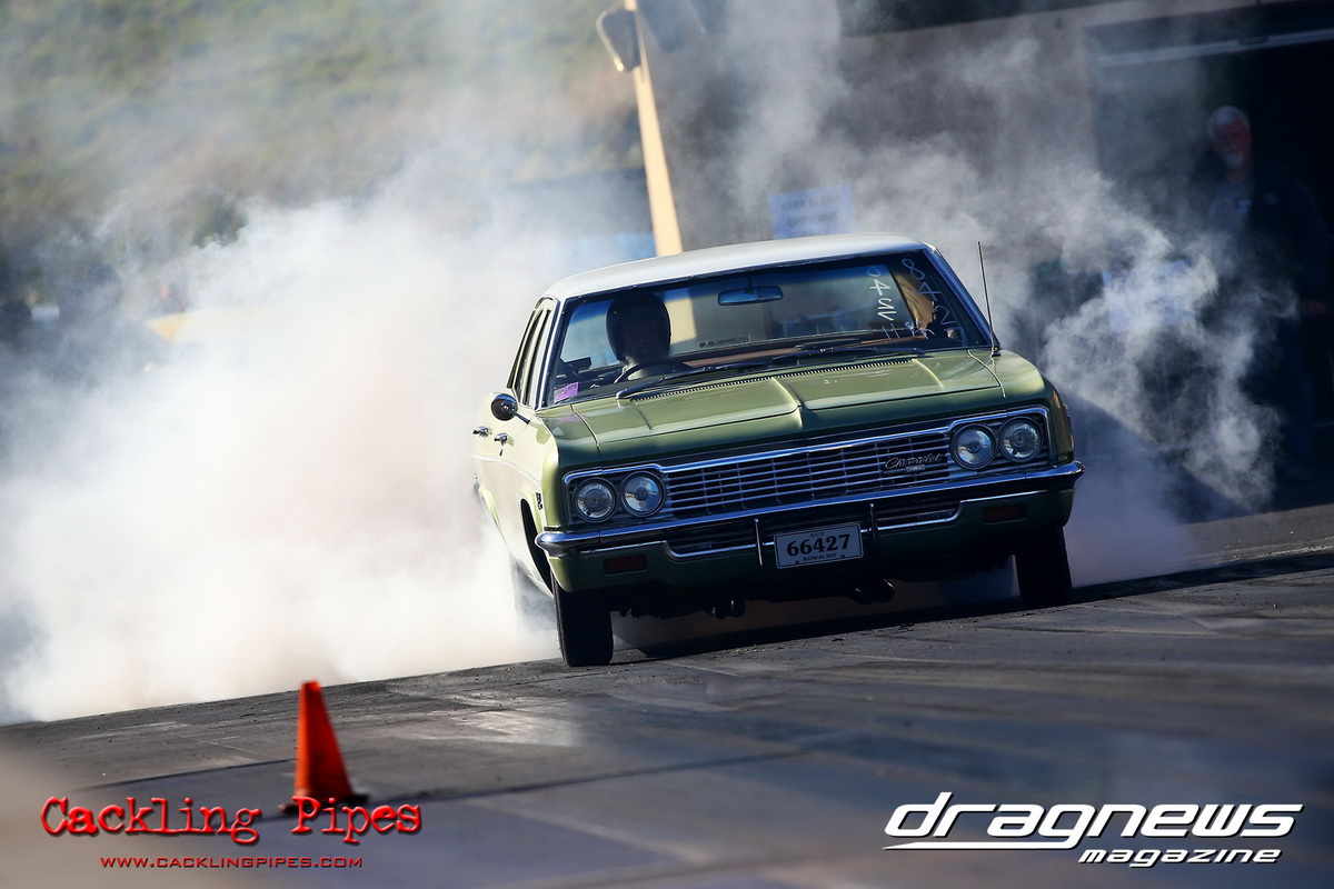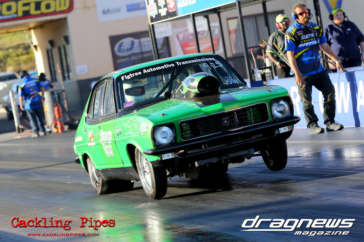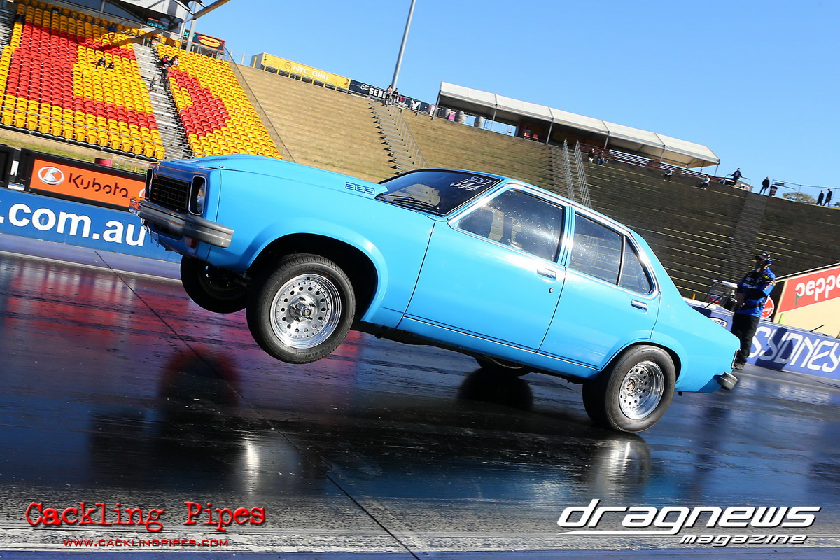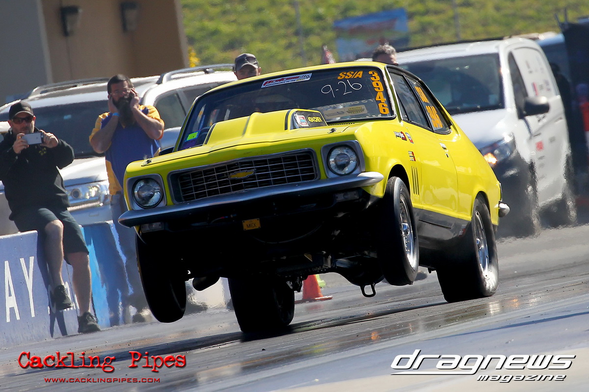 Conversely it was O’Connor’s start line game that got him the win in the final against Victor Tsatlogianis’ wheelstanding Torana with a .015. Tsatlogianis was let down by his reaction after carding a .002 in the semi-final, with even a tight 8.415 on a 8.40 at the line from the Torana unable to overcome his .139 tree. O’Connor taking the win with his nitrous Camaro.