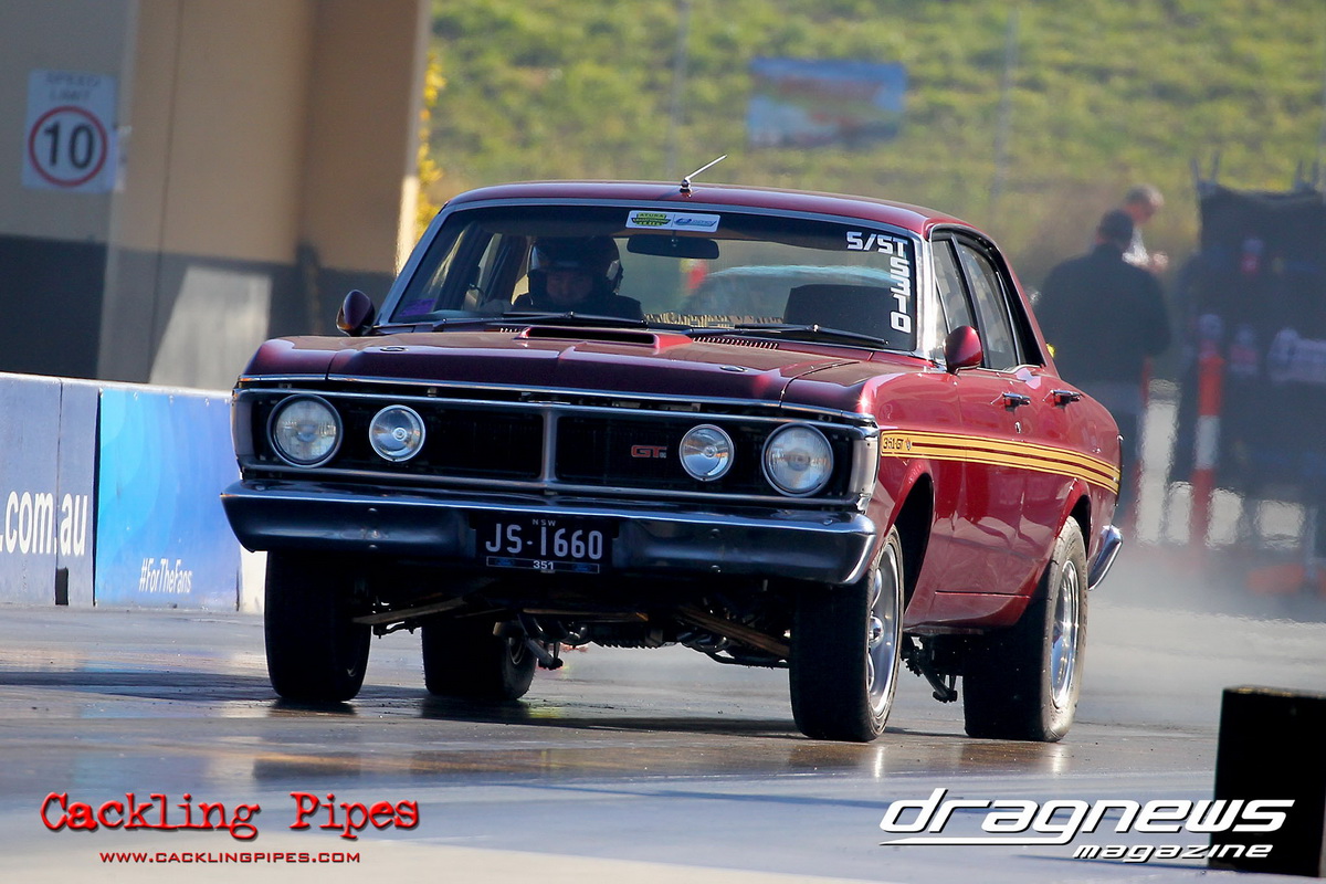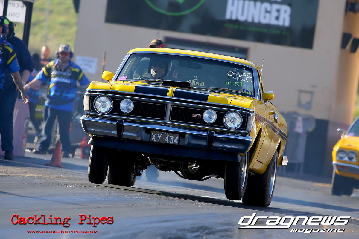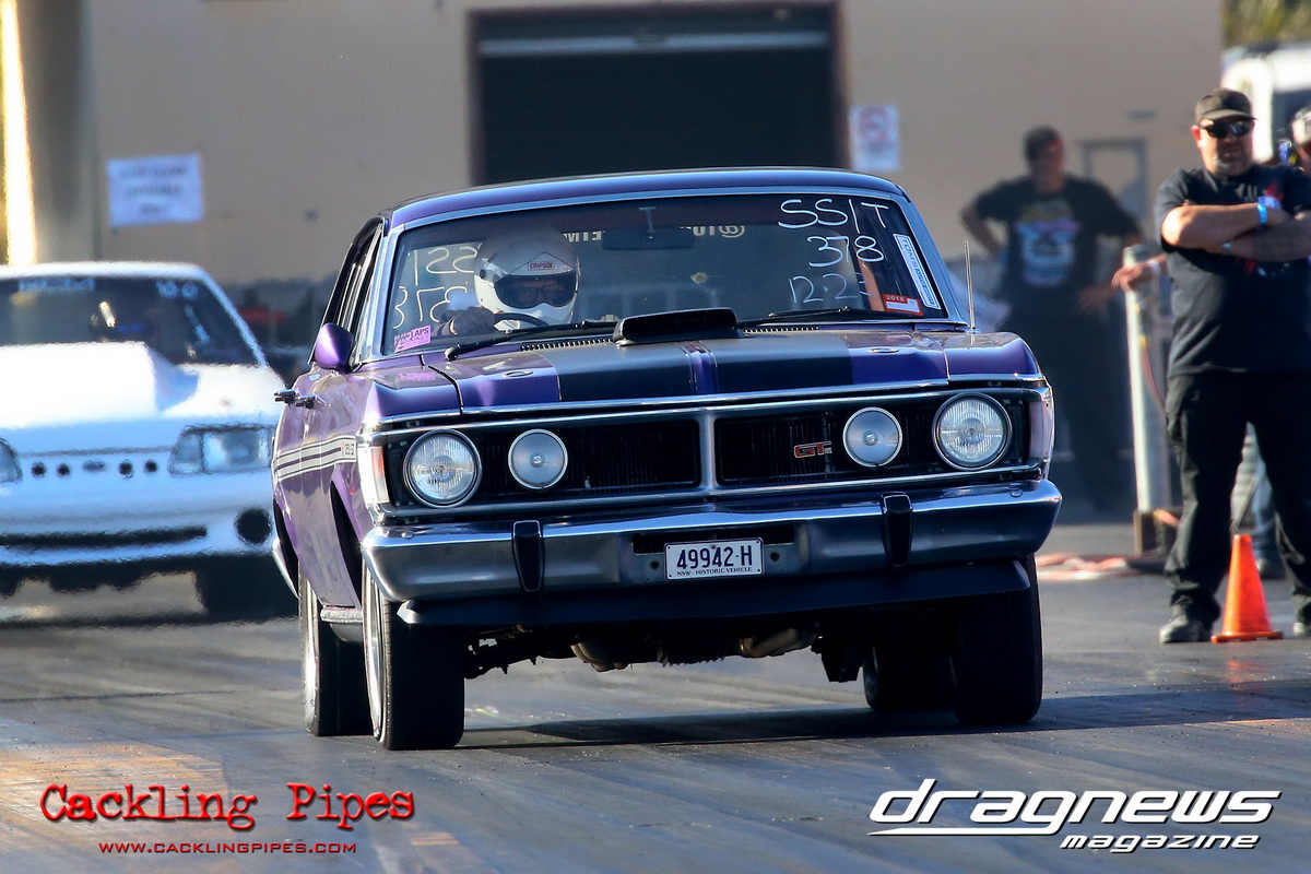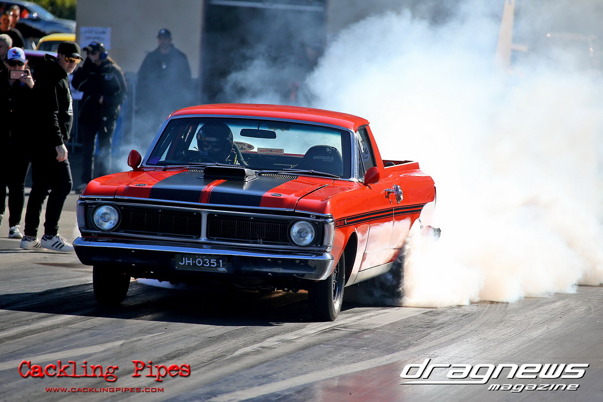In Super Sedan, Jim Denaro stamped his dominance in the toughest of brackets with a third win of the season to give him a 40 point padding in the championship over Marco Tolomeo, the only likely other contender now for the title. Although David Gruber is still an outside chance lurking in third after reaching the final against Denaro, but couldn’t match the Cortina’s 9.335 on a 9.33 run.