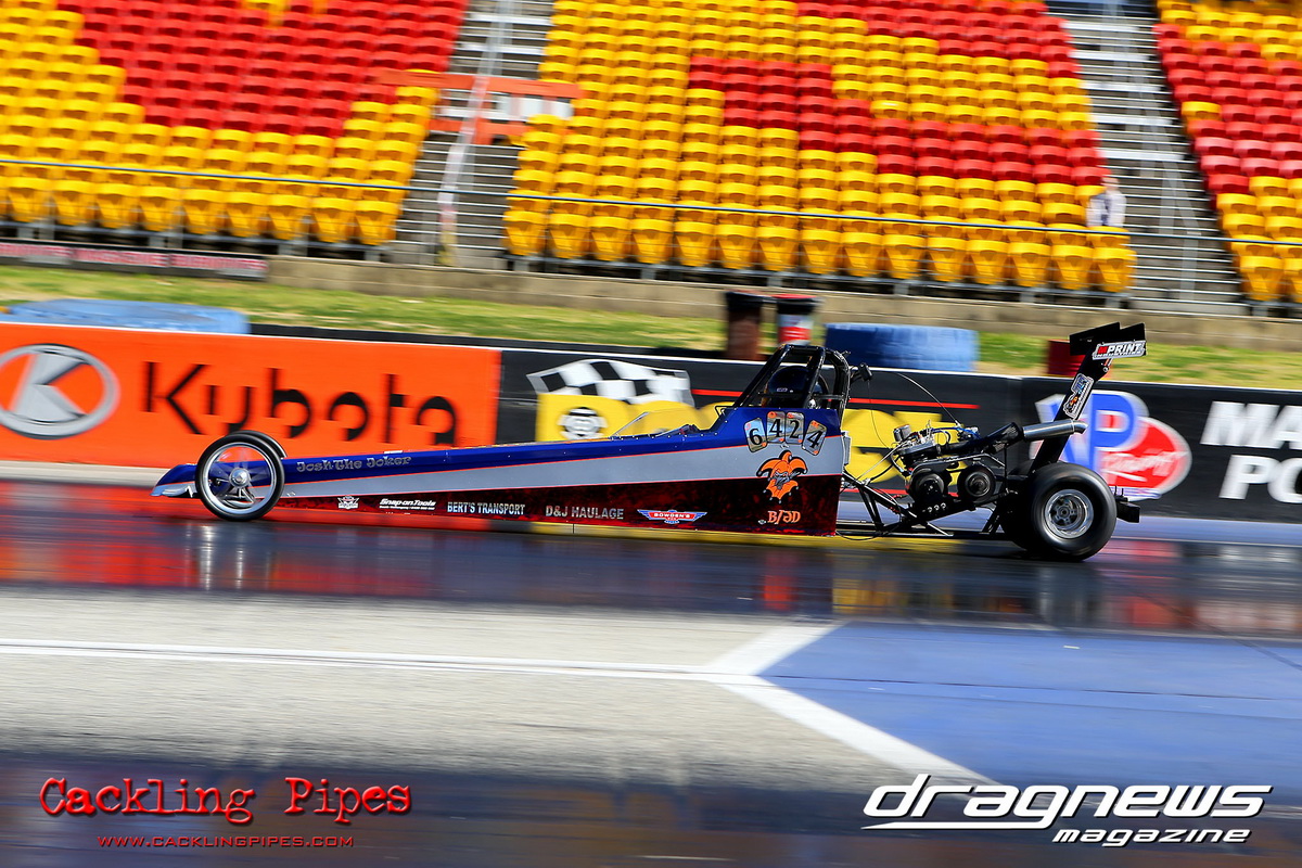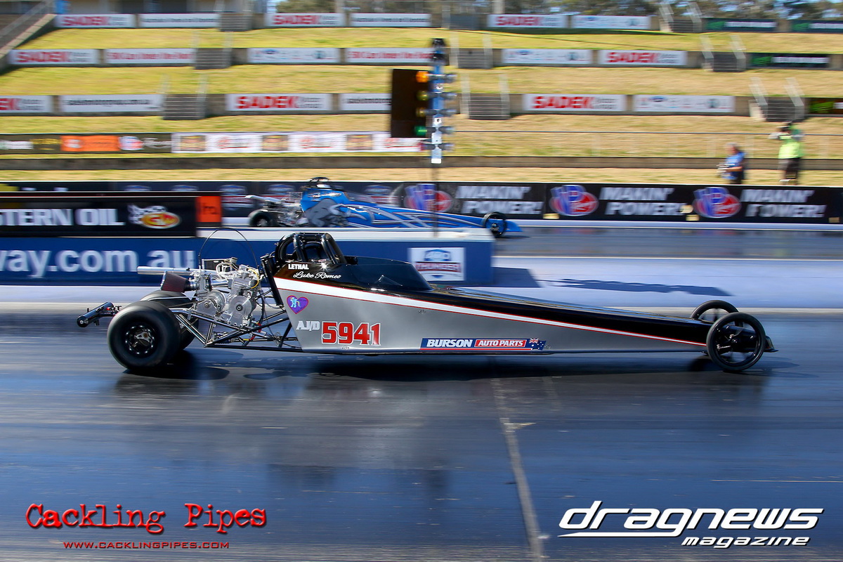 Jono Roylance is proving consistency is the way to go in Top Sportsman by leading the points without an event win, Roylance was the victim of some tough racing in the semi-final, despite a .004 light was still run down on the stripe by the eventual event winner Brett O’Connor’s 8.153 on 8.14 run.