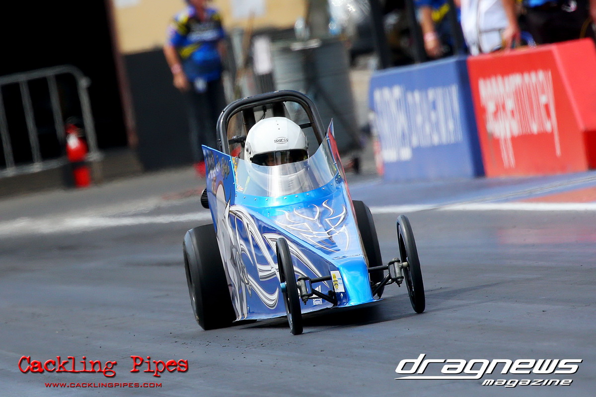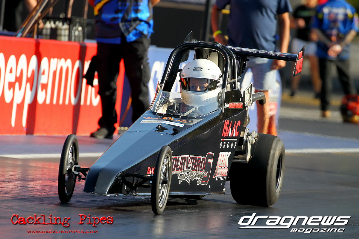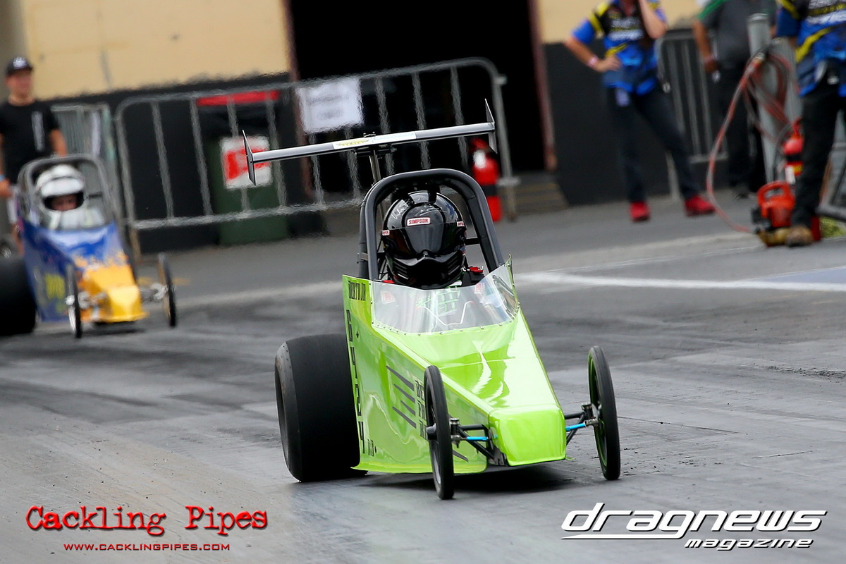 Junior Dragster eliminations became the story of Archie Boskovich, the third-generation racer competing in his second ever event defeated brother Charlie in round one and proceeded to dispense his much more experienced rivals to make the final in his Don Garlits ‘Swamp Rat’ tribute machine. Facing Jackson Perri in final, Boskovich’s dream run ended with a red light and Perri claimed the first round of the series with a dragster that was barely off his dial in all day.