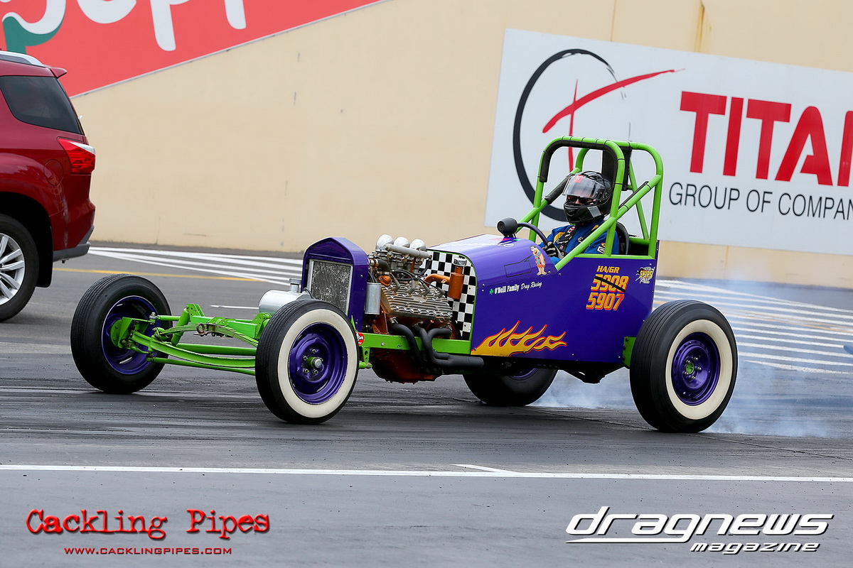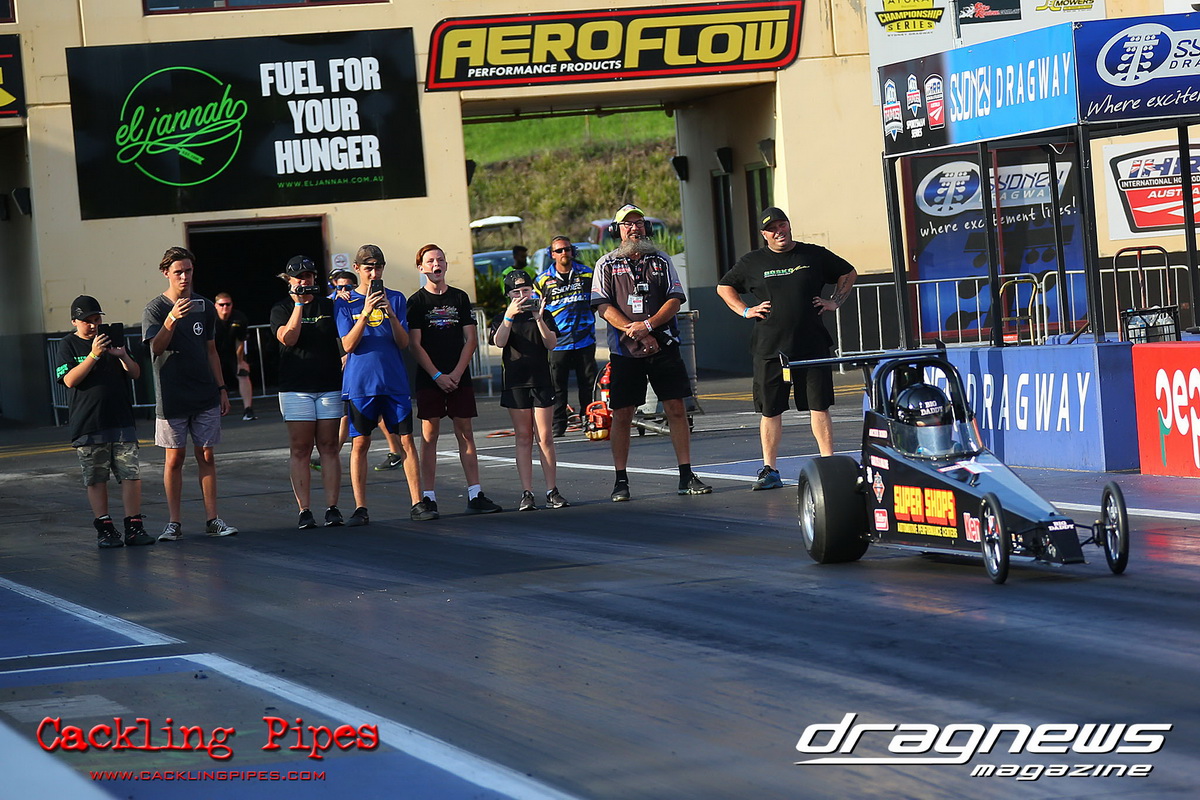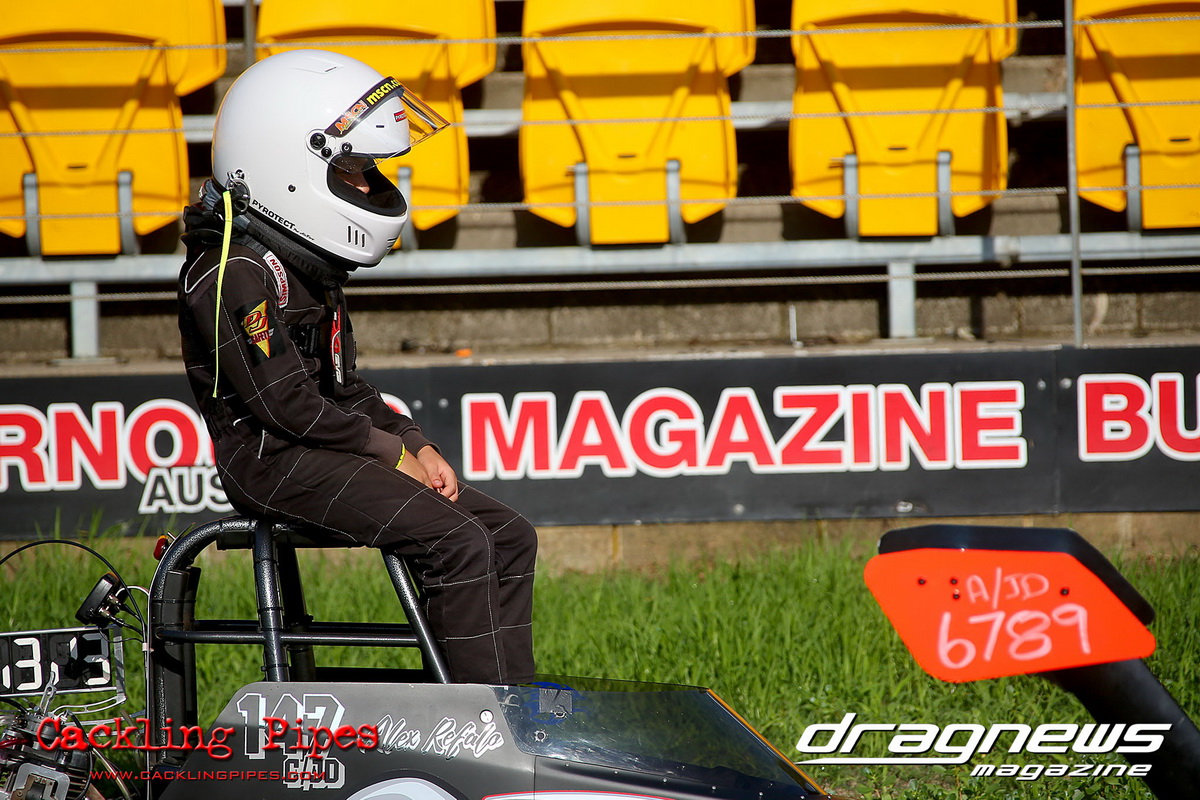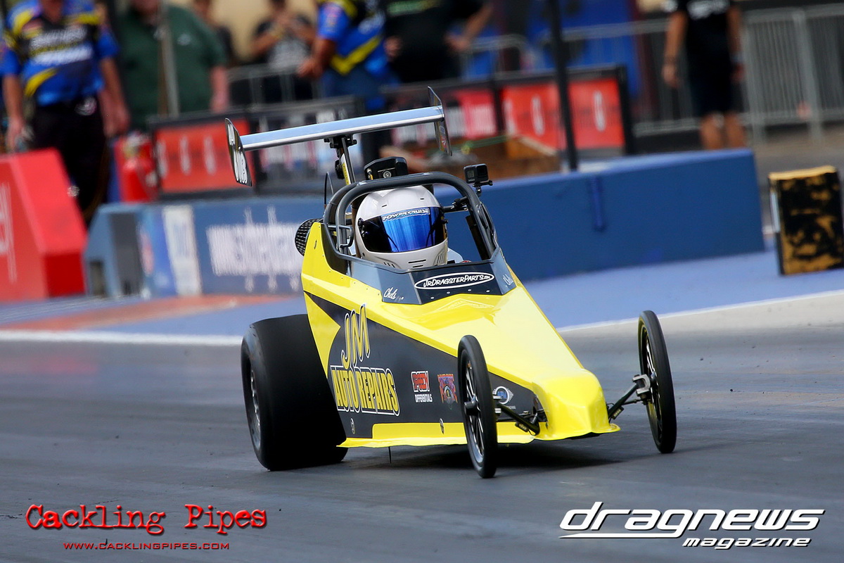 Junior Dragster eliminations became the story of Archie Boskovich, the third-generation racer competing in his second ever event defeated brother Charlie in round one and proceeded to dispense his much more experienced rivals to make the final in his Don Garlits ‘Swamp Rat’ tribute machine. Facing Jackson Perri in final, Boskovich’s dream run ended with a red light and Perri claimed the first round of the series with a dragster that was barely off his dial in all day.
