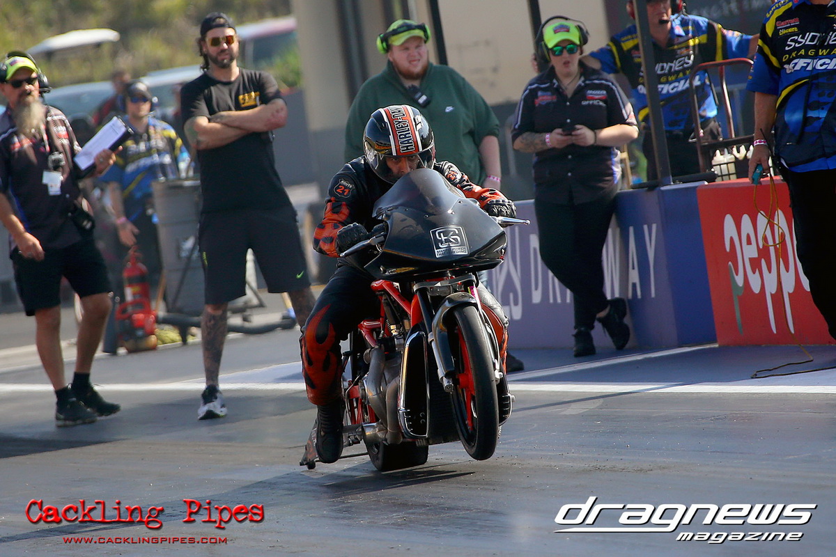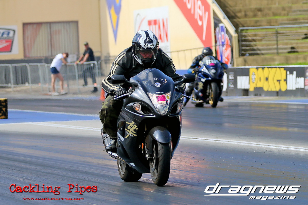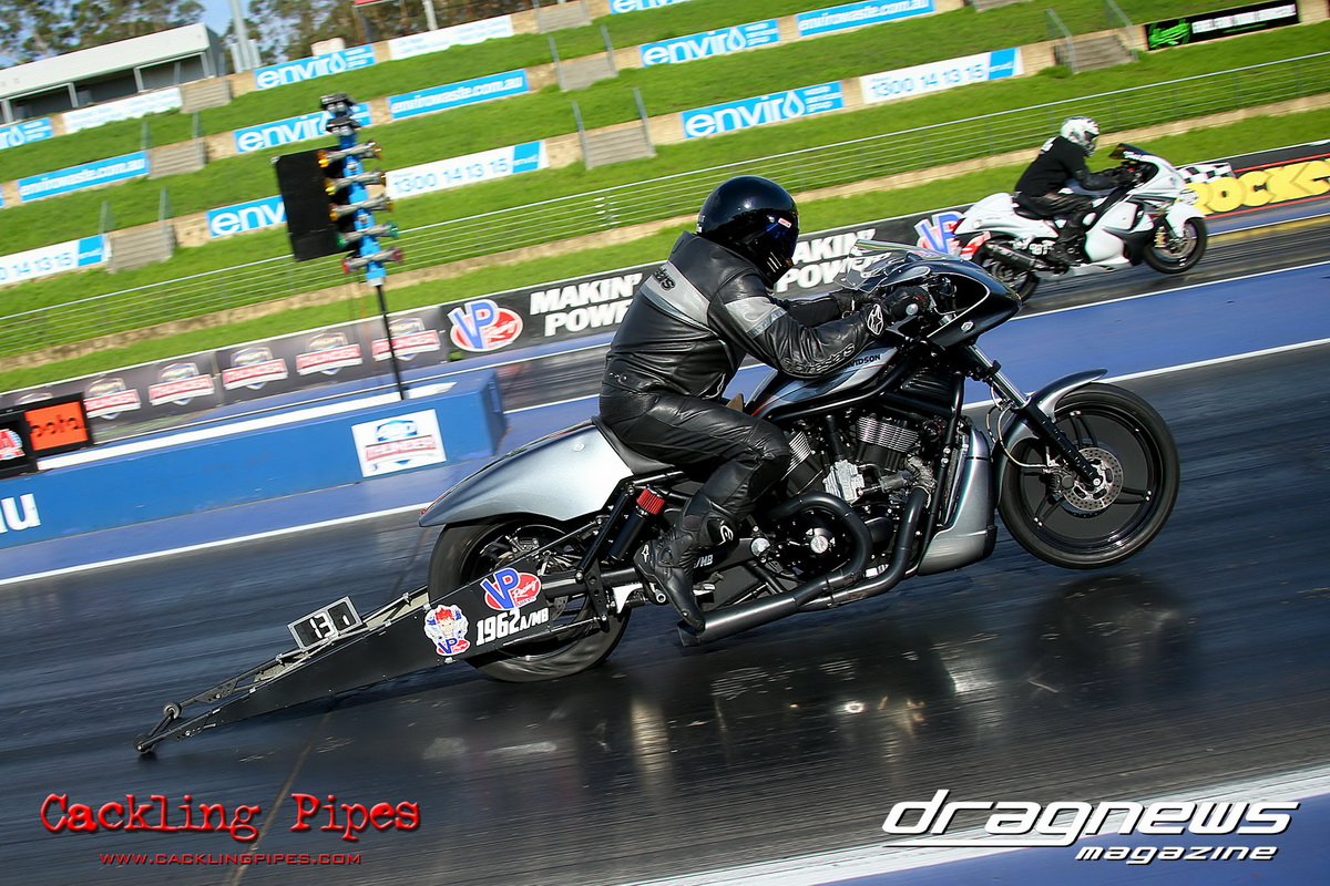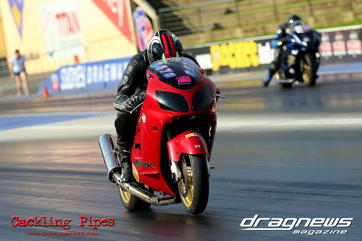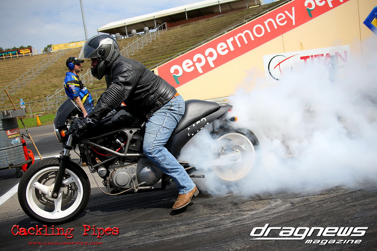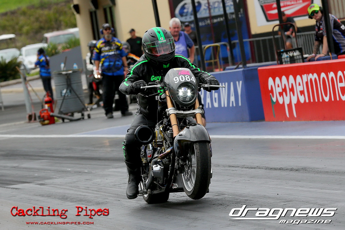 In Modified Bike, reigning champion Sean Ricketts had the perfect start to his title defence with a win over a broken Chris Hocking in final. After winning the semi in the same circumstance when his opponent broke out, Hocking merely staged his Aprilia out of hope. Ricketts also survived semi-final drama with a leaking Kawasaki, only to have fortunately drawn a solo run.