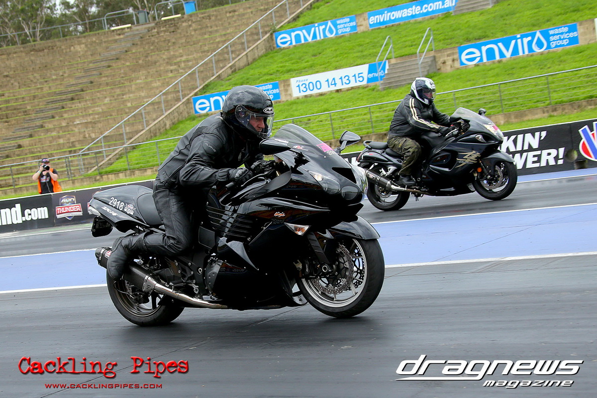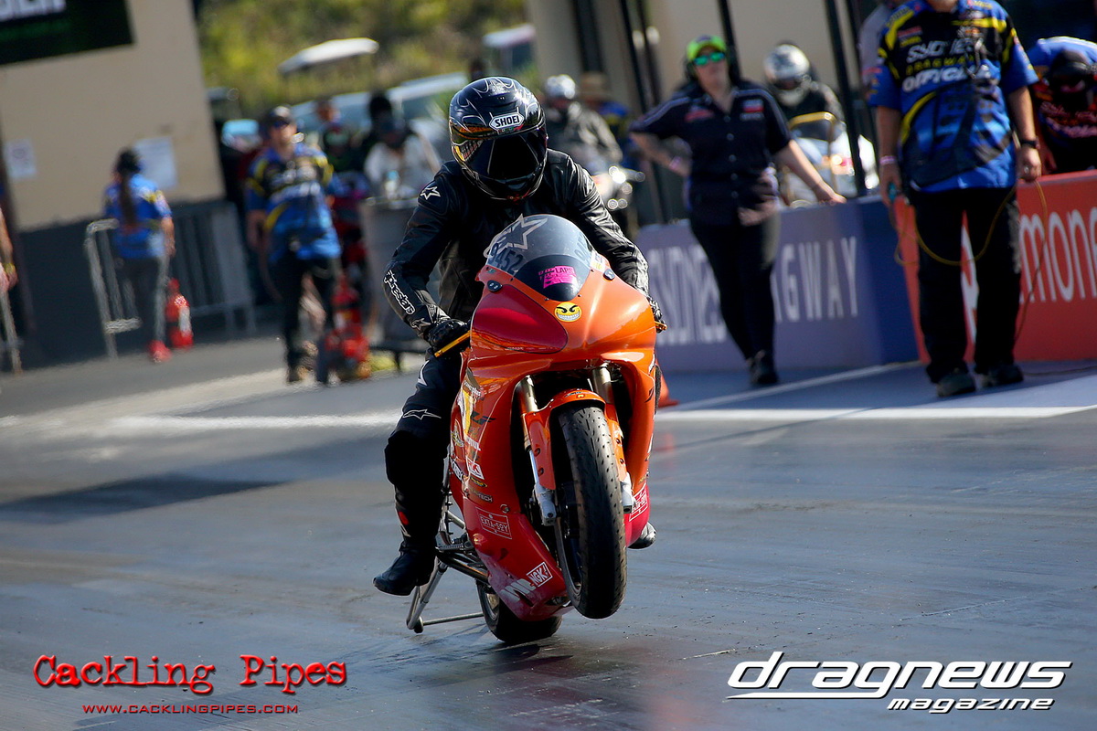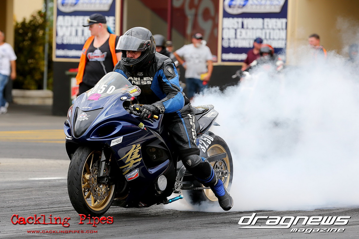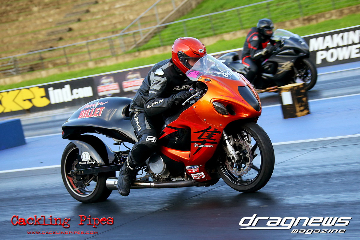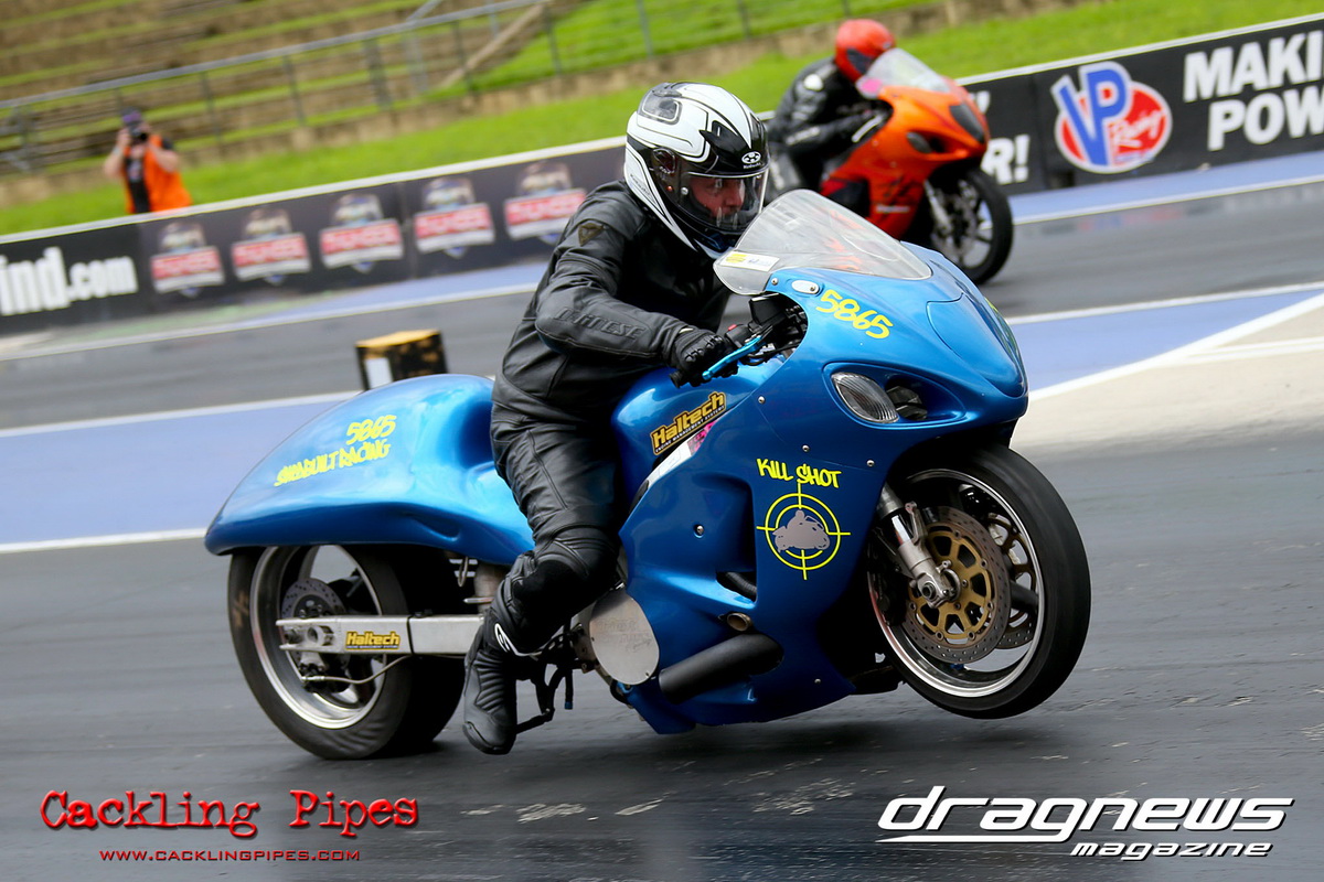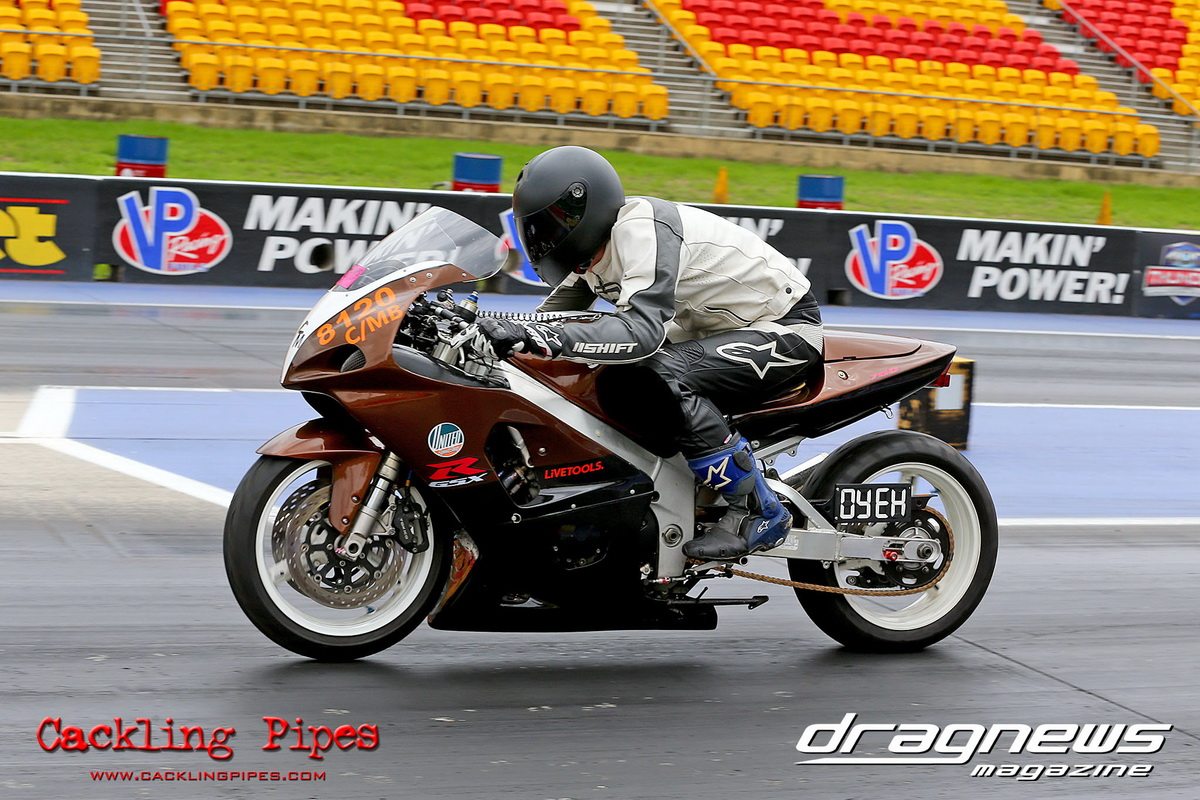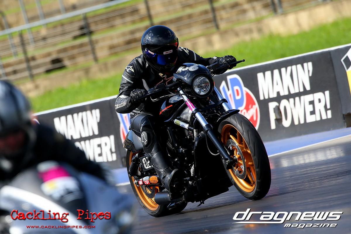 In Modified Bike, reigning champion Sean Ricketts had the perfect start to his title defence with a win over a broken Chris Hocking in final. After winning the semi in the same circumstance when his opponent broke out, Hocking merely staged his Aprilia out of hope. Ricketts also survived semi-final drama with a leaking Kawasaki, only to have fortunately drawn a solo run.