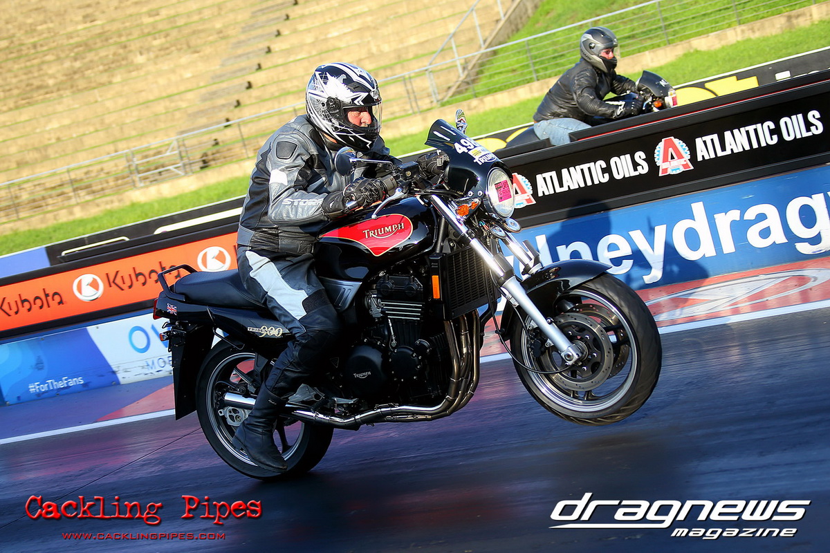 Closing out the racing brackets and Brian Vernon against Justin Clemson went at it handle bar to handle bar in the Street Bike final, with both racers pushing each other to a break out, Vernon’s Triumph by the least amount taking the win on a 11.976 off his 11.98 dial.
