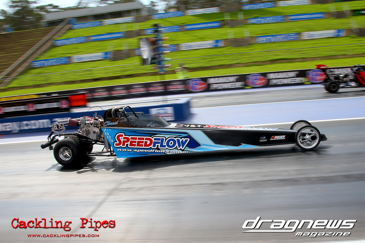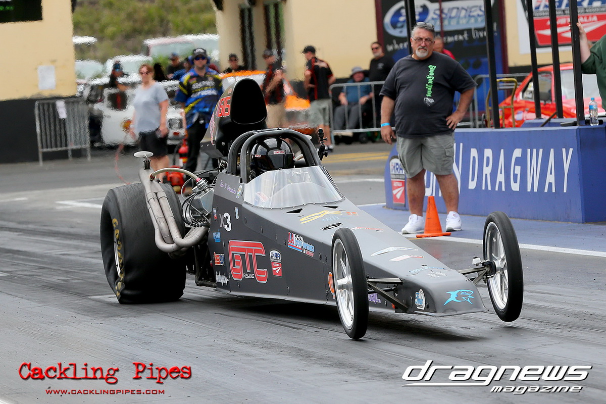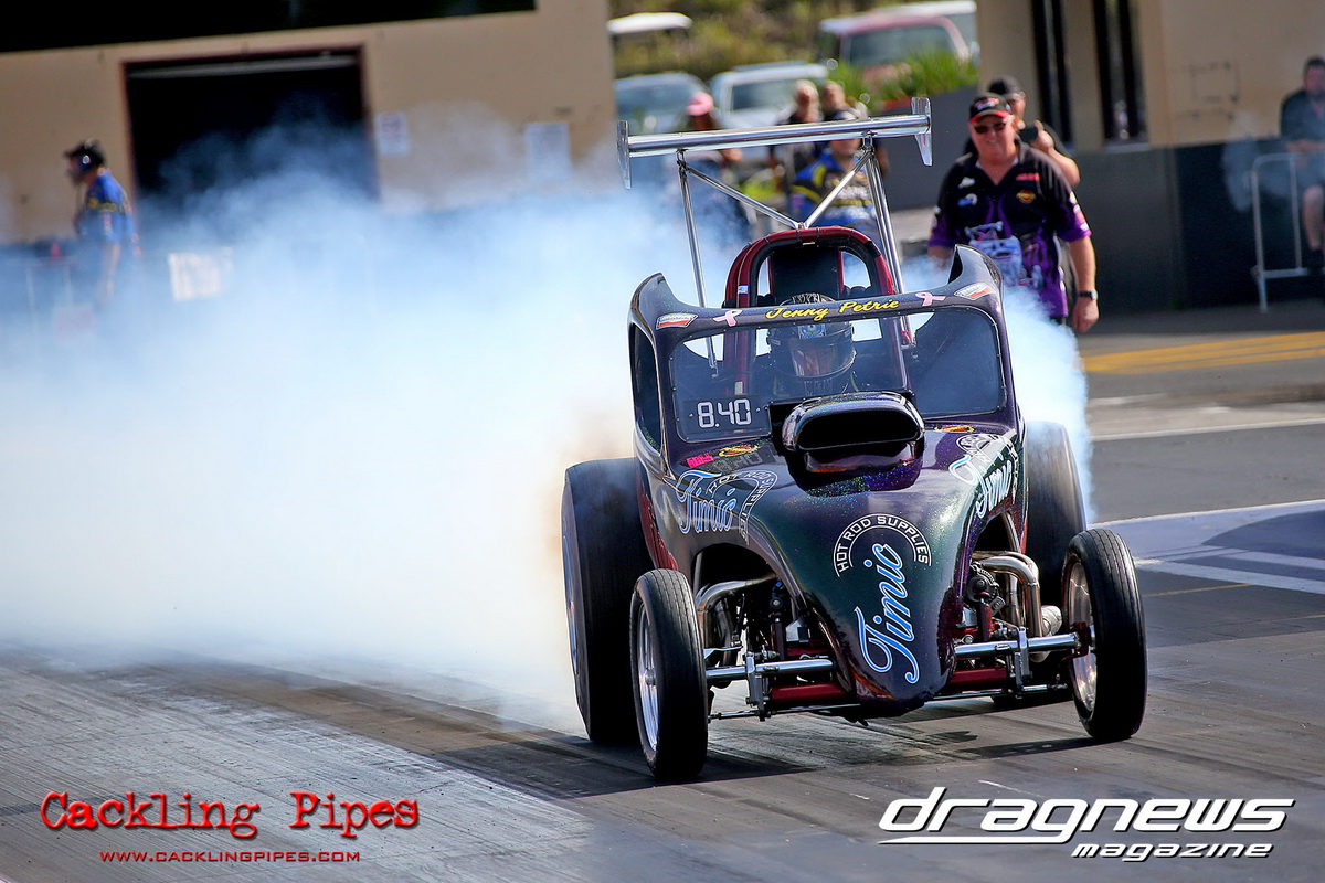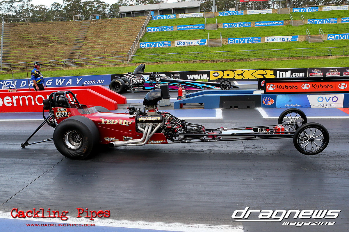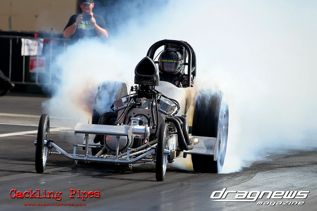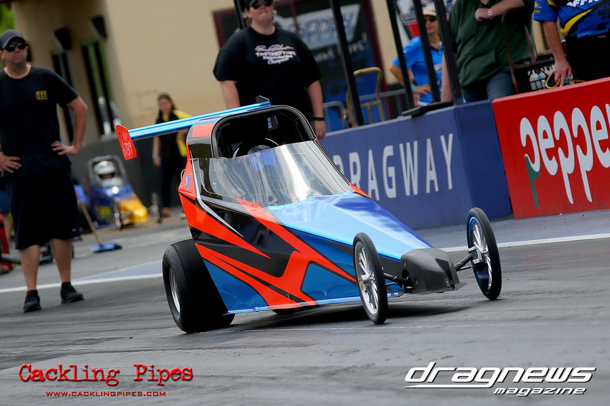 A strong field rocked up in Modified keen for early season glory, and at the end of the day it was CJ Davies taking the win in his FED on the back of tough reactions and tight dial ins. A .022 and 8.304 on an 8.30 sealed the final over the Fiona Crisp dragster’s 7.766 on a 7.76.
