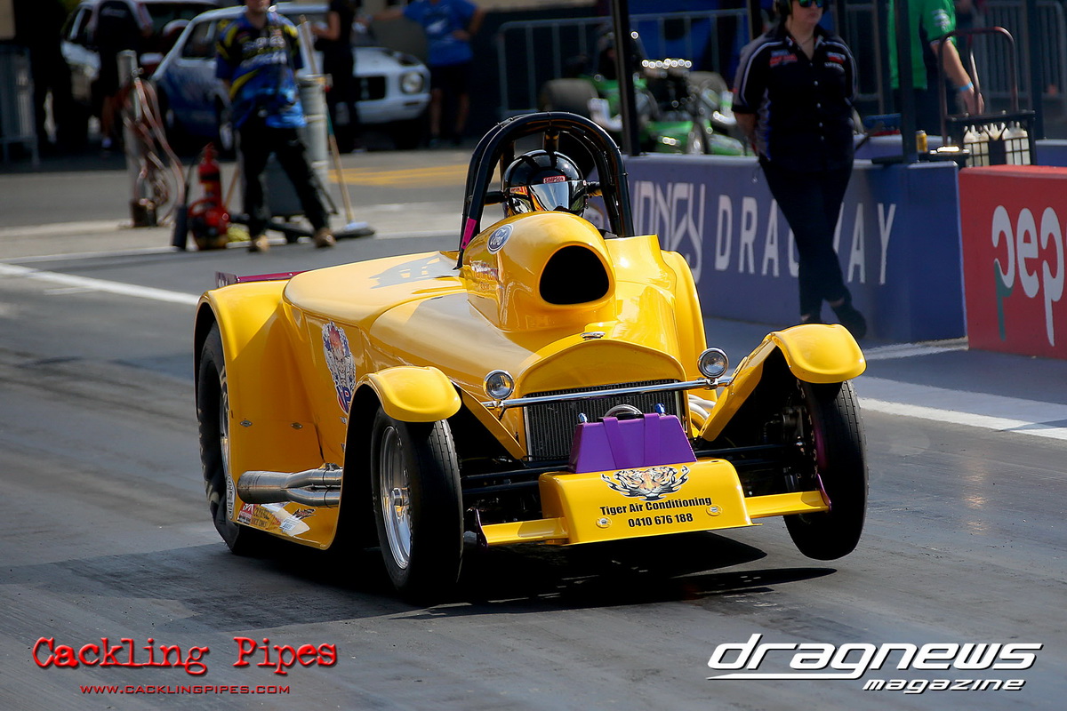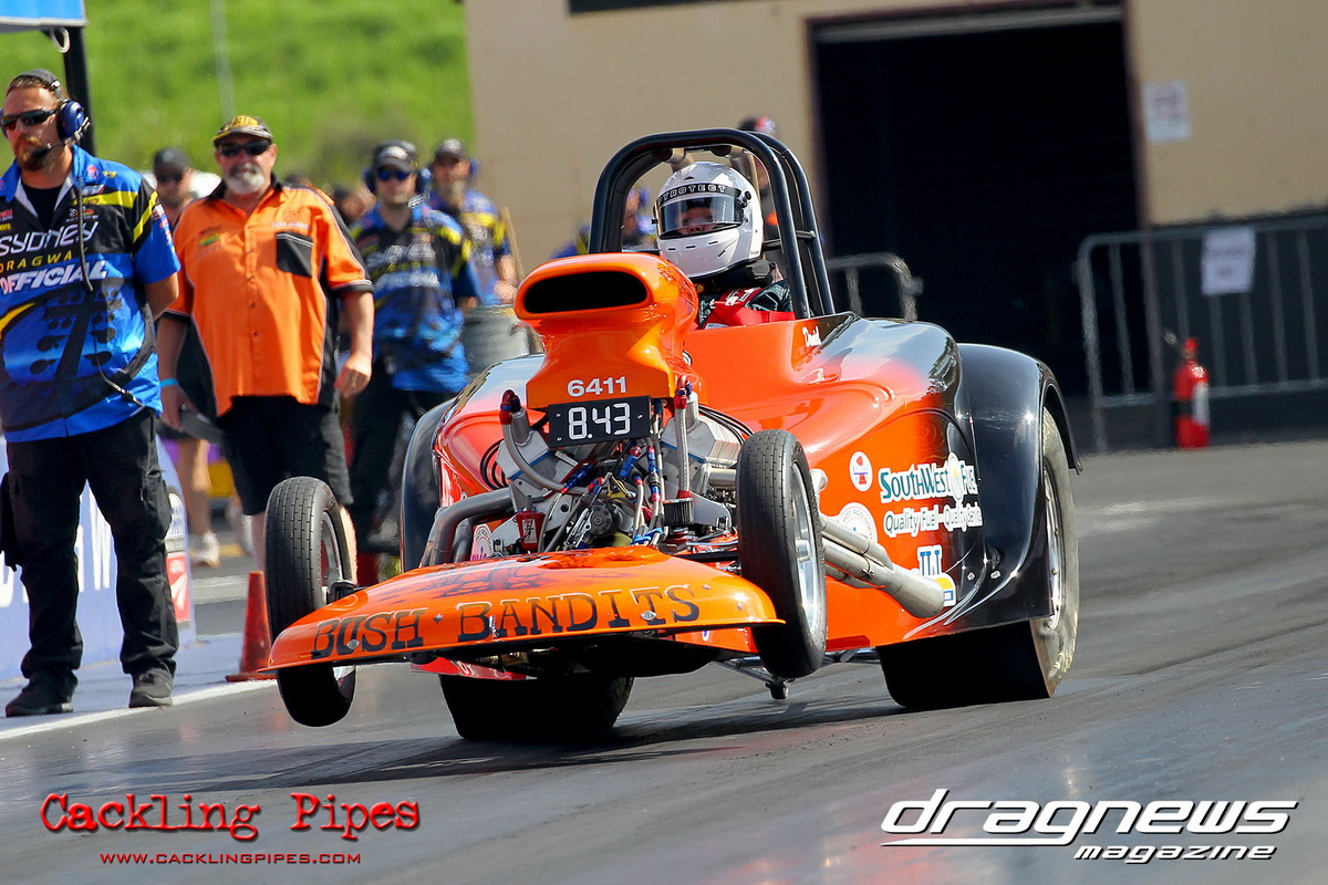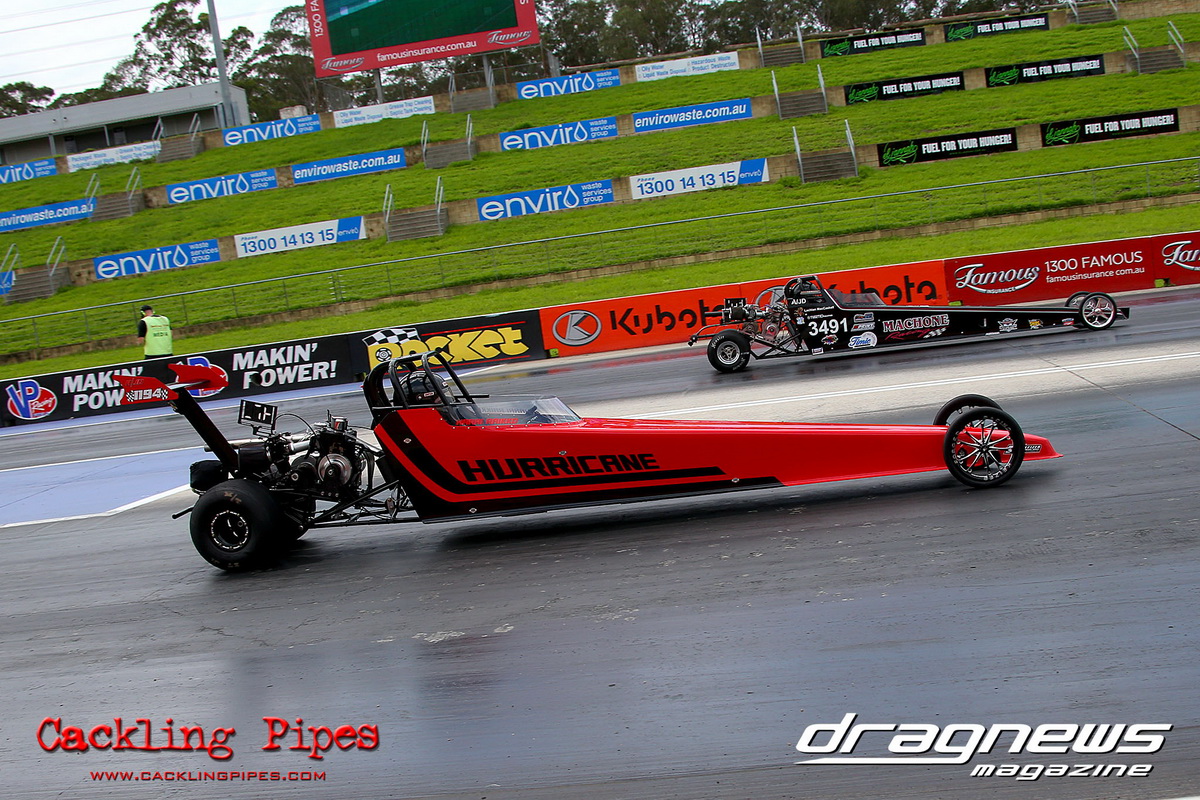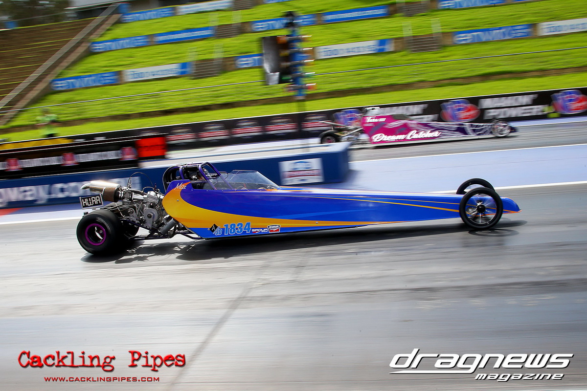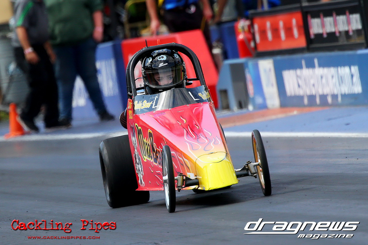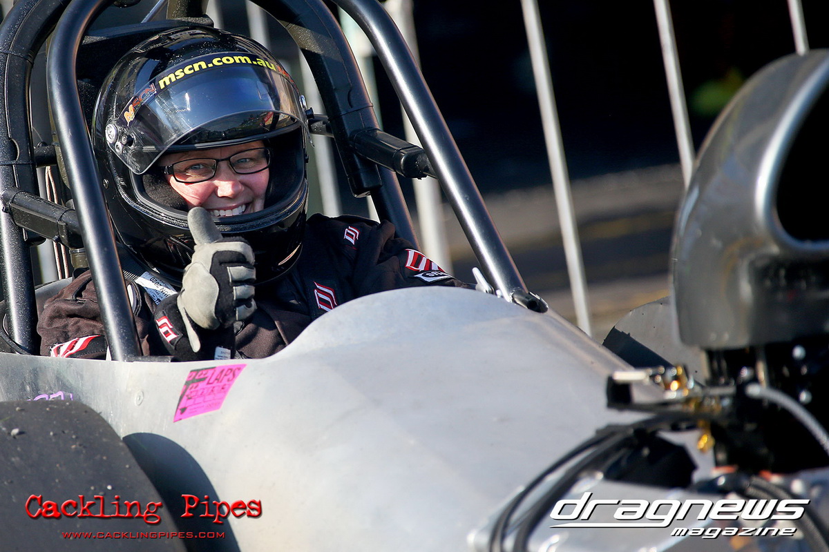 A strong field rocked up in Modified keen for early season glory, and at the end of the day it was CJ Davies taking the win in his FED on the back of tough reactions and tight dial ins. A .022 and 8.304 on an 8.30 sealed the final over the Fiona Crisp dragster’s 7.766 on a 7.76.