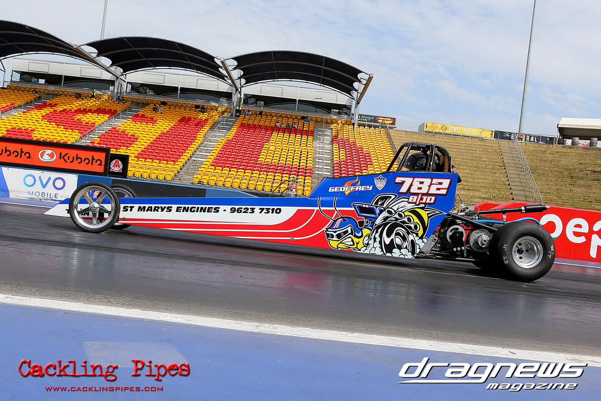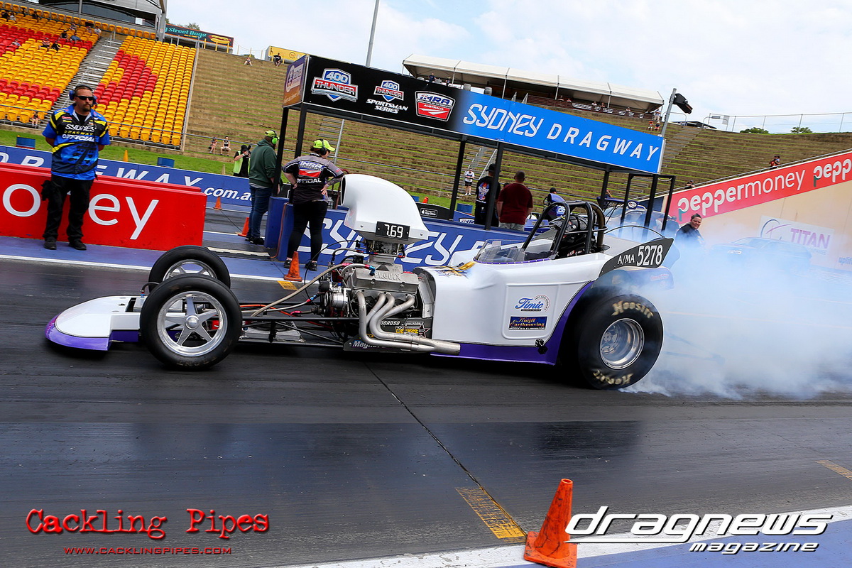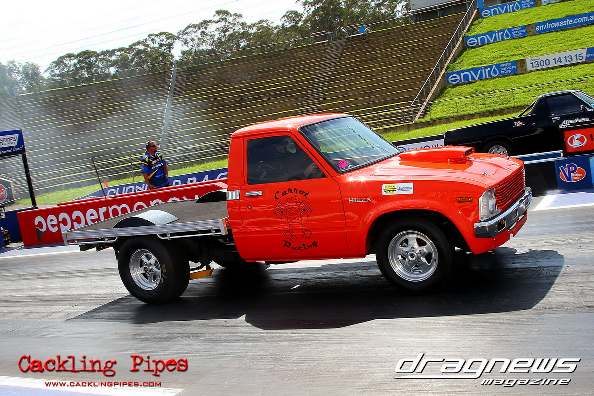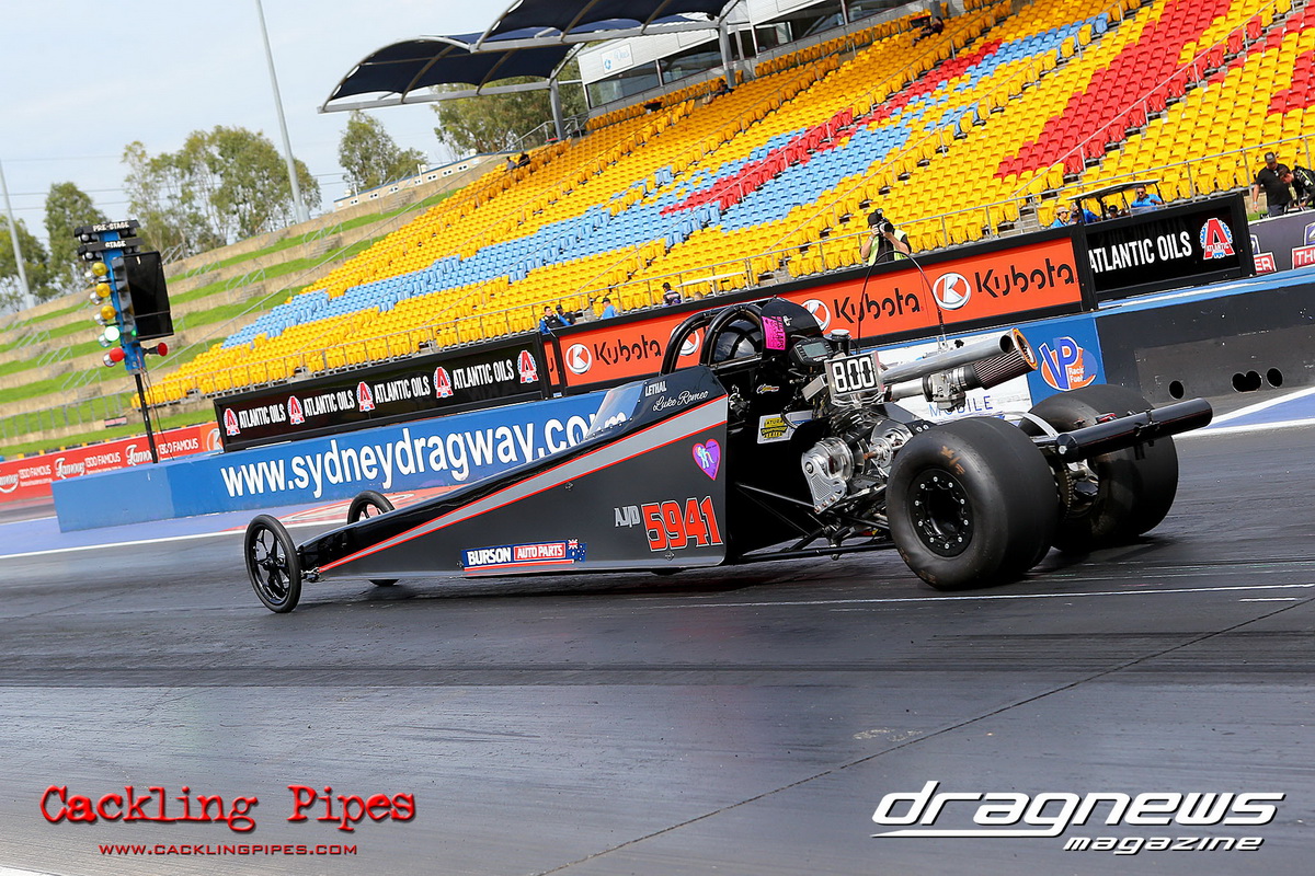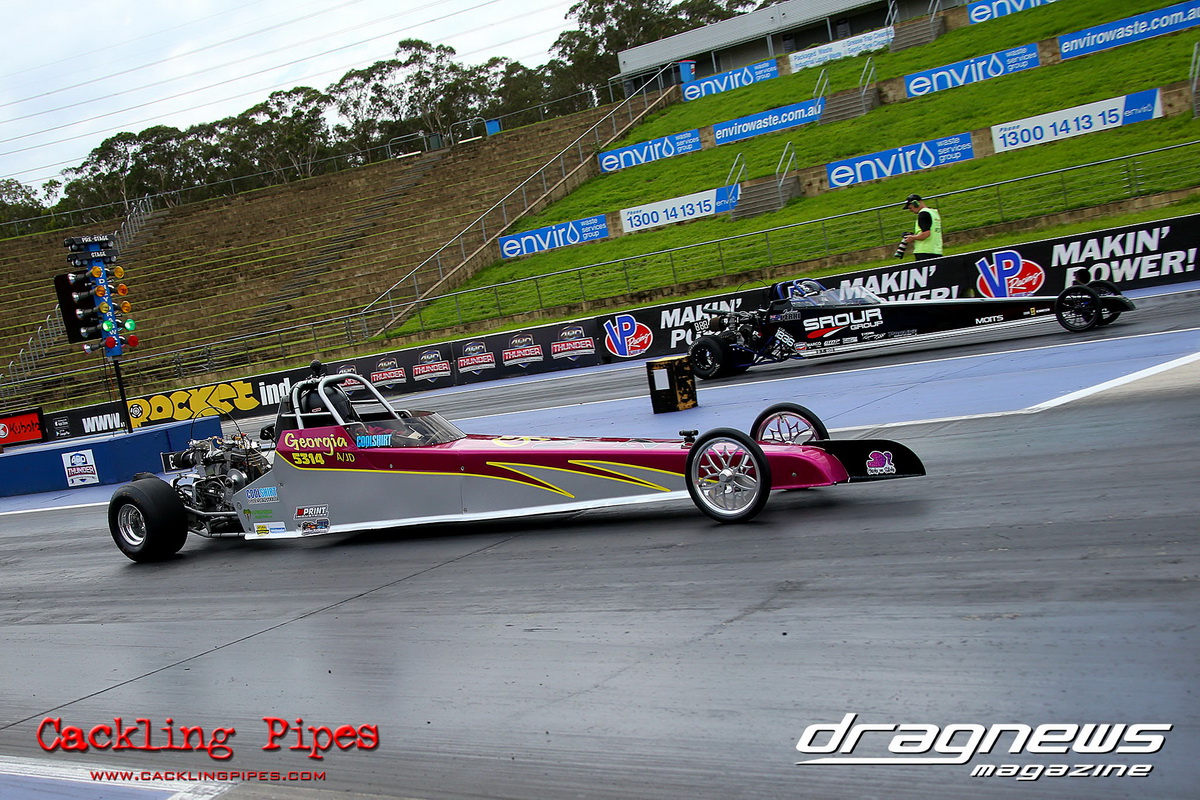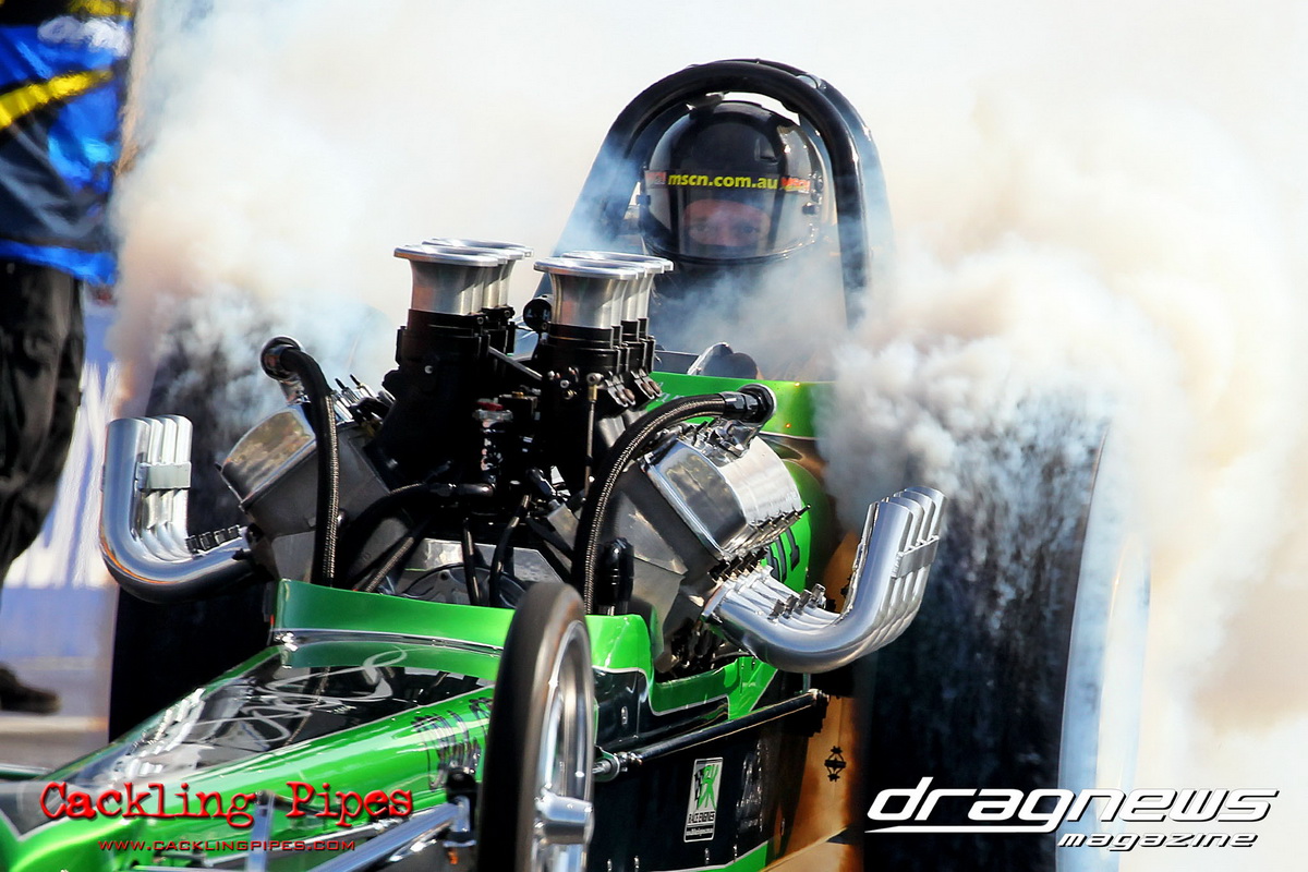 A strong field rocked up in Modified keen for early season glory, and at the end of the day it was CJ Davies taking the win in his FED on the back of tough reactions and tight dial ins. A .022 and 8.304 on an 8.30 sealed the final over the Fiona Crisp dragster’s 7.766 on a 7.76.