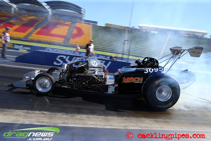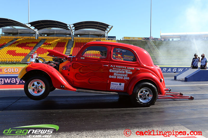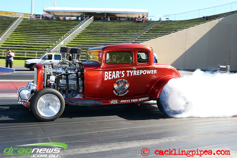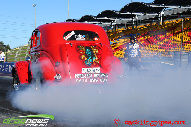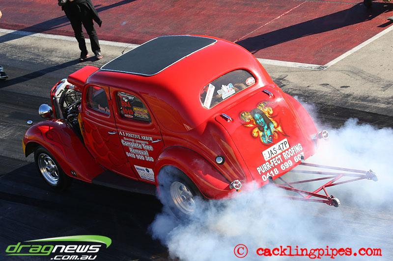 We haven’t seen Andy Hatcliff’s blown Ford Coupe at Sydney Dragway before – well not on the blacktop.