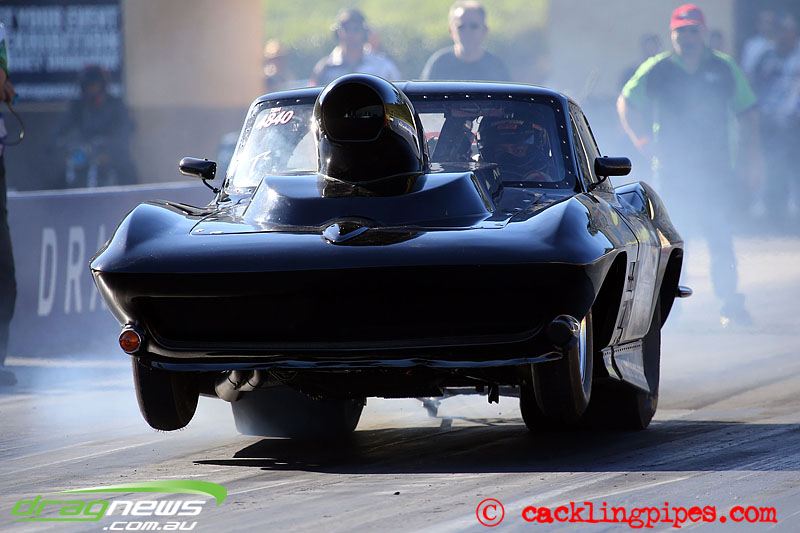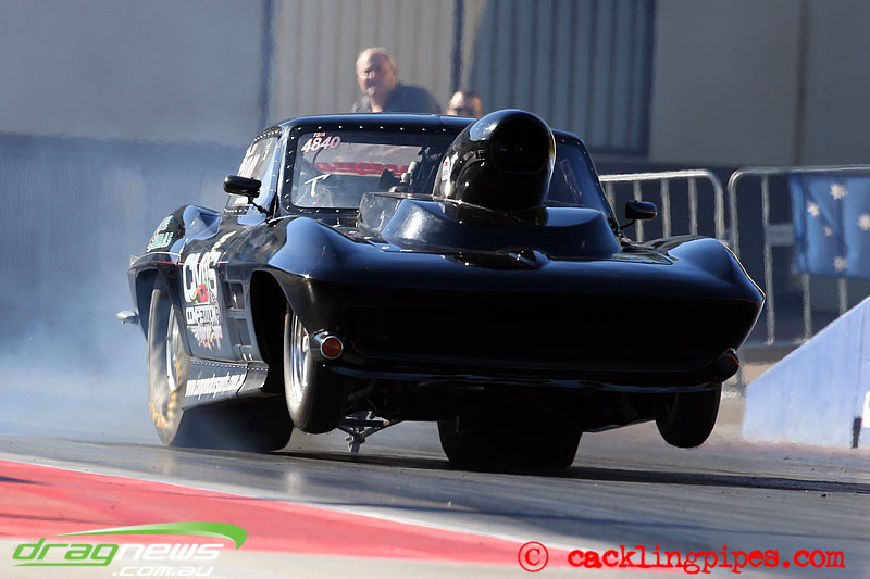 Likewise Mitch Sammut in his hard launching Top Sportsman Corvette.