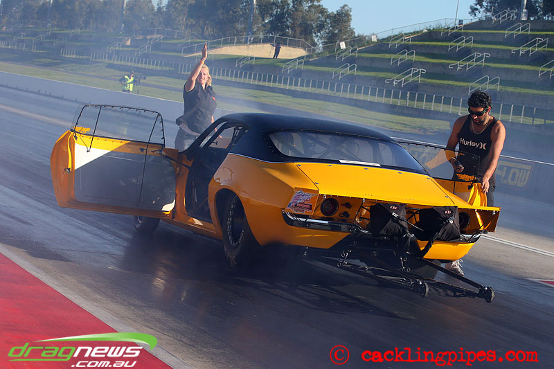 Paul Galea is the new owner of Matt Grubisa’s Outlaw 10.5 Camaro, Galea took to his new ride with ease clocking 7.19 at 197mph as he begins to feed in the power.