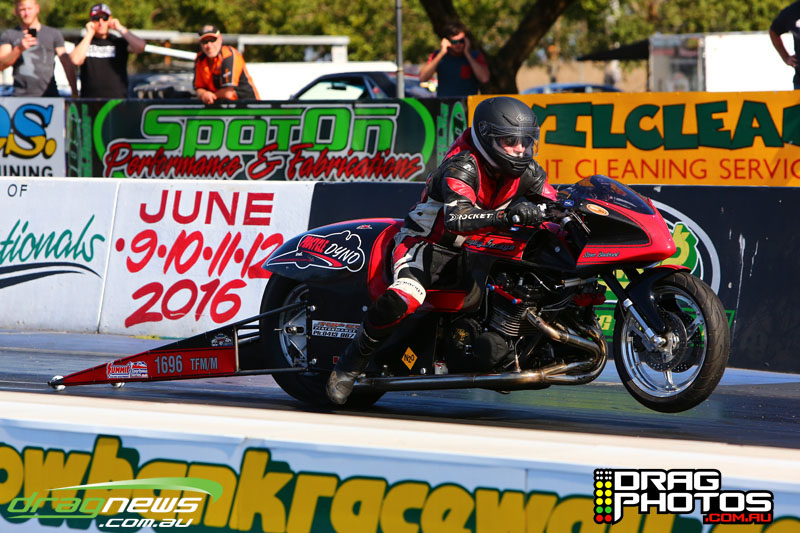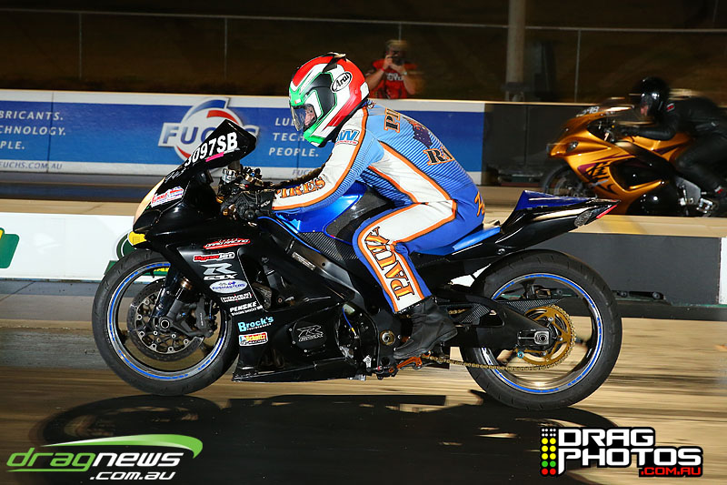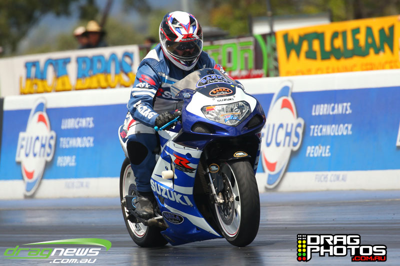 Steve Badcock showed off his nitrous Top Fuel Motorcycle with a few low seven second passes.