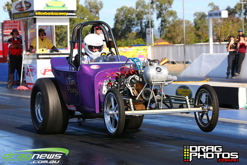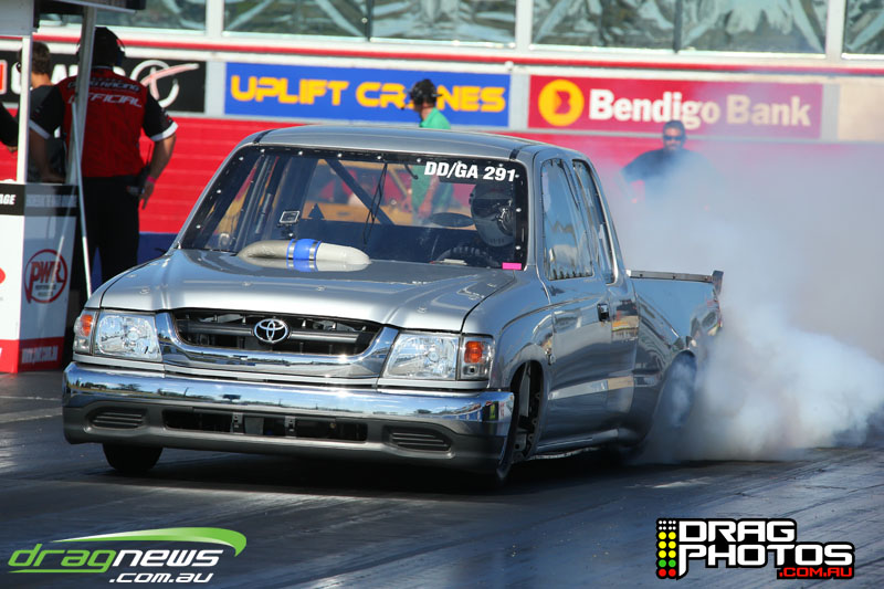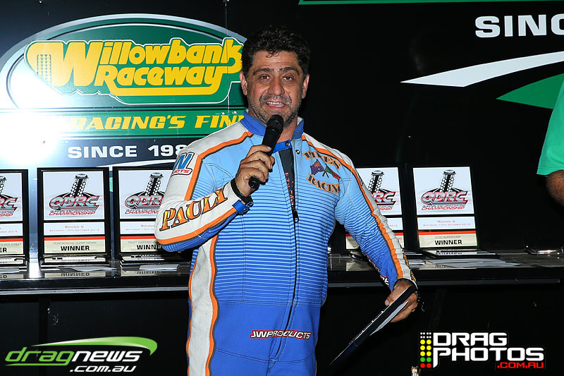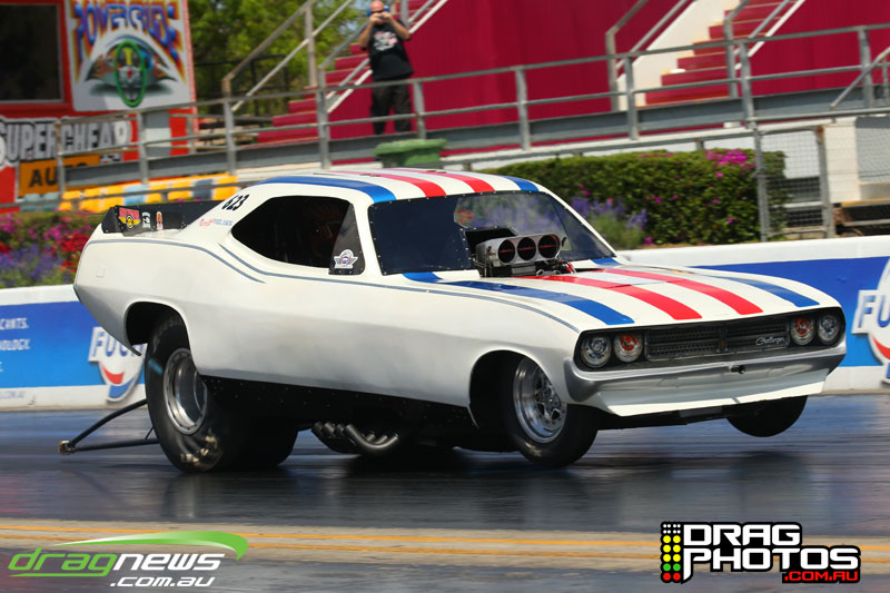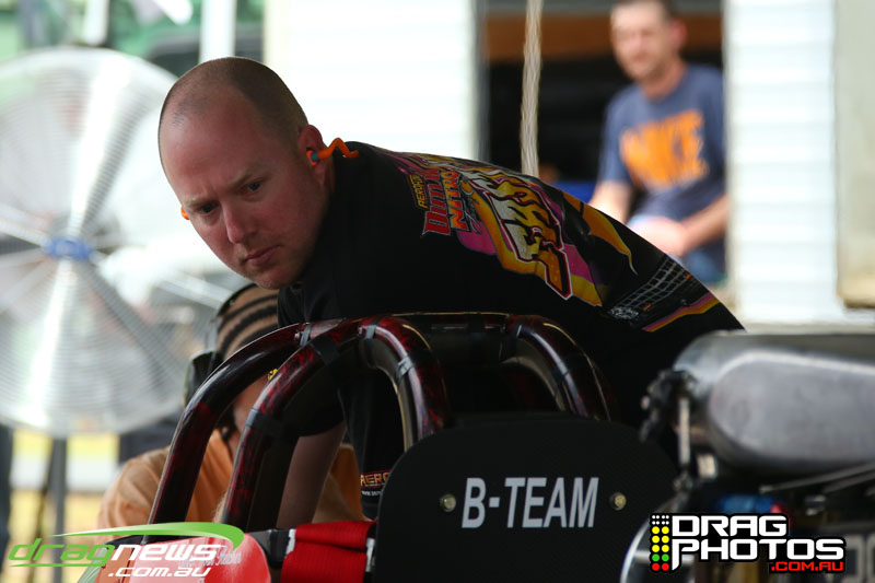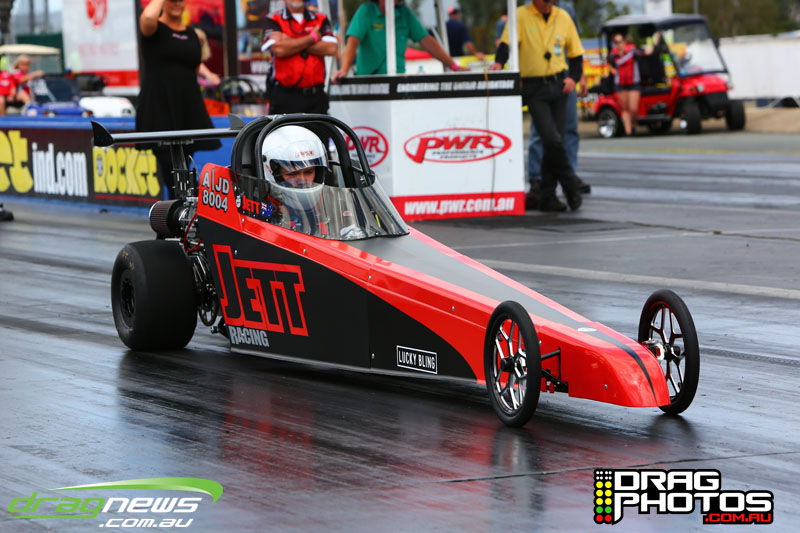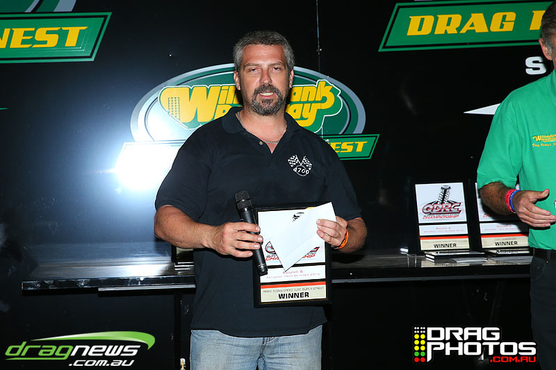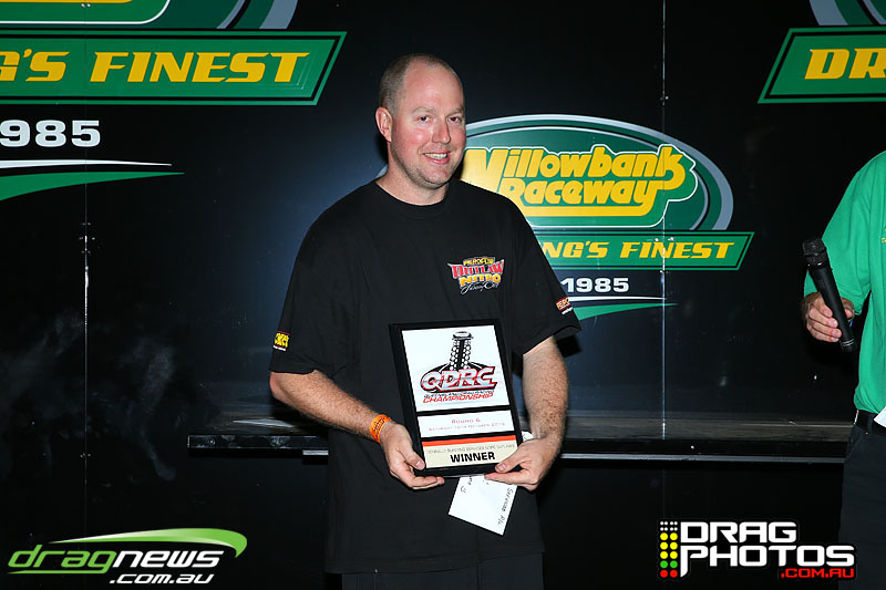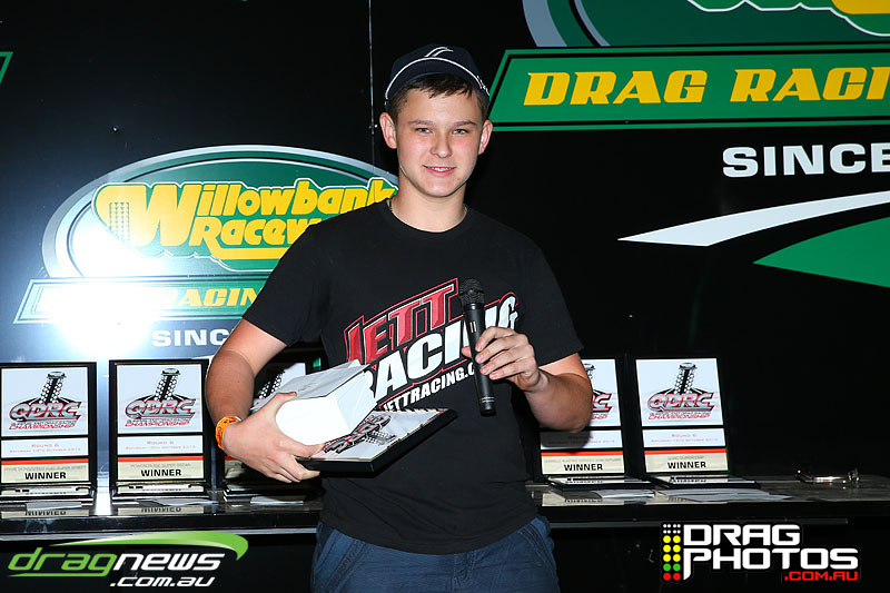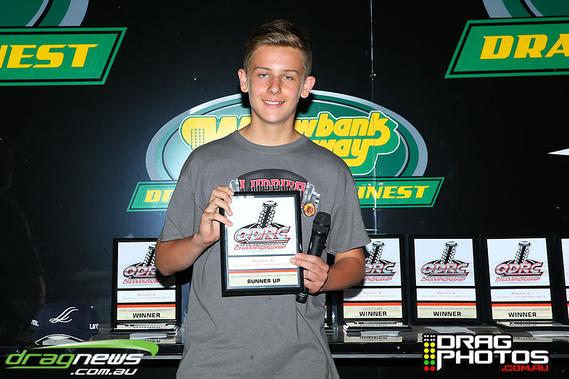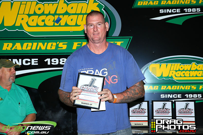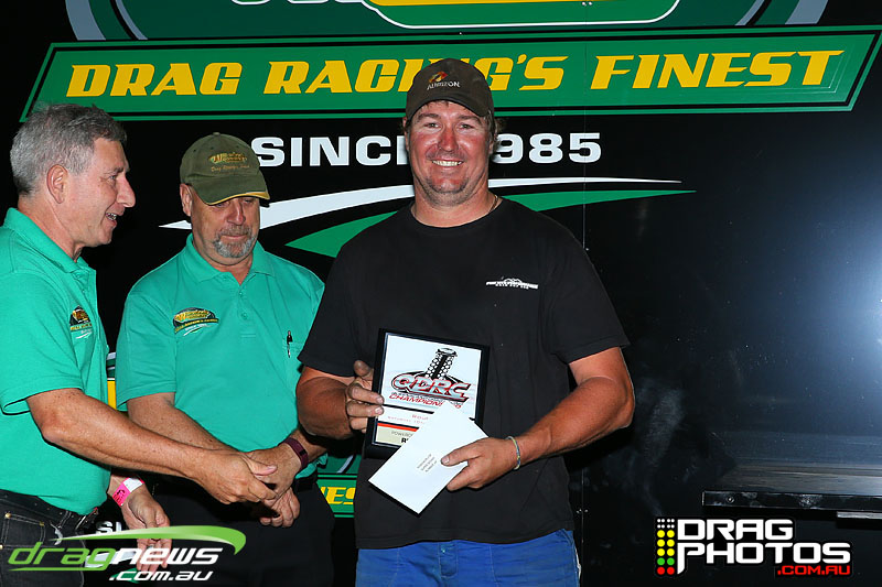 Young Jett Willshire claimed his first ever win in Junior Dragster defeating a red lighting Rhys Beauchamp – you can read more about Jett’s win by clicking on this story http://www.dragnews.com.au/index.php/news-all/local-news/3038-junior-jett-jumping-for-joy. Class heavy hitters Tim Barron and Caleb Oberg are still virtually locked together in the championship with one round to go.