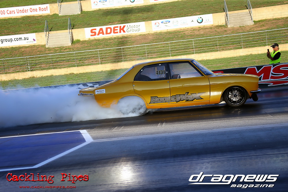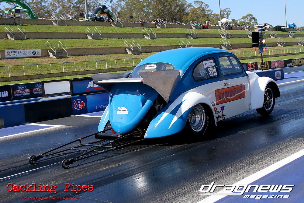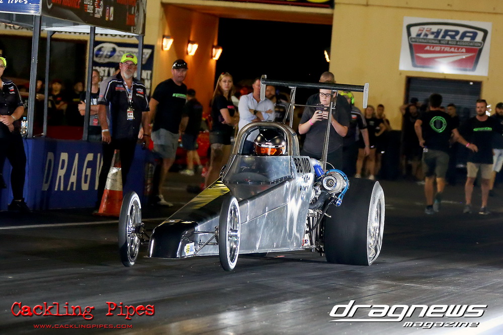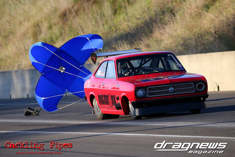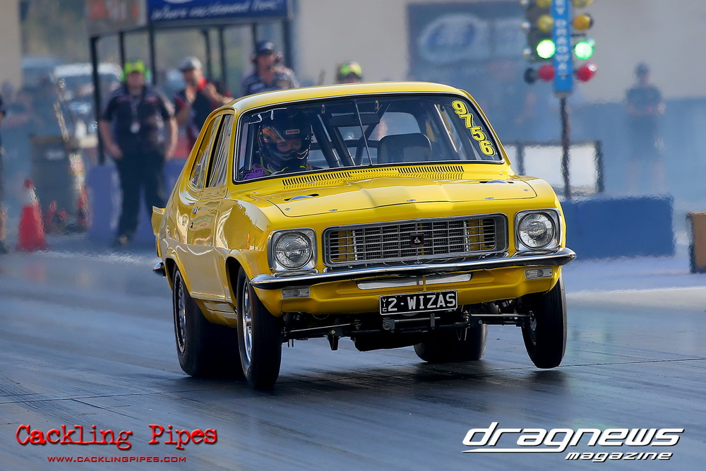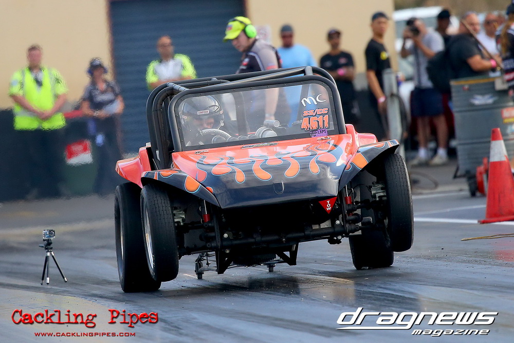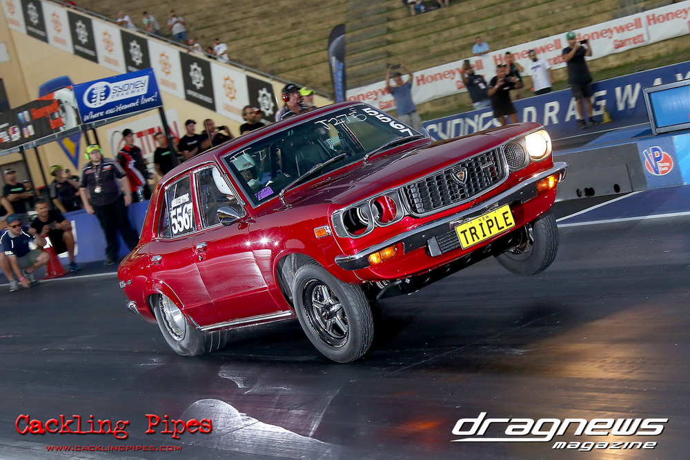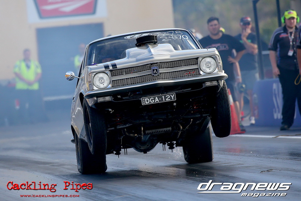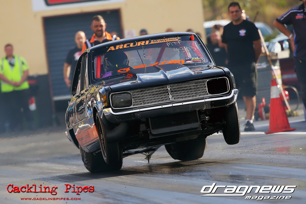 Freight Management Australia All Motor had a 13-car DYO field, with the wild 13BPP powered Datsun 1200 of Mark Costanzo reeling off a 9.70 to grab top spot from Matt Rice in the similarly-powered “Chainsaw” R100 with a 9.86. It was then daylight to third spot with Jason Frost’s 2276cc ’61 Beetle running 11.29, Jason Stoodley’s Barra-powered Cortina in 4th with 11.66 and Henry Spicak’s 2332cc ’56 Beetle running 12.20 for 5th. Costanzo soloed in round one with a 9.75 on a 9.70 dial, whilst Stoodley overcame Matt Berry’s 2007cc ’59 Beetle with a closer 11.77 on his 11.72 dial. Costanzo then faced Spicak in round two,where he waited 2.25 seconds before chasing him down with a tight 9.71 on a 9.70. Stoodley out-reacted former finalist Tim James in his Falcon panel van and used an 11.75 on his 11.65 dial to defeat James’ closer 12.31 on his 12.28 dial. Costanzo then had a longer 3.15 second wait against Brendon Burnett’s 2332cc ’62 beetle, but a red light ended the chase early, with Costanzo’s impressive 9.658 on his 9.65 dial-in leaving no doubt. Stoodley then dispatched the lone Honda of Jessica Simmons with an 11.78 on his 11.63 taking out the 2200cc Civic’s closer 12.28 on a 12.20 dial by virtue of his .072 to .336 light. With his smallest chase of the day in the final, Costanzo had nearly a two second wait against Stoodley’s 11.63 dial-in. And with the Cortina ripping off a great .017 light, he knew a red light would not be ideal. His safe, but slower .261 light made his job hard, and Stoodley made it harder by keeping close to his dial in with an 11.67. Costanzo’s chase was exciting as the screaming rotor banged though the clutchelsss 5-speed, coming up short by a wafer thin margin, running a close 9.68 on his 9.65 dial.