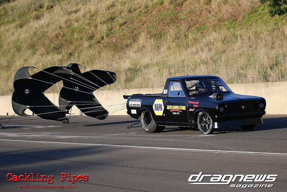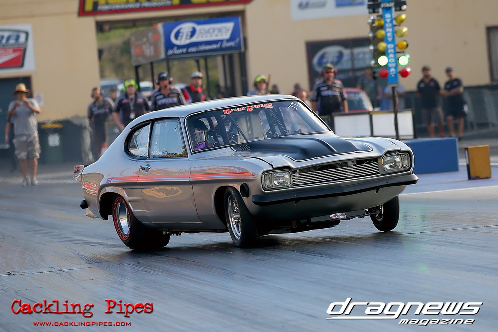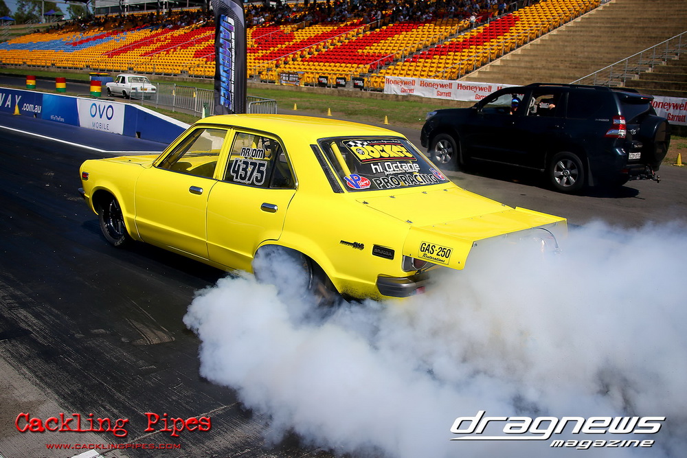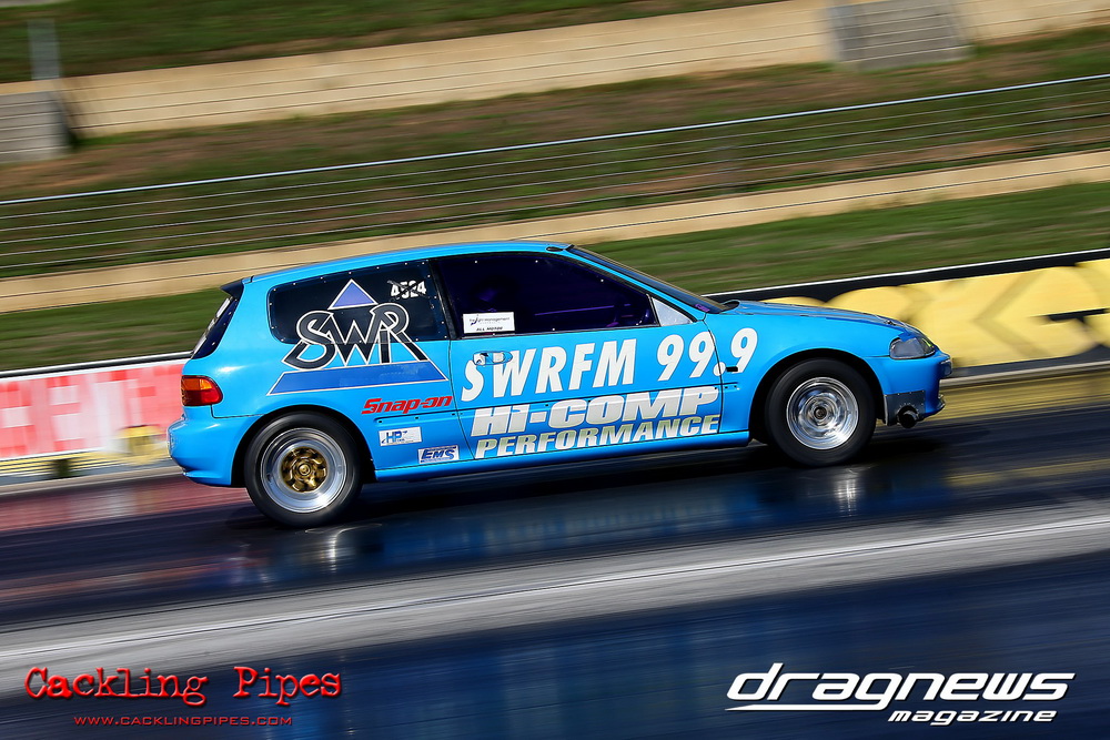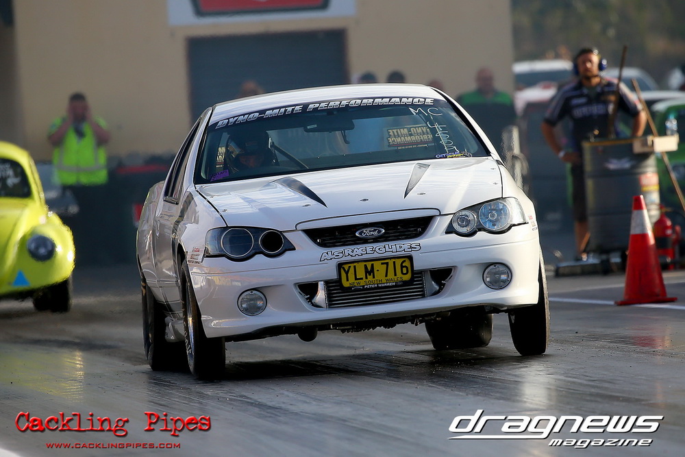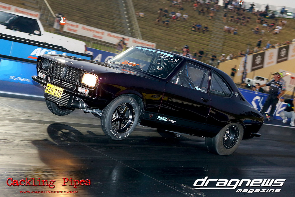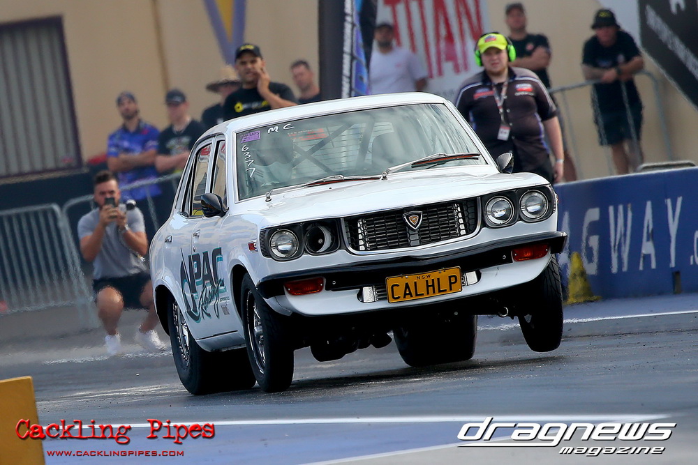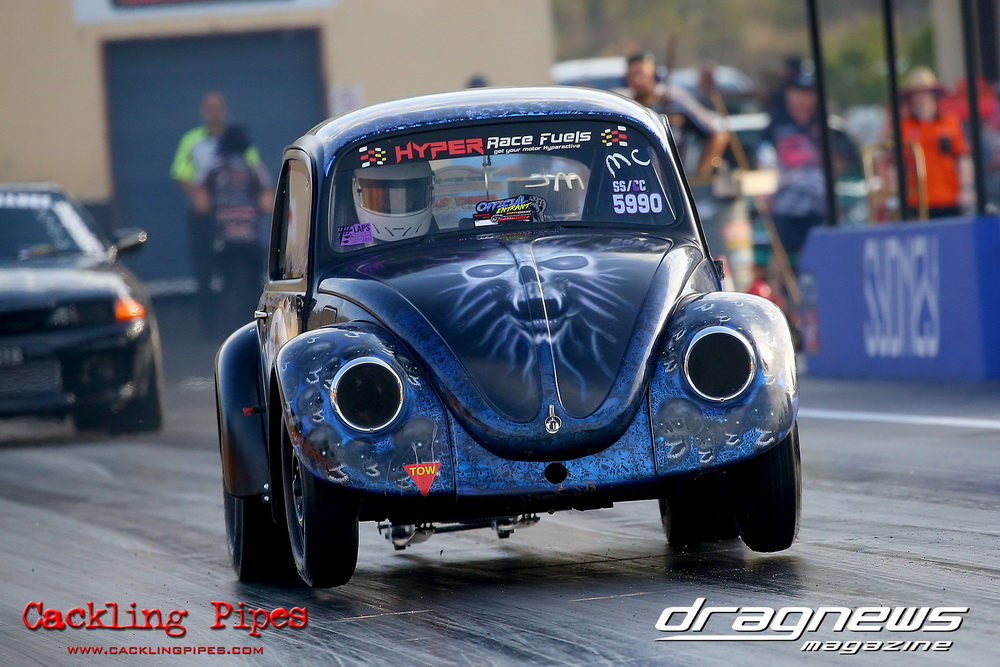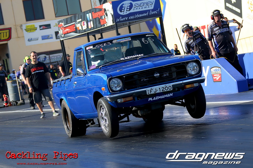 Freight Management Australia All Motor had a 13-car DYO field, with the wild 13BPP powered Datsun 1200 of Mark Costanzo reeling off a 9.70 to grab top spot from Matt Rice in the similarly-powered “Chainsaw” R100 with a 9.86. It was then daylight to third spot with Jason Frost’s 2276cc ’61 Beetle running 11.29, Jason Stoodley’s Barra-powered Cortina in 4th with 11.66 and Henry Spicak’s 2332cc ’56 Beetle running 12.20 for 5th. Costanzo soloed in round one with a 9.75 on a 9.70 dial, whilst Stoodley overcame Matt Berry’s 2007cc ’59 Beetle with a closer 11.77 on his 11.72 dial. Costanzo then faced Spicak in round two,where he waited 2.25 seconds before chasing him down with a tight 9.71 on a 9.70. Stoodley out-reacted former finalist Tim James in his Falcon panel van and used an 11.75 on his 11.65 dial to defeat James’ closer 12.31 on his 12.28 dial. Costanzo then had a longer 3.15 second wait against Brendon Burnett’s 2332cc ’62 beetle, but a red light ended the chase early, with Costanzo’s impressive 9.658 on his 9.65 dial-in leaving no doubt. Stoodley then dispatched the lone Honda of Jessica Simmons with an 11.78 on his 11.63 taking out the 2200cc Civic’s closer 12.28 on a 12.20 dial by virtue of his .072 to .336 light. With his smallest chase of the day in the final, Costanzo had nearly a two second wait against Stoodley’s 11.63 dial-in. And with the Cortina ripping off a great .017 light, he knew a red light would not be ideal. His safe, but slower .261 light made his job hard, and Stoodley made it harder by keeping close to his dial in with an 11.67. Costanzo’s chase was exciting as the screaming rotor banged though the clutchelsss 5-speed, coming up short by a wafer thin margin, running a close 9.68 on his 9.65 dial.