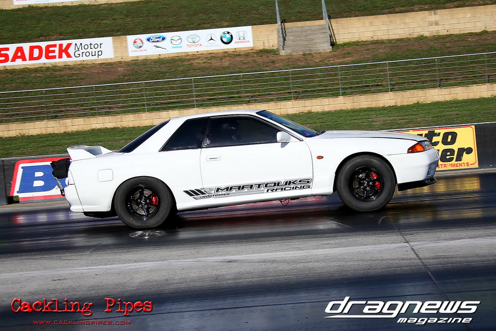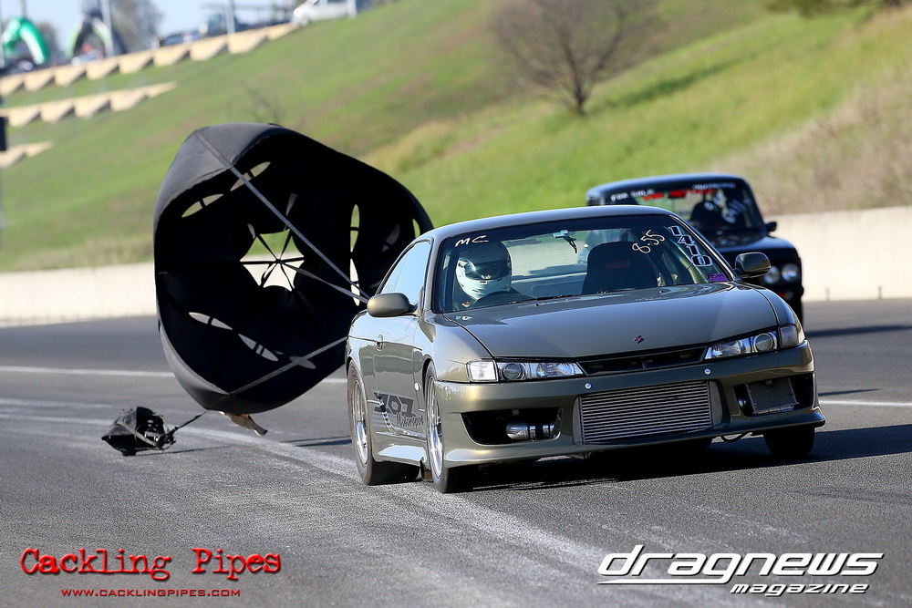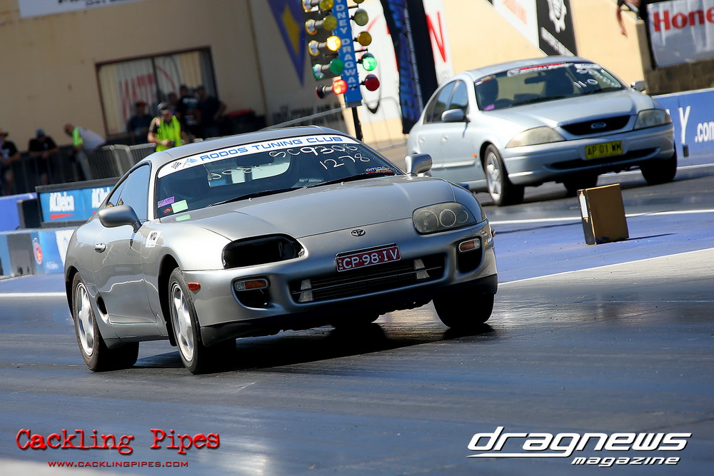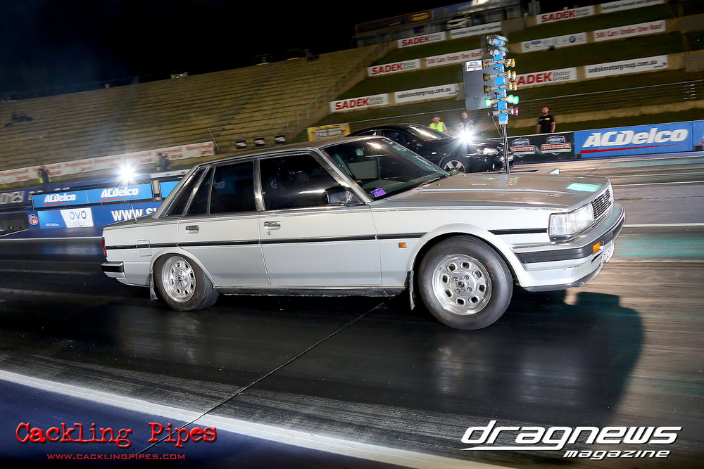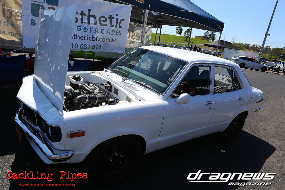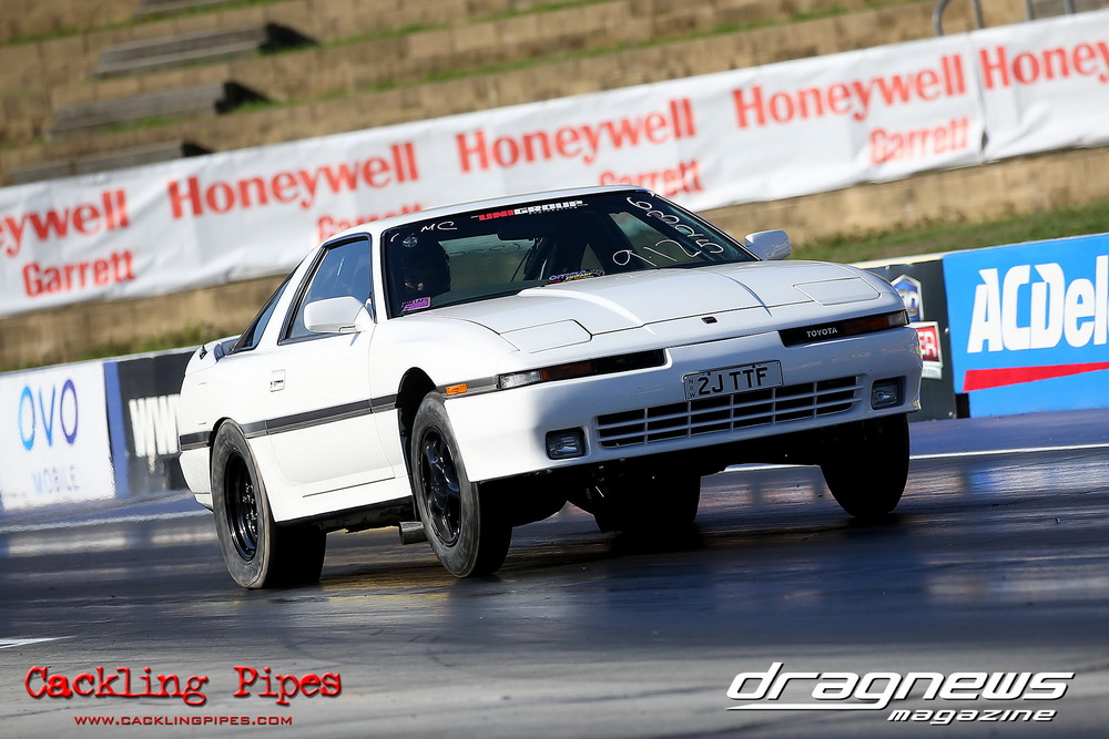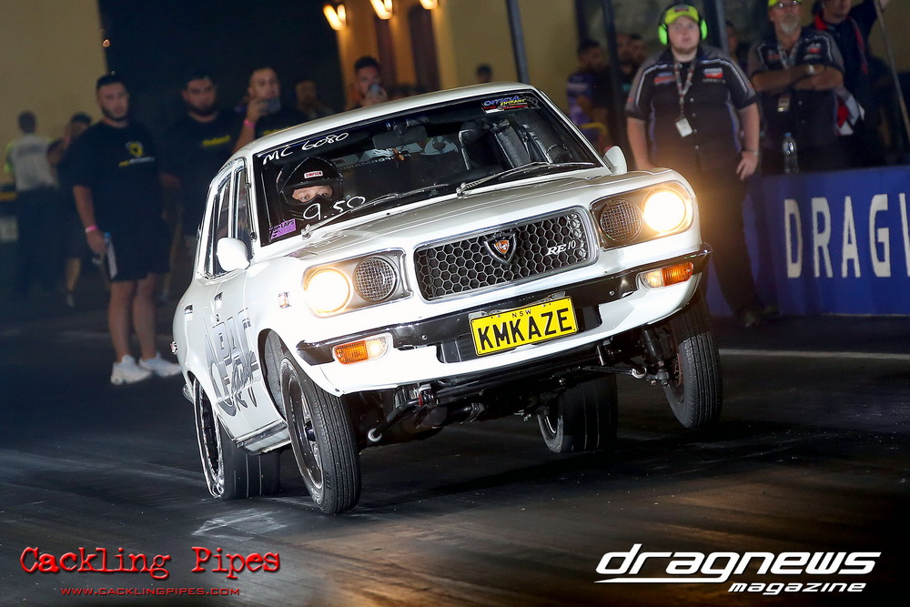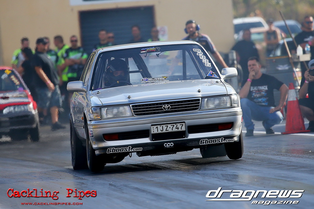 Out of a 12-car field, Adam Nuner’s 13B RX3 reeled off an amazing 7.81/176mph to top qualify, closely followed by a 7.86/175mph from Crichton’s 1.5JZ Cressida and Victor Baralos in third spot with an amazing 8.05/173mph in his RB30 powered VL Calais on a 235 radial! Scott Hoffman’s iconic 2JZ KE20 qualified in 8th spot with a troubled 8.90/154mph. The hot conditions saw a few fall by the wayside, but wins to Nuner and Hoffman in all 3 rounds – including a 7.67 from Nuner in the last round – saw a piston versus rotor final. Nuner nailed a .013 light against Hoffman, but had troubles near half track. Hoffman also had to pedal slightly, and then put the hammer down to catch Nuner right at the stripe and win with a 8.36/165mph to Nuner’s 8.68