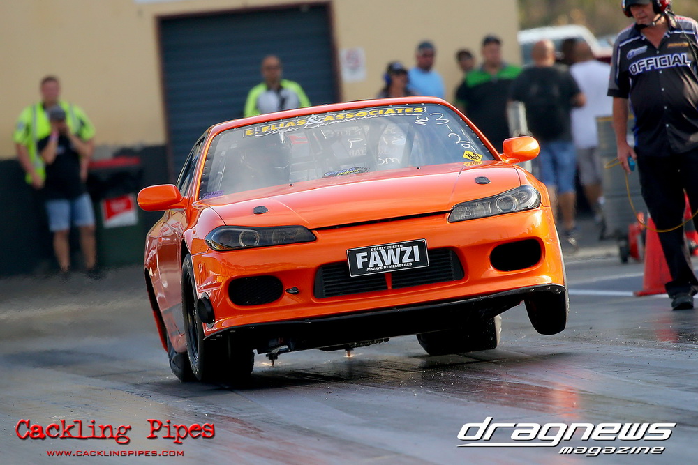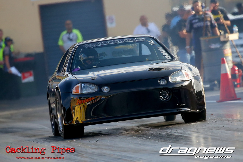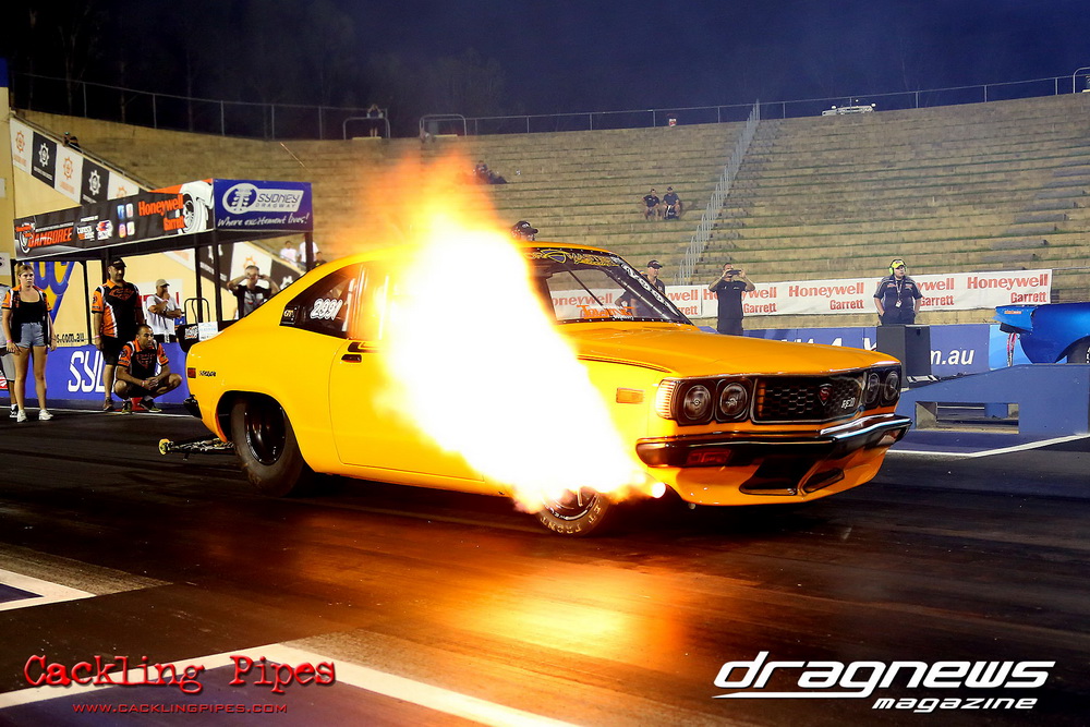 A large 28-car field was packed full of variety all sorts, and summed up by the top five qualifiers. Fred Karam nailed top spot with an 8.31/165mph with his Cosworth-powered S15, followed by Assaf Abouserhal’s 8.45/167mph (R33/RB30), Micheal Ryan’s 8.53/165mph (Barra EL Falcon), John McDades 8.58/161mph (2JZ S15) and Ronnie Ghamas 8.87/151mph (RX3 13B). But when the DYO dust settled, it was a couple of equally diverse 9-second cars that made the final, between Chris Tolomeo’s Barra powered Falcon Ute against Mark Gilbert’s neat 13B turbo 1977 Mazda B1600 tray back. Gilbert’s .048 light was quickly null when Tolomeo pulled the best light of the night at .008, catching the Mazda in the traps with a safe 9.35 on a 9.28 dial in to a 9.68 on a 9.60.