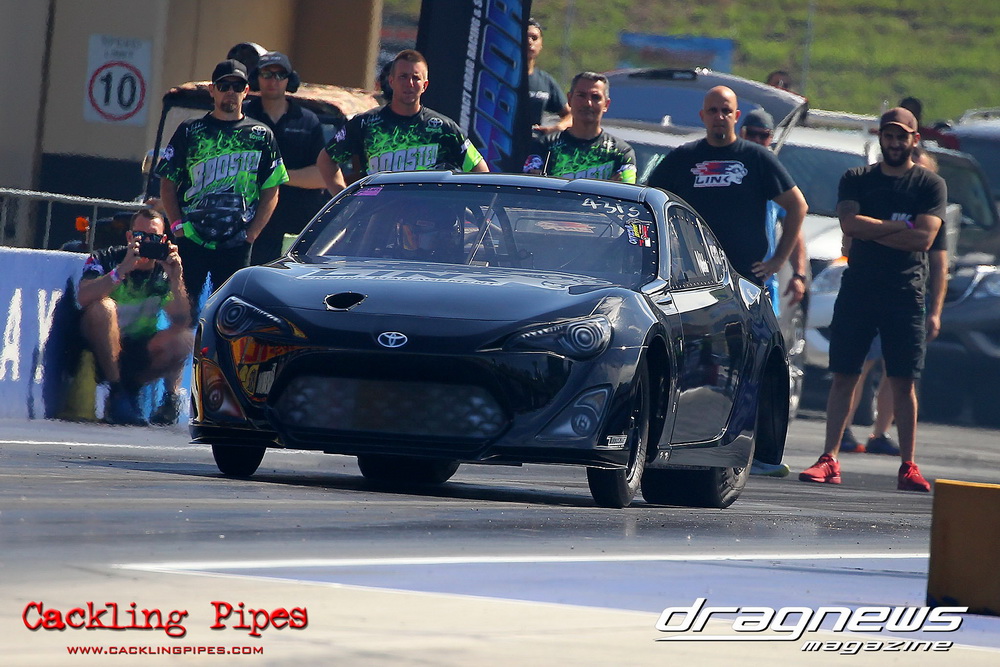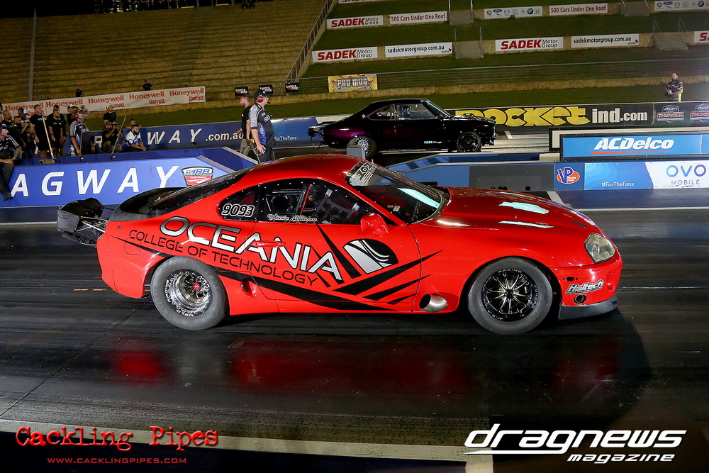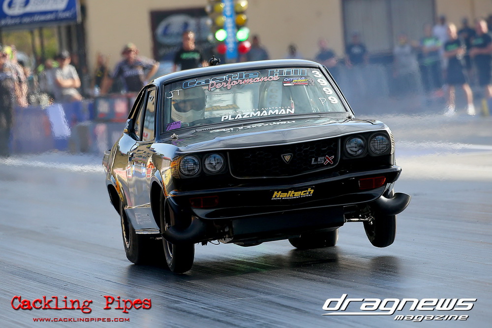 Race Car Engineering J275 saw a variety of cars attempting to put their obvious power to the ground on a heads up tree and 275 radial tyres. After Nathan Farraugia’s early top-qualifying 6.99 pass was discarded with heavy engine damage, Victorian Danny Busbridge’s “2 Wizzas” Torana took top spot with a 7.36/186mph. International DJ Carl Cox made his J275 debut with this single turbo small block Capri and recorded a great 7.68/188mph for second. But in a day of carnage, only the strong survived, and in an all-2JZ final, Varun Sharma in the Oceania College Supra took on Moustafa Sakina in his similar-engined RX2. Moustafa had to pedal the wild Mazda in the final round, allowing Sharma through for the win with a 7.55/188.
