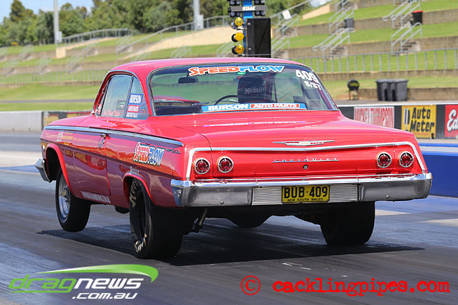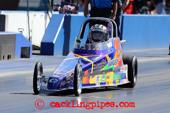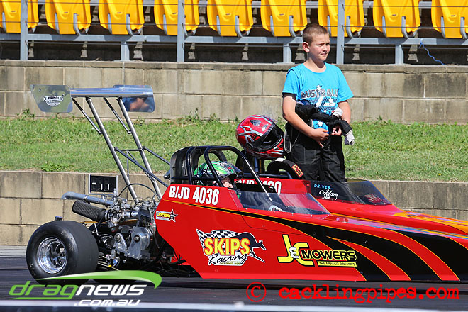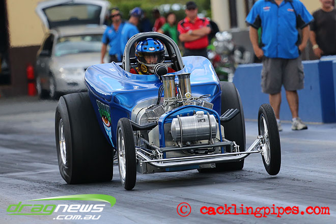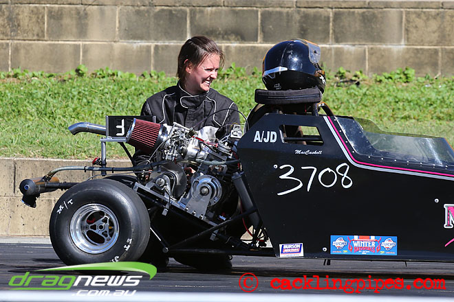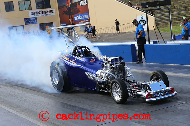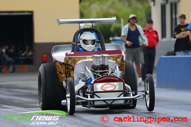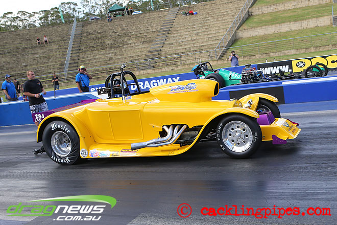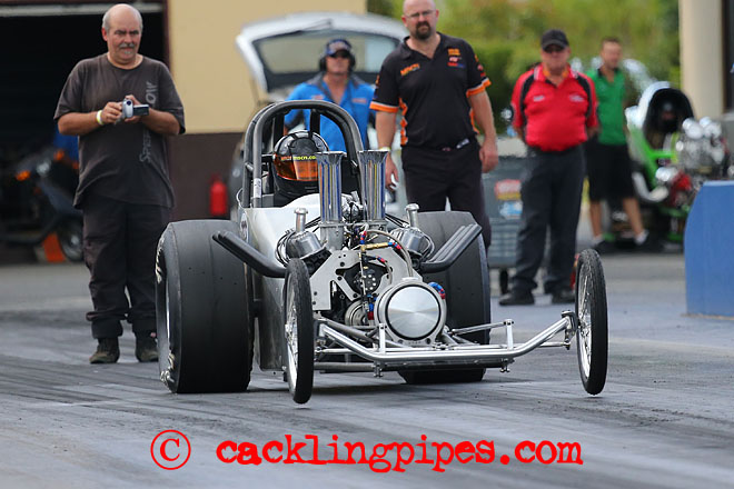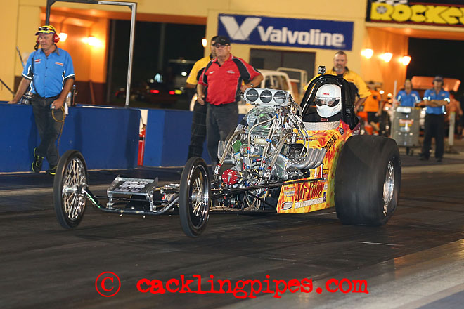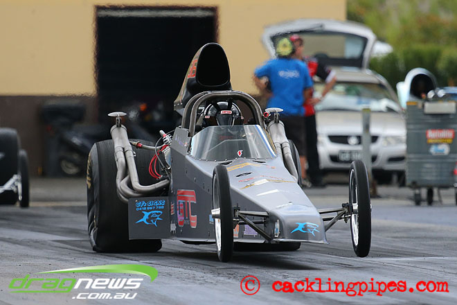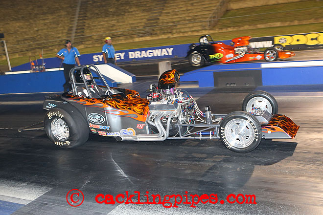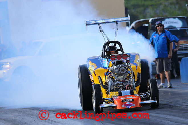 In the A final it was McCormack’s FED taking on the altered of rookie Fairbairn, both cars struggled to get down the track, McCormack making the best of it with a 7.79 (7.29) to Fairbairn’s 8.11 (7.59).