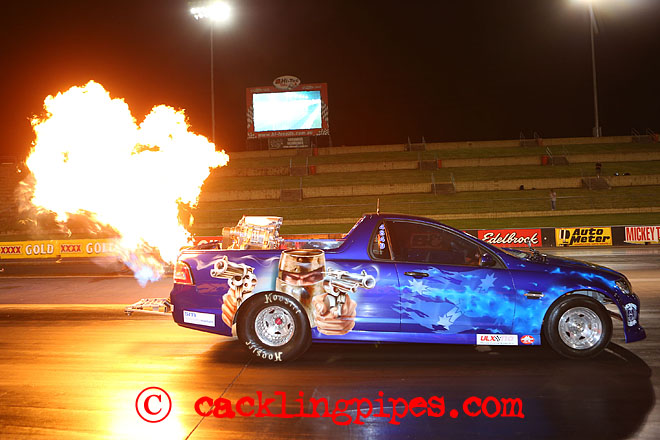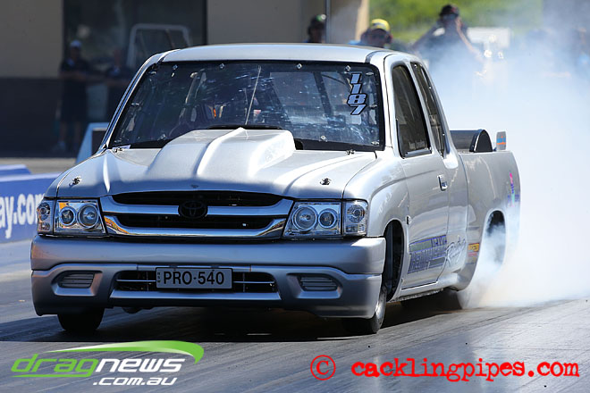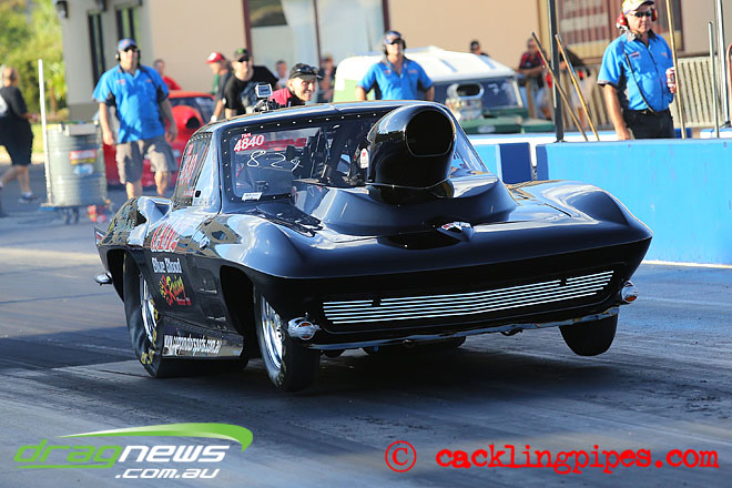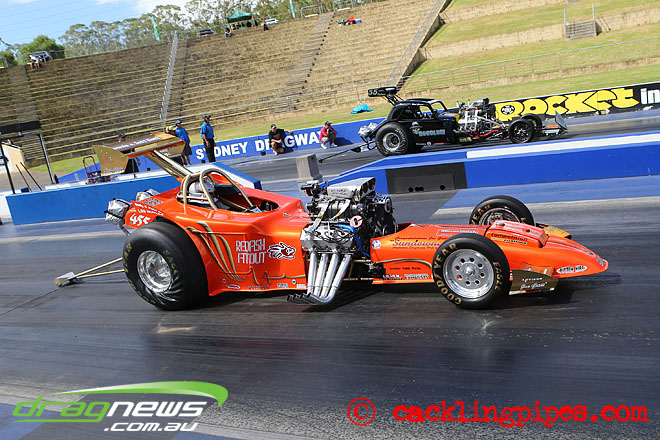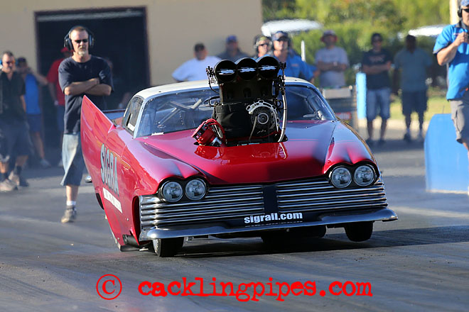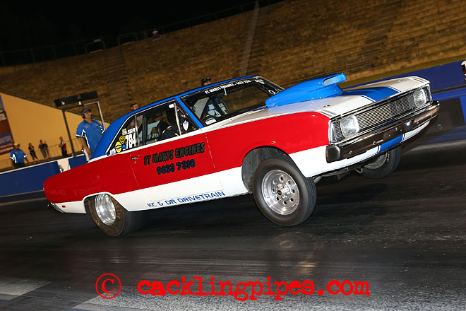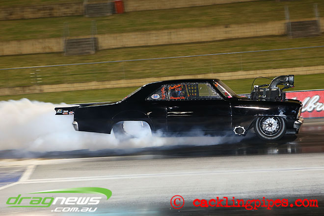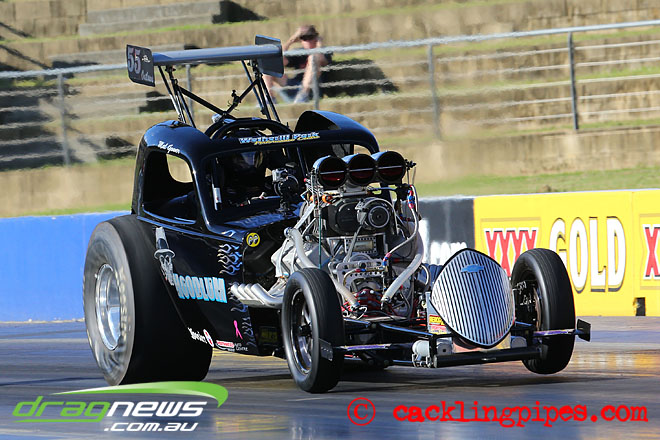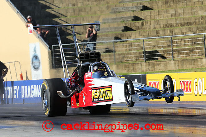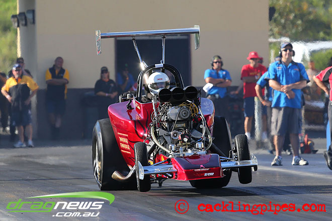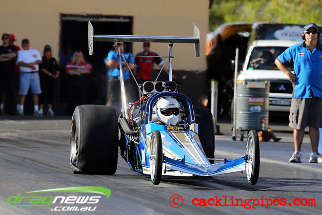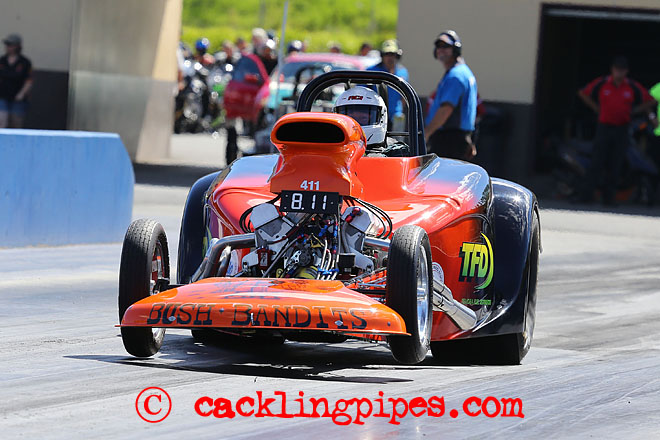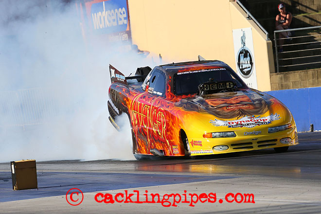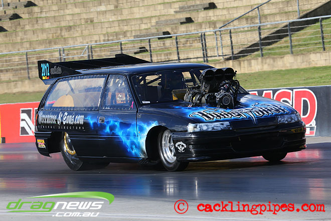 Supercharged Outlaws has been broken up into open (Top Outlaws) and closed car (Wild Bunch) brackets for the NSW Championship, Top Outlaws had eight entries with Andrew Hodgson top qualifying with a 6.65 in the Avenger funny car.
