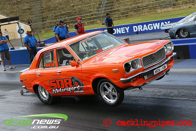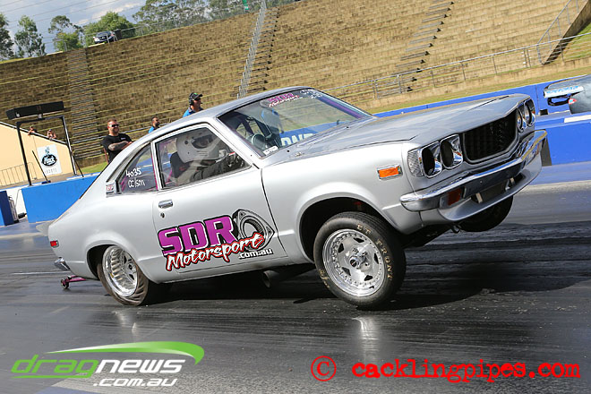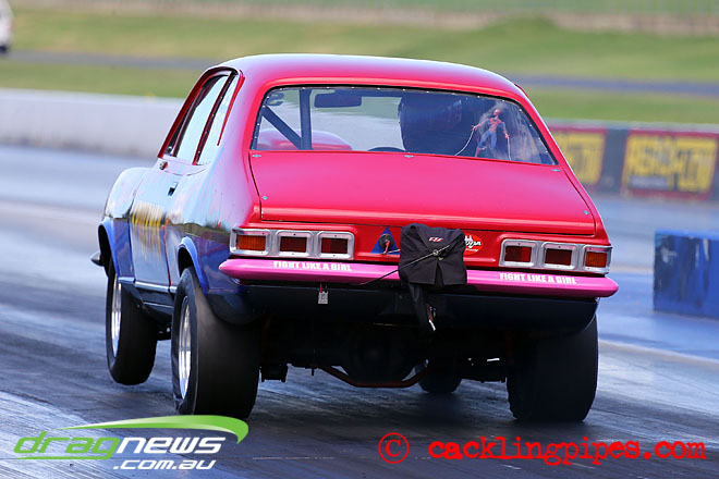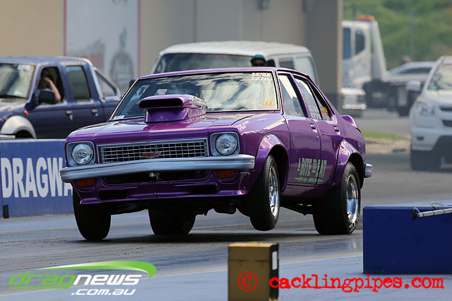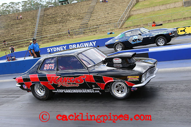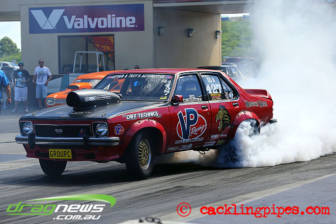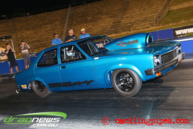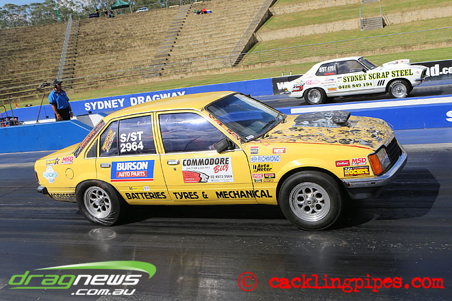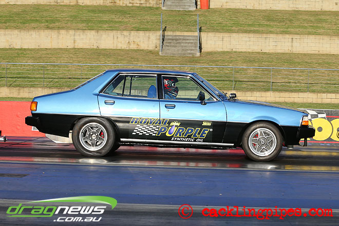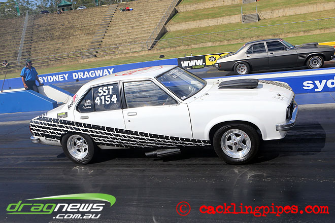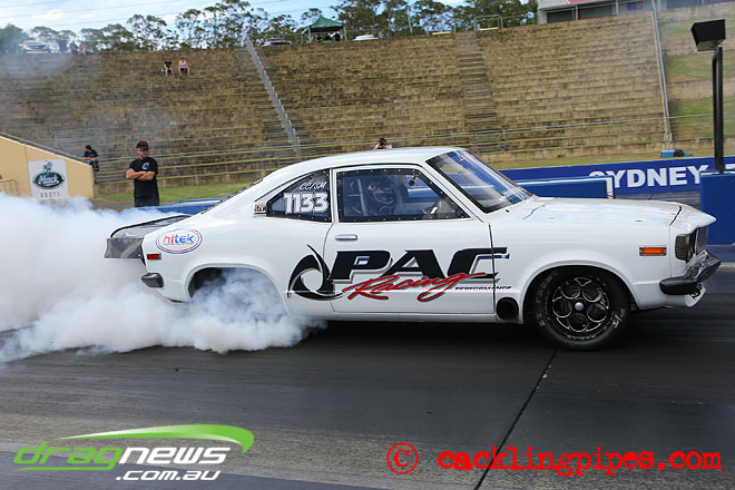 Super Gas only had five entries, Michael Stivala went 9.906 to lead qualifying. Stivala would feature in the final defeating Anthony Panetta in the semi. In the other lane it would be Joe Catazariti’s Torana, a .-003 red light from Stivala’s Camira decides the final at the tree.