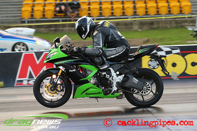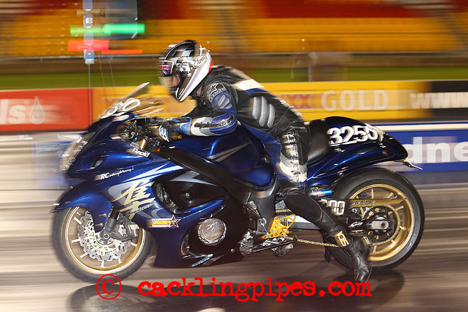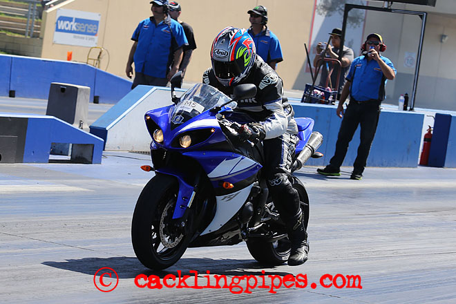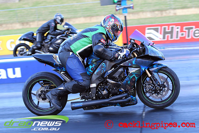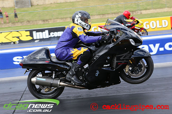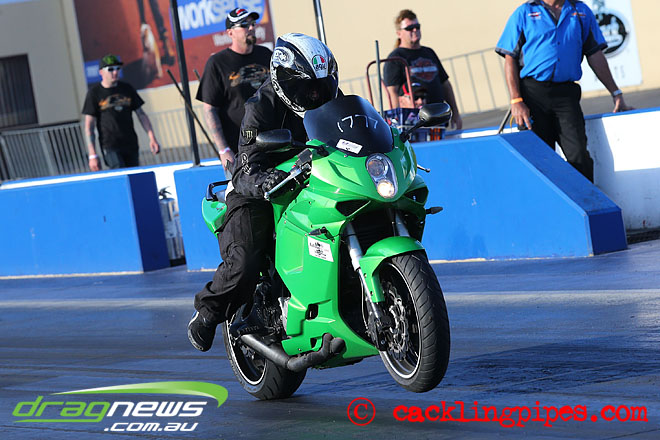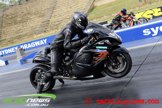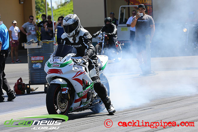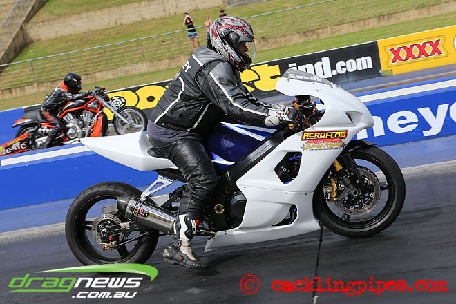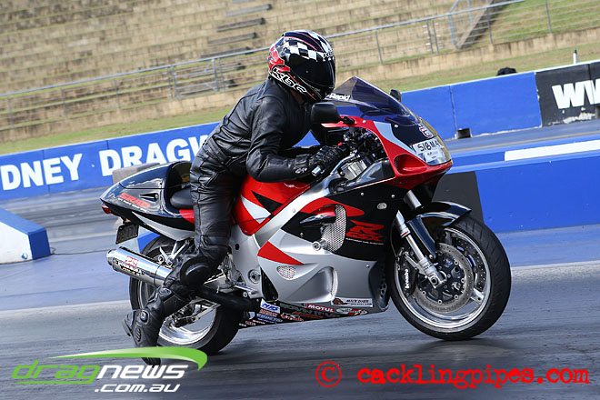 In Modified Bike it was all the “Simmonator”, Robert Simmonds top qualified with a 8.97 on the Hayabusa, defeated last years down to the wire track championship combatant Matthew Hunt in the semi finals before meaning to face Mathew Tansley in the final. Tansley held off Joe Khoury’s destroyer in the semi, but the Suzuki could not make the start line for the final and Simmonds was off to the perfect start to another title defense.