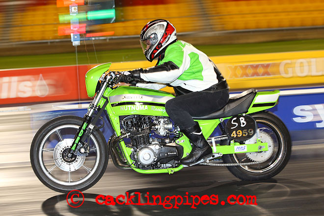 The final was a double up for the Simmonds family with Mal Simmonds collecting the first Street Bike trophy due to a red lighting Mark Akers on his nostalgia Kawasaki.