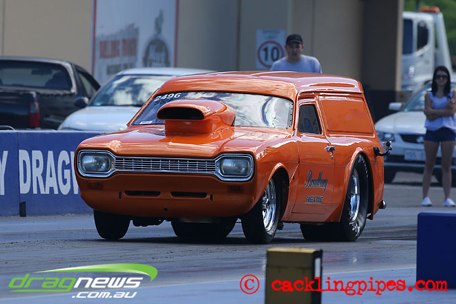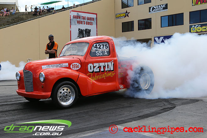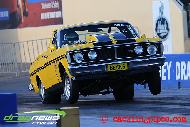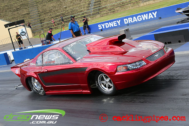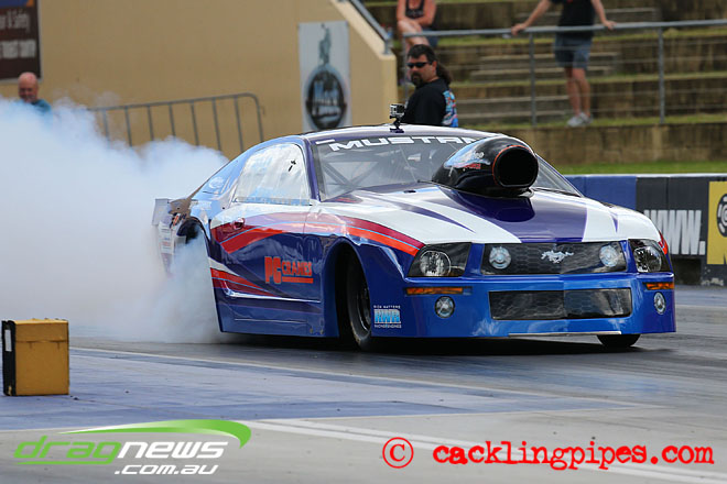 Victorian John Brunner had the honour of a solo to the final in the elimination round and would be joined by Matt Long’s Mustang who defeated the Undertaker hearse of Steven Greentree 8.56 (8.30) to 7.68 (7.00).