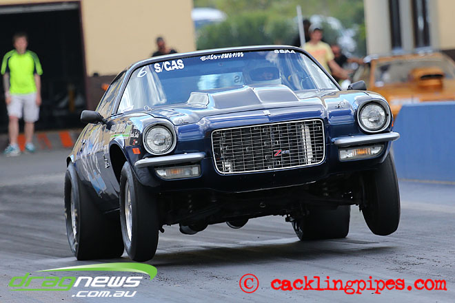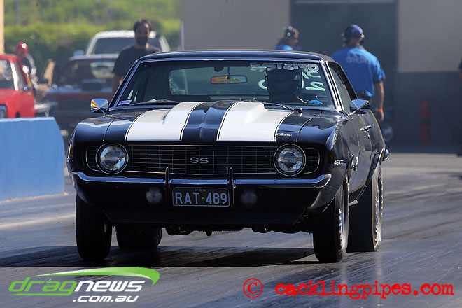 The new season sees a reworking of some classes and formats, Top Comp was on a three round format. Brett White top qualified with a spectacular wheelstanding 5.62 PB (6.01IN). Johnny Rosso at his debut event was second with a 7.11 (7.05IN) in AA/APA with his Camaro. Geoff Gradden went 6.57 (6.26IN) and Jeff Wilson 6.60 (6.26IN) in their Top Doorslammers to round out the field.