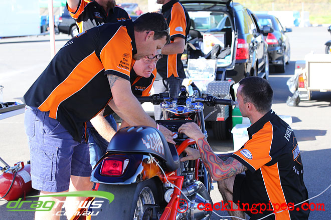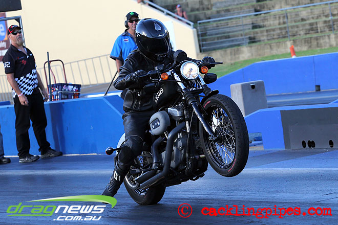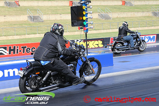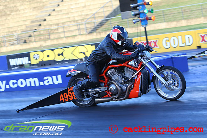 Running a 3 round format, all racers squared off in a single elimination round with the best four winning packages going to an A and B finals. Dearne Stephen red lit against AJ Fairbairn, Mike Watkins snuck home against Jeff Penton, Norm McCormack was too good for Mal Gower and Hodgson defeated Jeff Gatt.