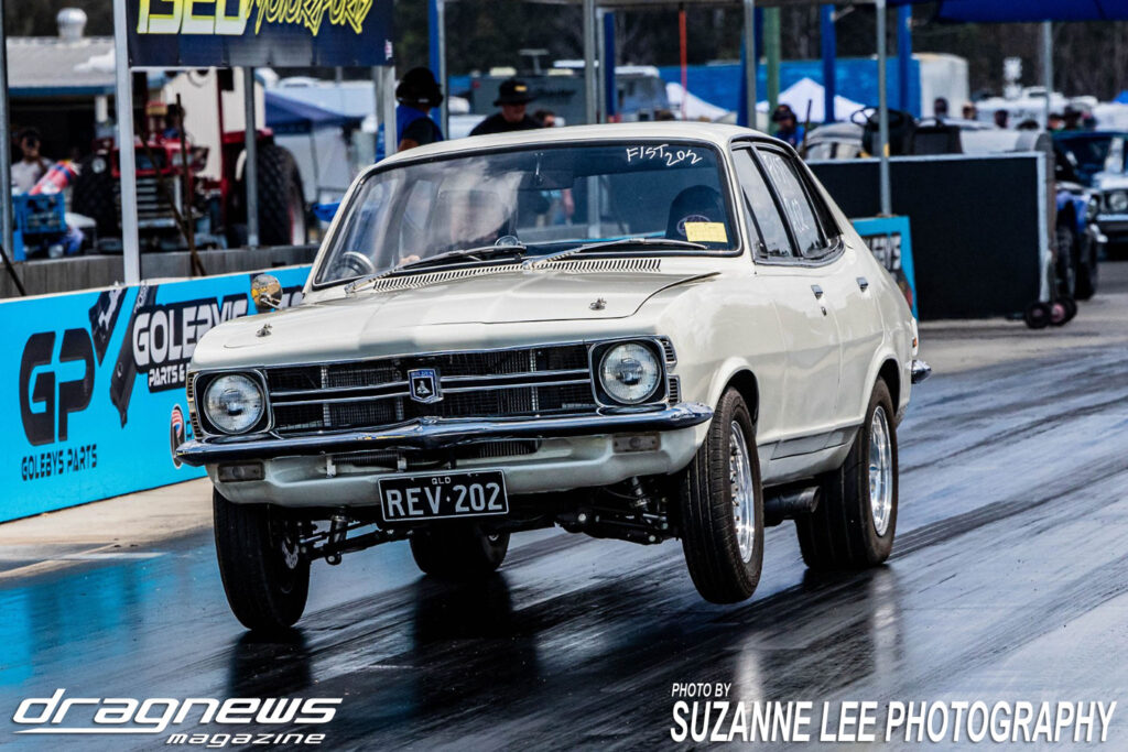 With over 80 entrants in Fast Street this year, the class was split into two brackets, A and B, featuring everything from street-machine show cars to budget-friendly builds. Fast Street runs on a 5.90 to 8.50-second range under Dial Your Own Racing rules. Tony Bennett topped qualifying overall in his tough blue Torana with a 6.07 @ 114 MPH, while the 40th qualifier in Fast Street A ran a 7.37 @ 93 MPH, highlighting the diversity of the field.