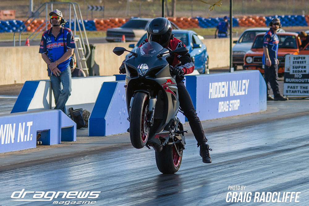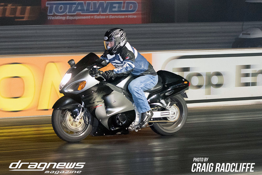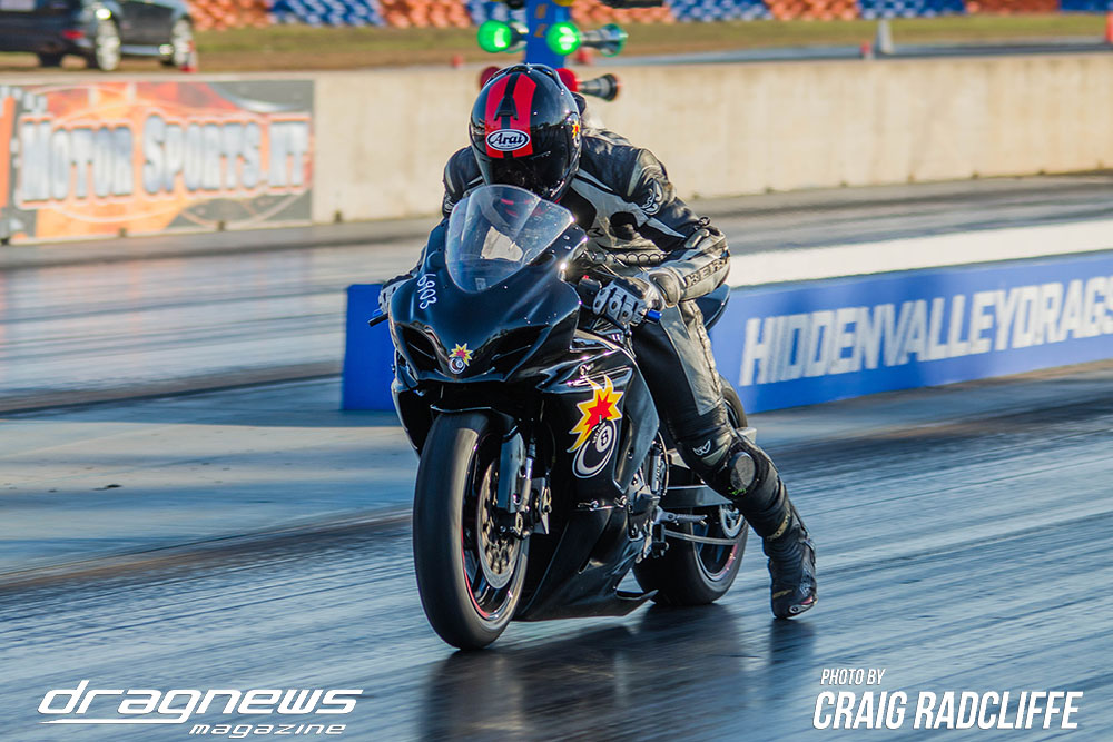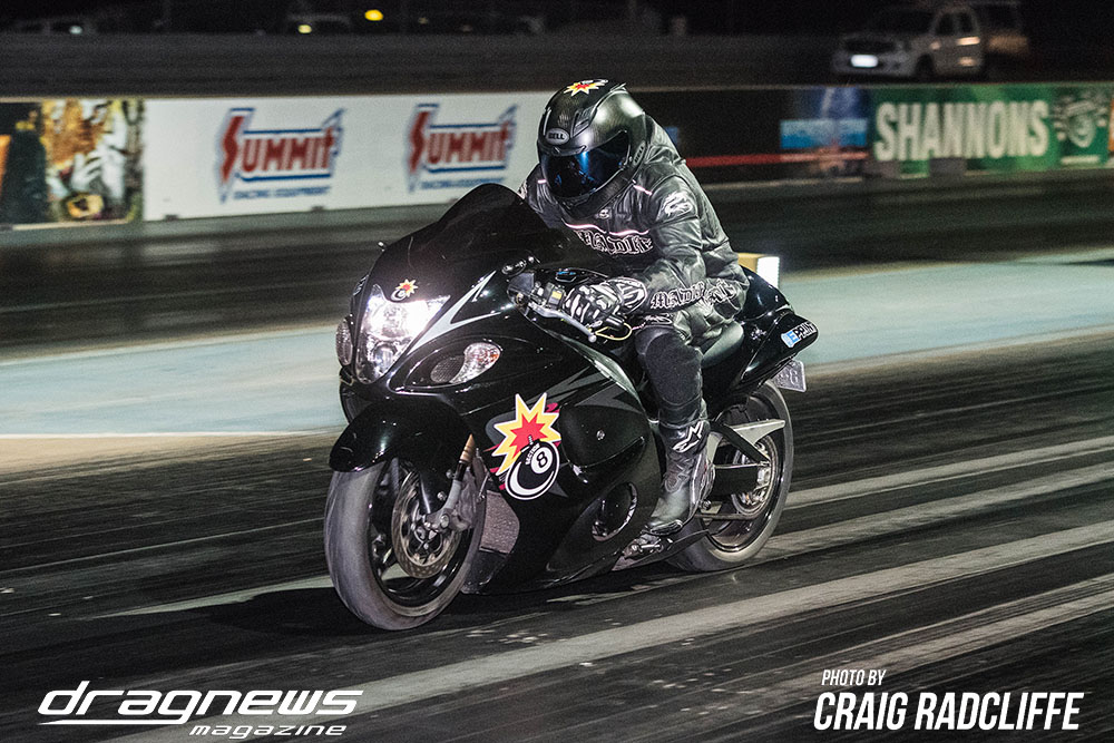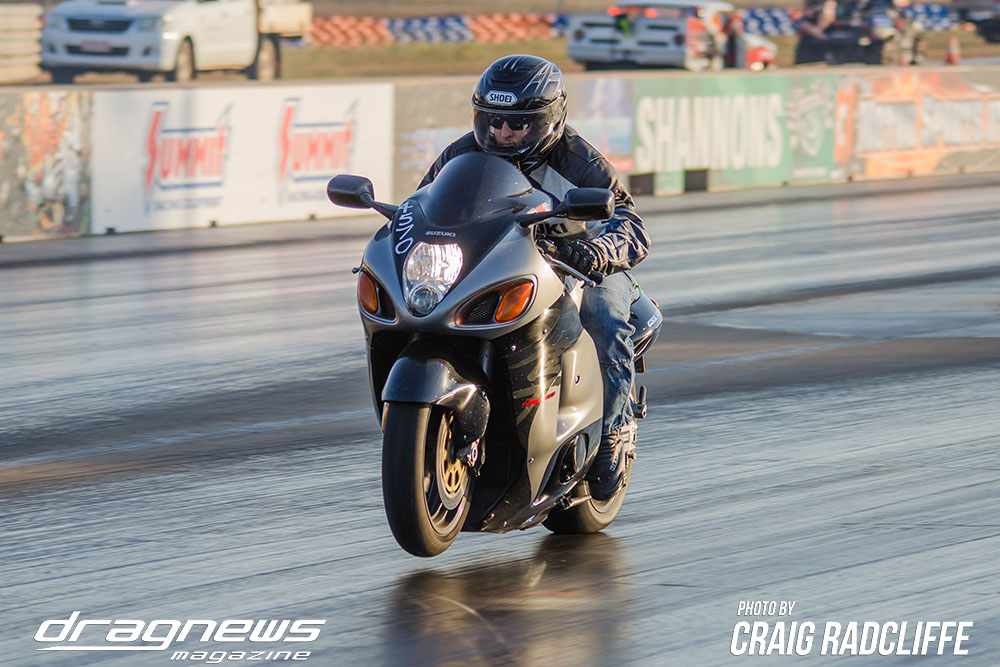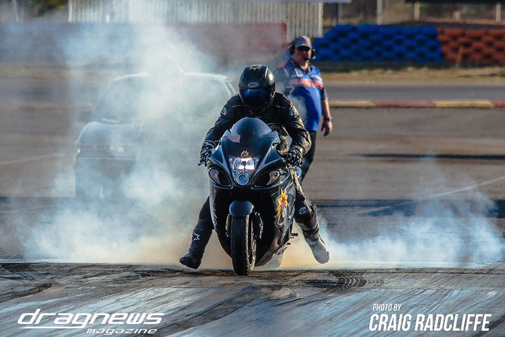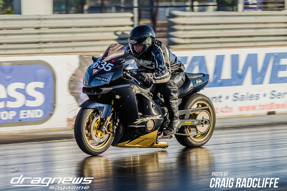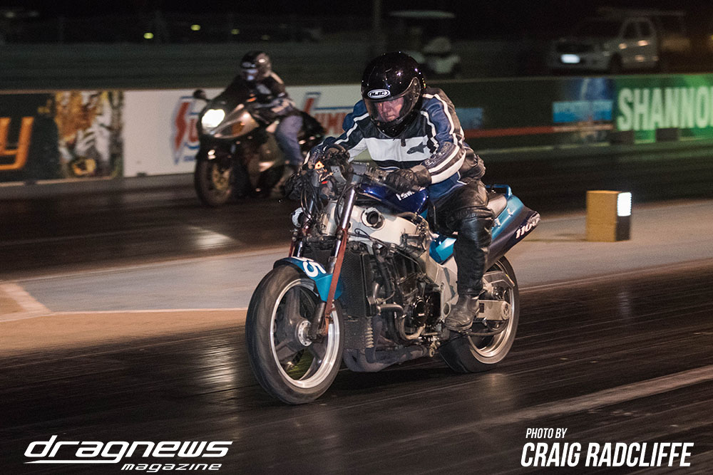 In Modified Bike Colin Sainsbury has the easiest of wins when opponent Heath Costello could not make a start on his Harley.