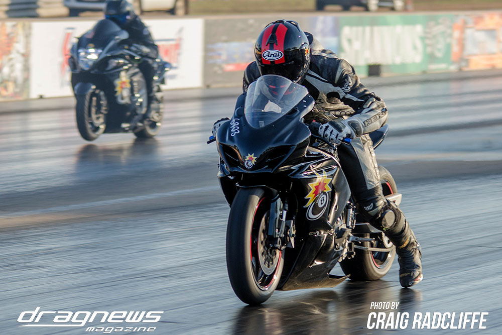 Finally in Street Bike, after 5 rounds of Chicago Shootout racing, Allan Henry aboard his Hayabusa rode off against Andrew Reid also on a Hayabusa. Henry with the slight start line holeshot held the advantage to the stripe for a 9.80 on a 9.70 dial in win.