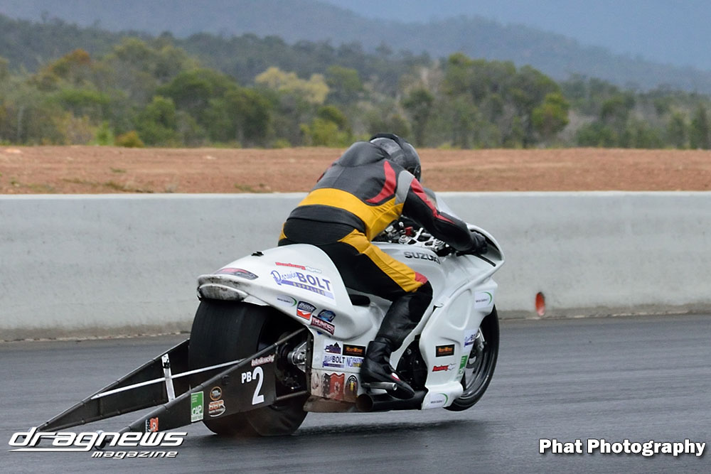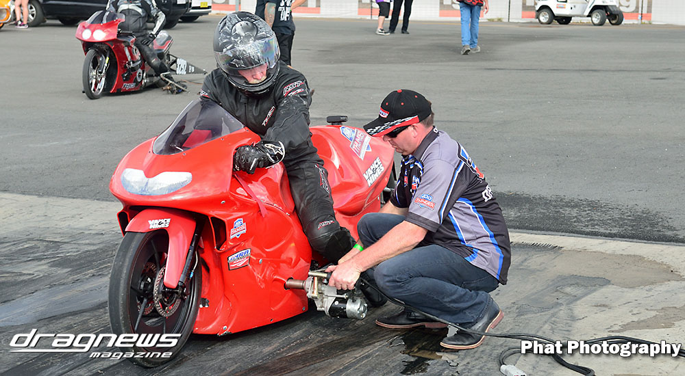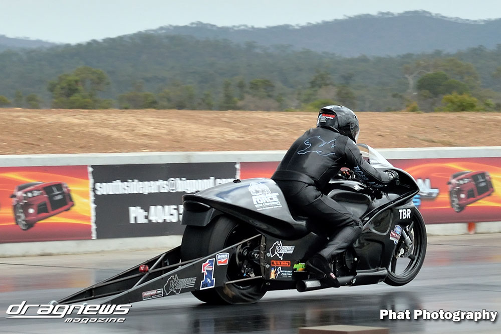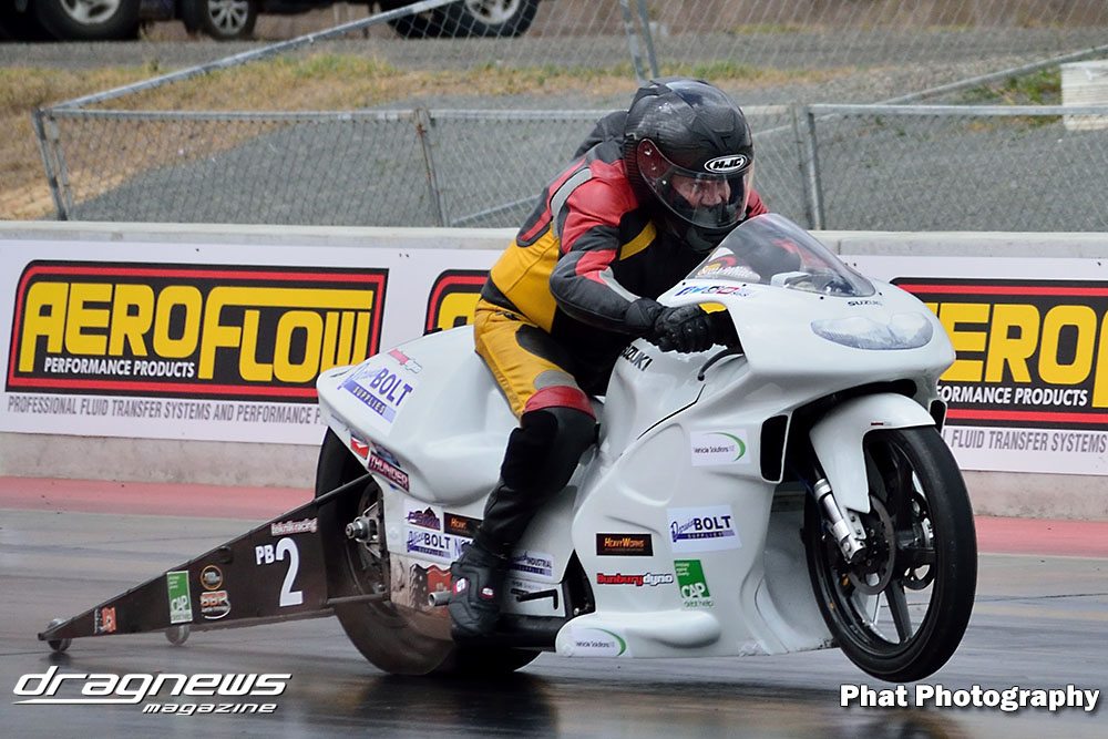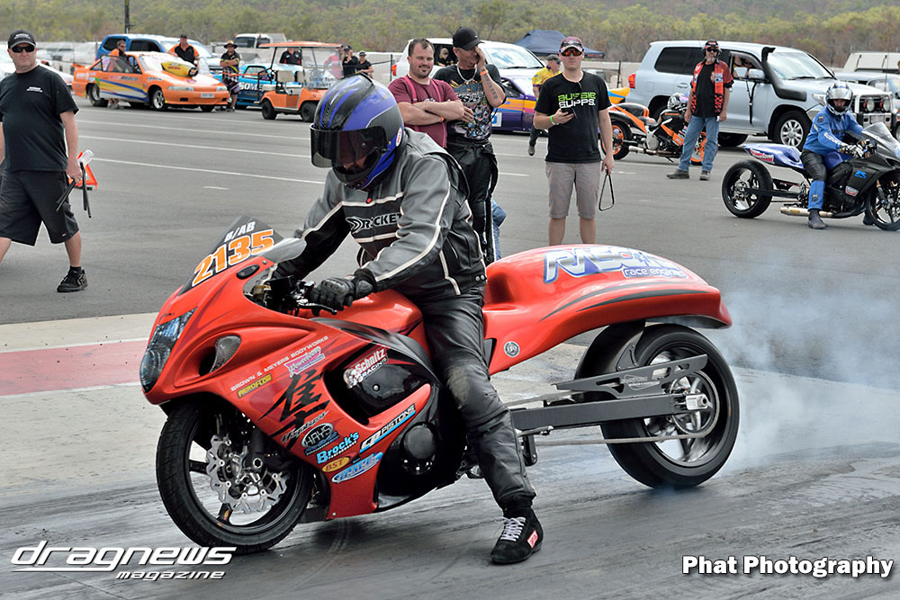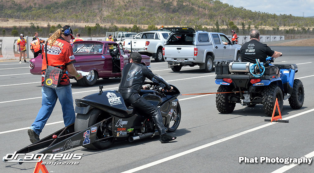 In Pro Stock Motorcycle qualifying Brad Lemberg headed the time sheets with a 7.46. Glenn Wooster and Scott White were next, split by just one thousandth with best laps of a 7.488 and 7.489 respectively. Phil Howard on Maurice Allen’s bike finished qualifying with a 7.646, followed by a 7.800 from Daniel Rabnott, and Mark Hancock rounded out the field with a 7.906.