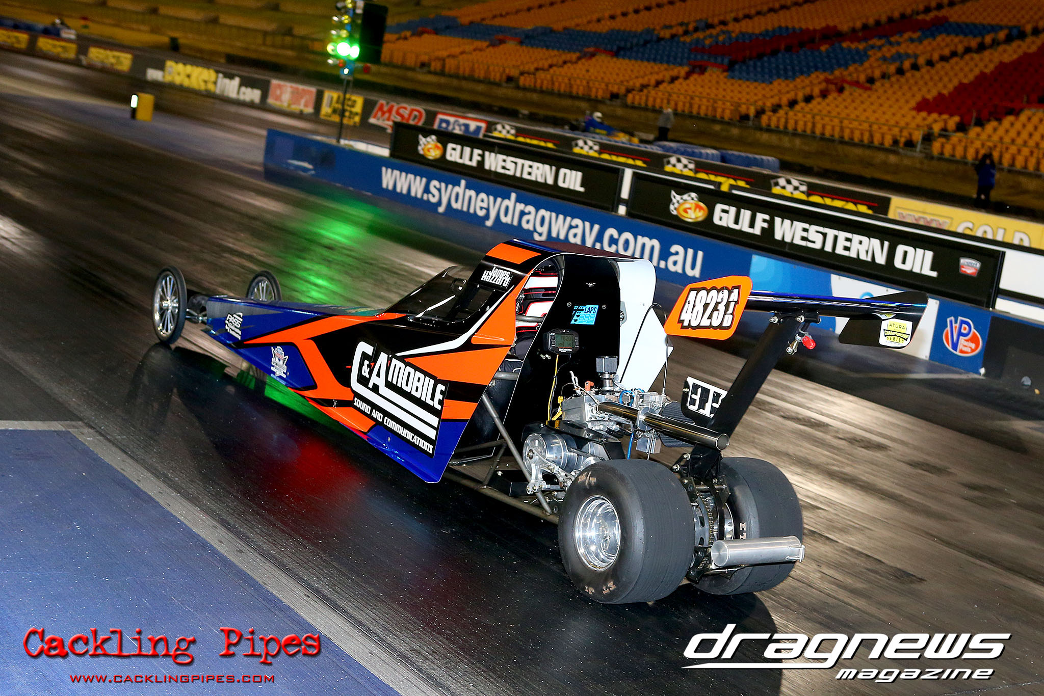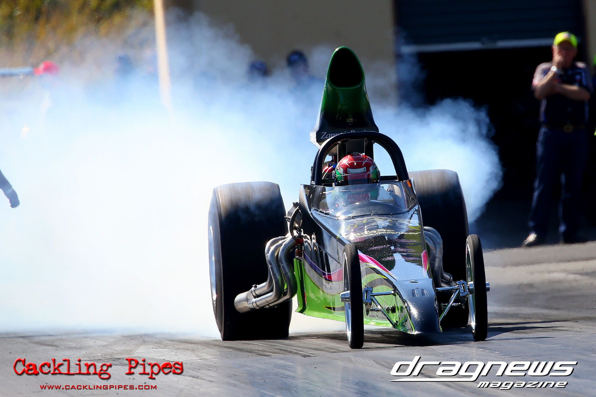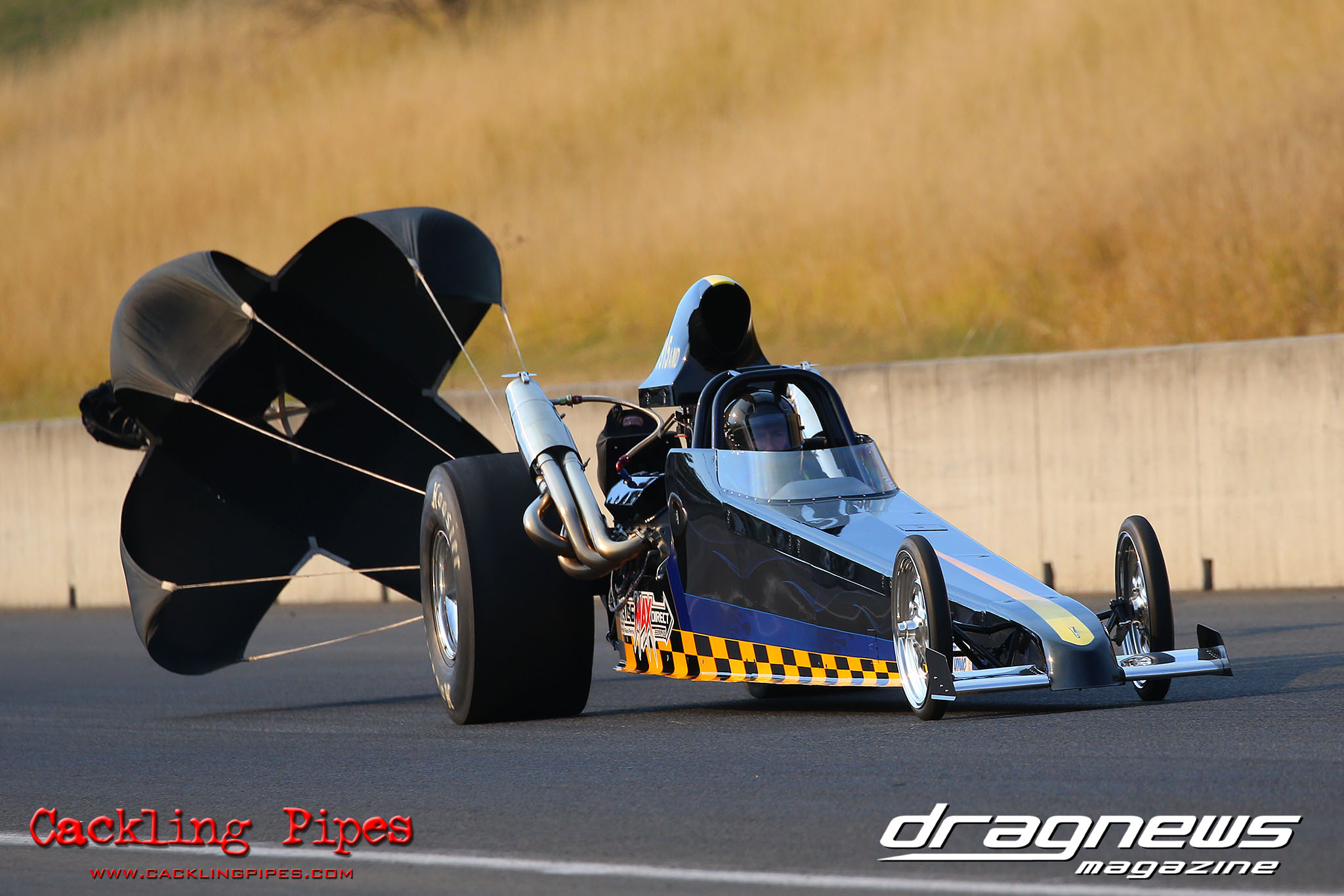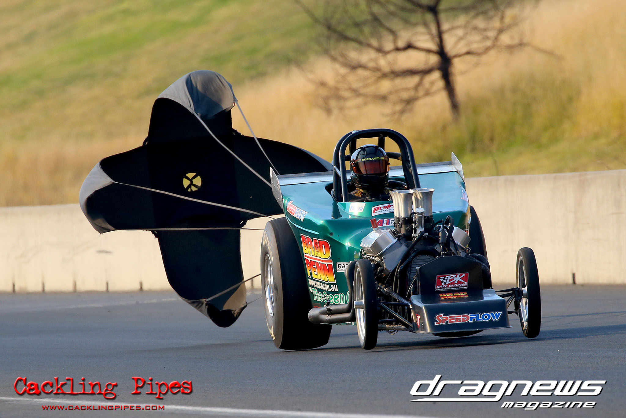 On a perfect Winter’s day racing was held up by a string of out of the ordinary oil downs, but the day remained incident free until Jason Wilmen found the catch net testing the Brett Roberts twin turbo Competition dragster. Fortunately Wilmen was uninjured and the dragster while needing some love and tender care, will be back on track soon we are sure.