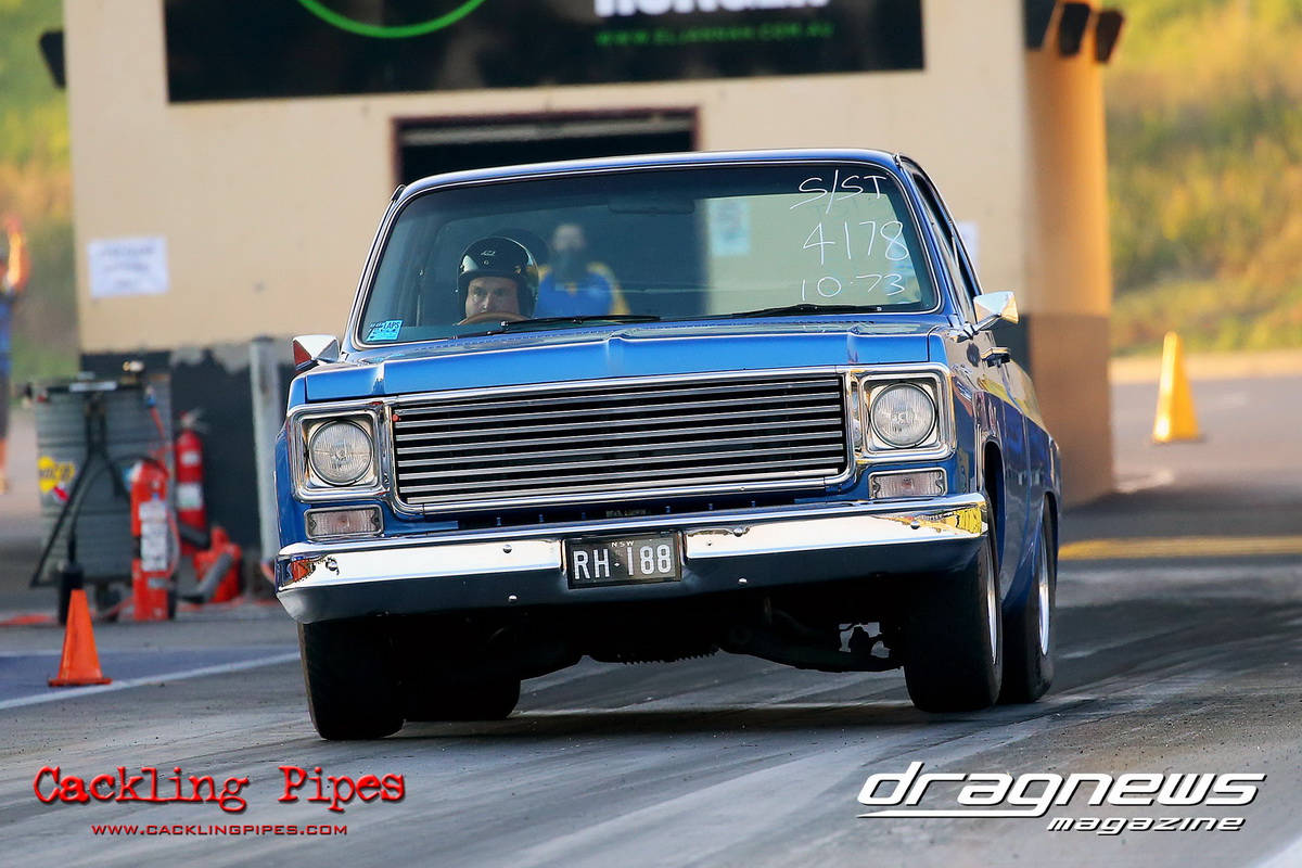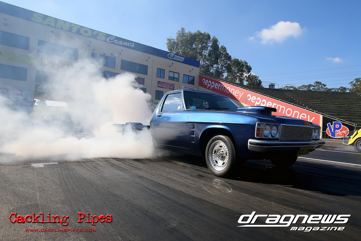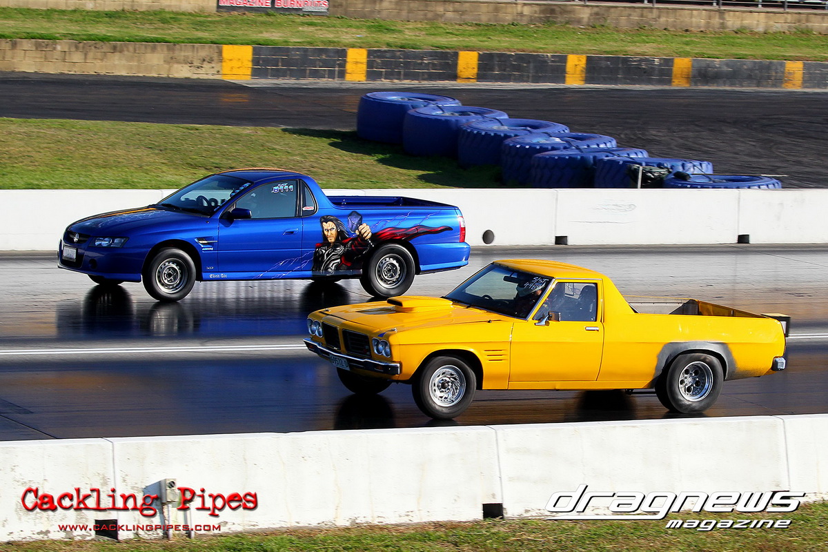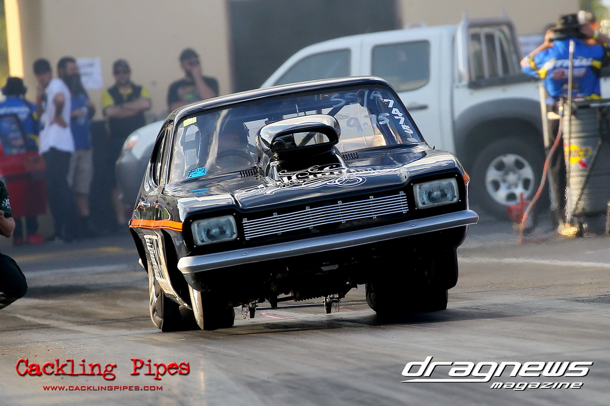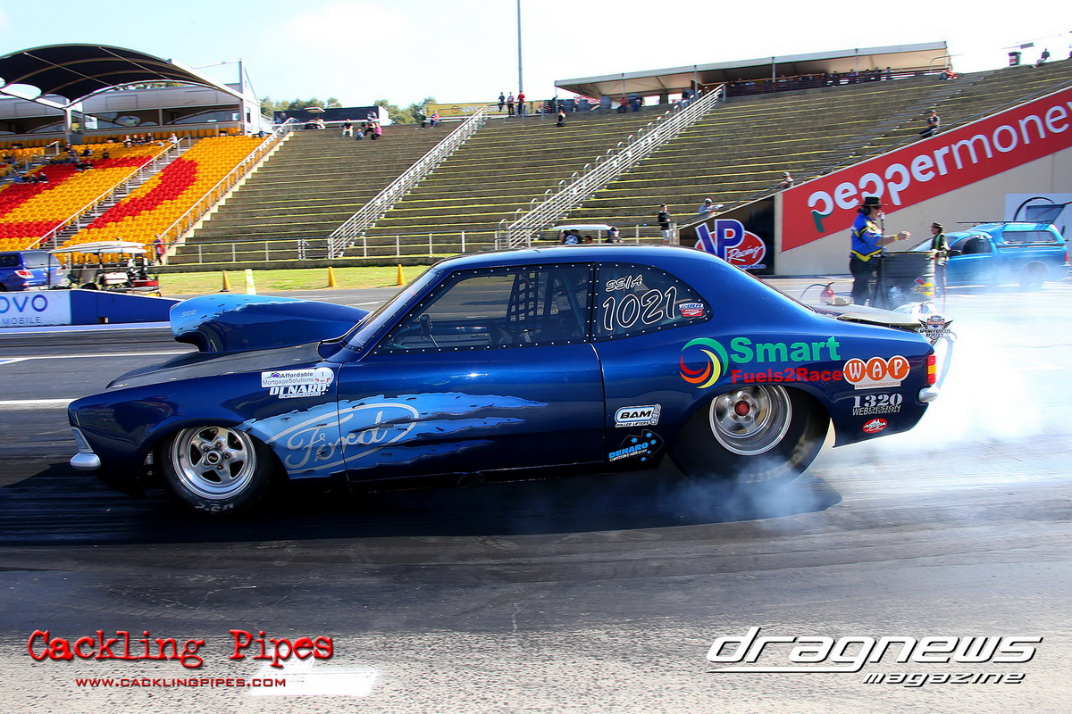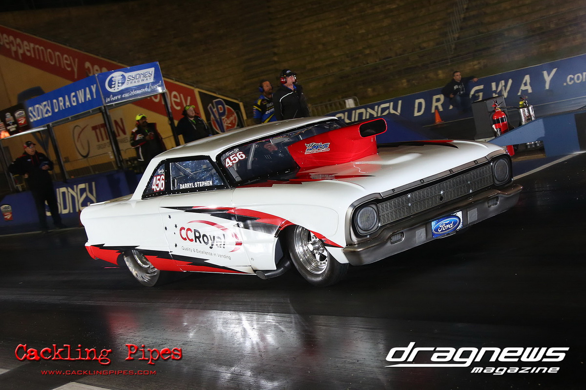 Darryl Stephen has fronted three of the four Super Gas final rounds this season in his old school Falcon. Taking a .025 to .097 holeshot in this final against Roy Romeo, Stephen racked up his second season win with a 9.91 to Romeo’s too quick 9.85.