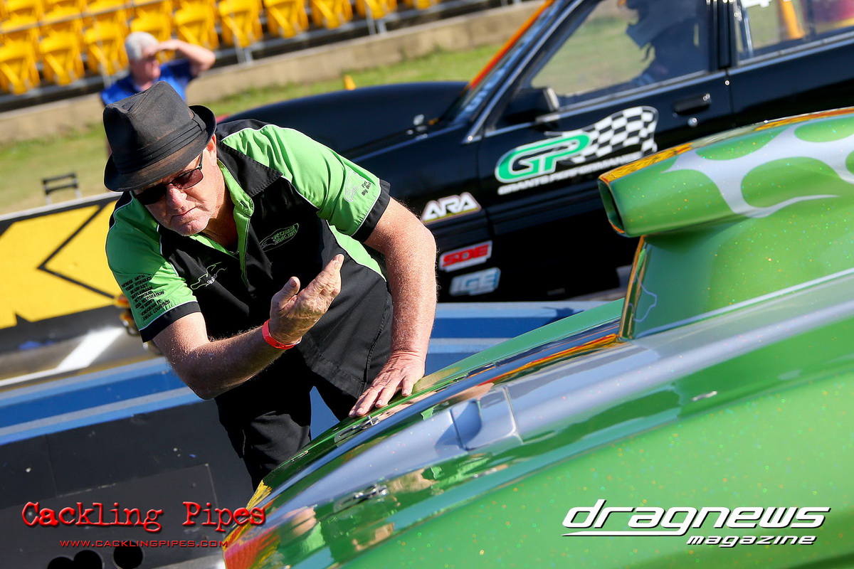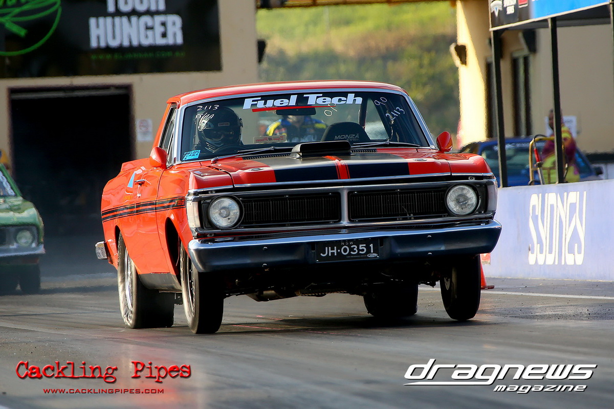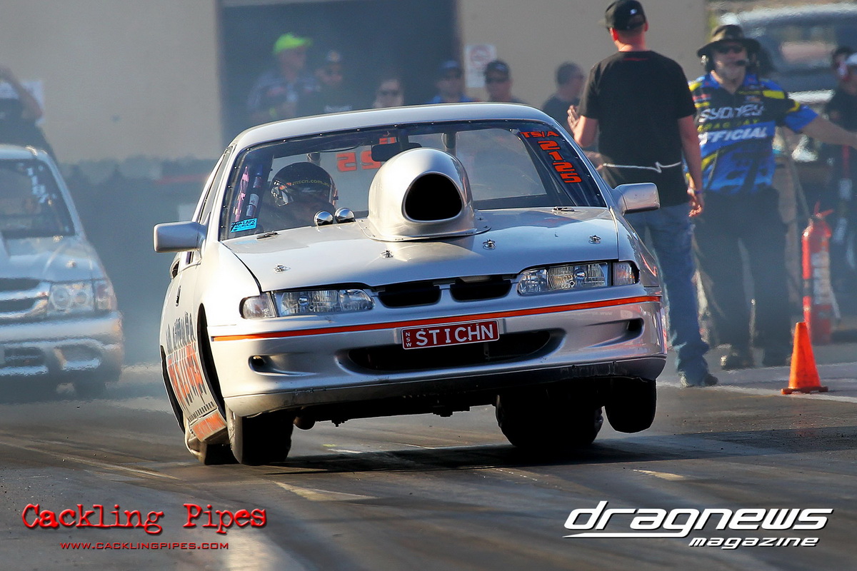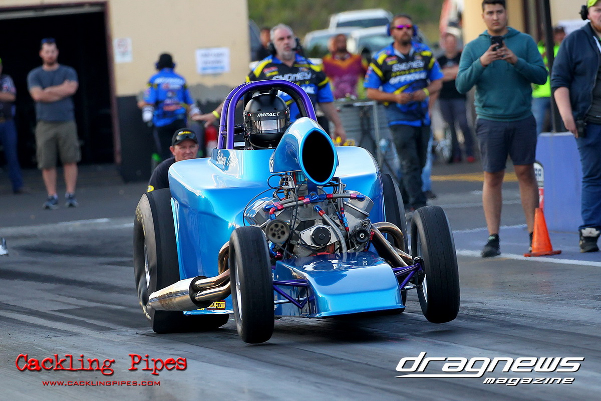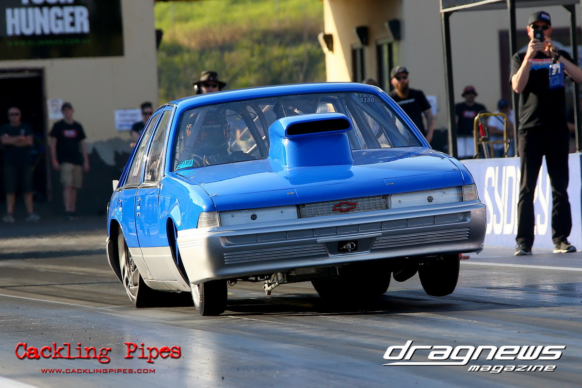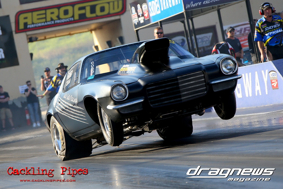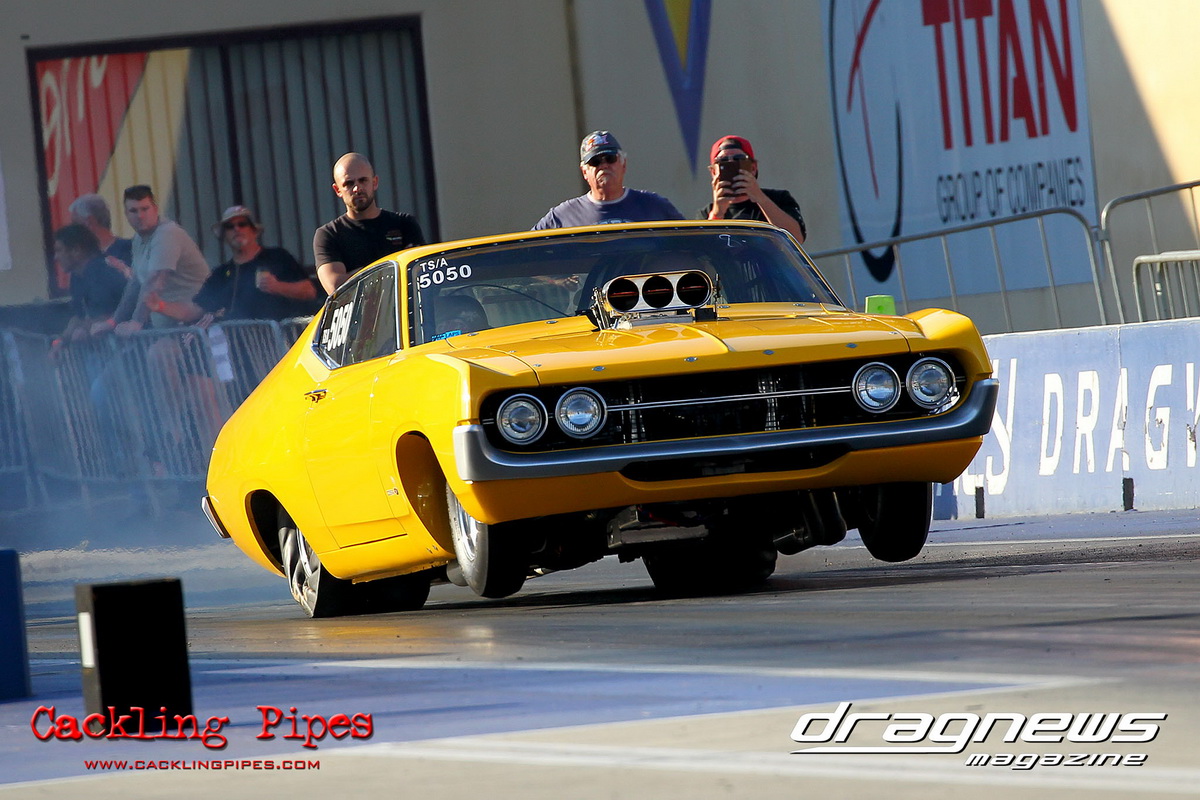 Darryl Stephen has fronted three of the four Super Gas final rounds this season in his old school Falcon. Taking a .025 to .097 holeshot in this final against Roy Romeo, Stephen racked up his second season win with a 9.91 to Romeo’s too quick 9.85.