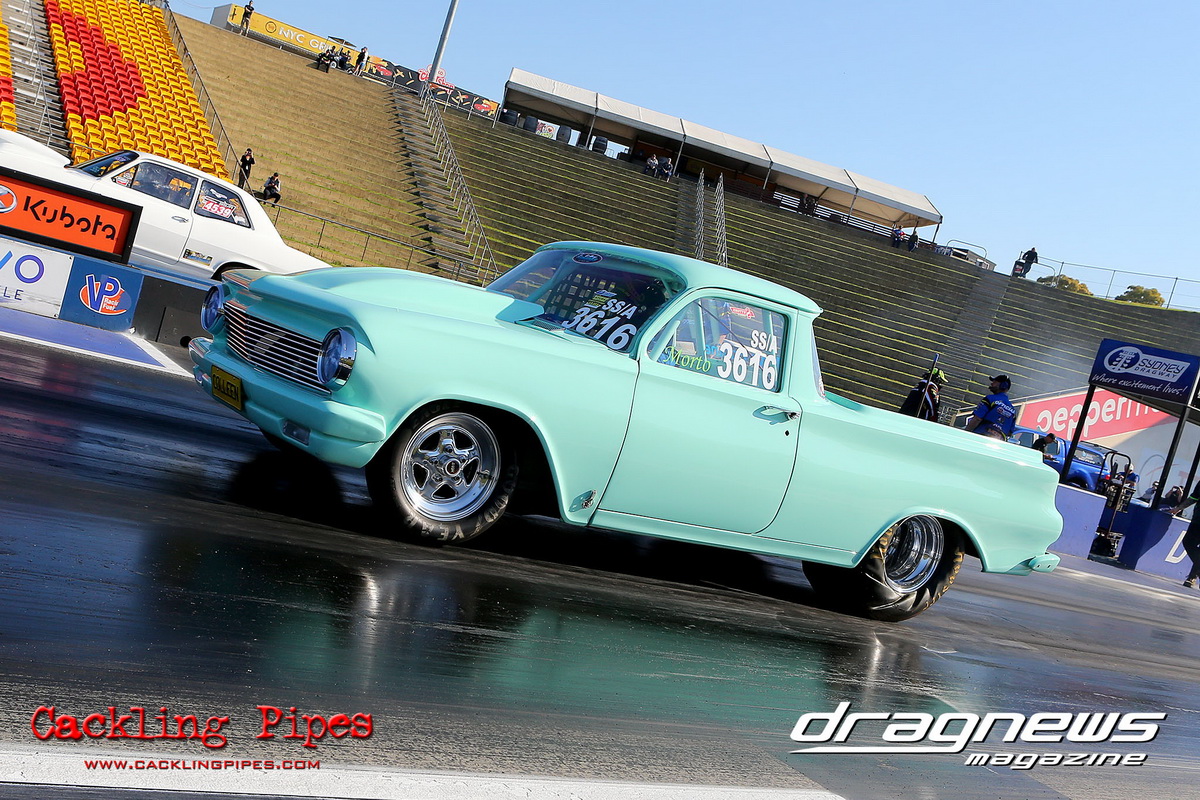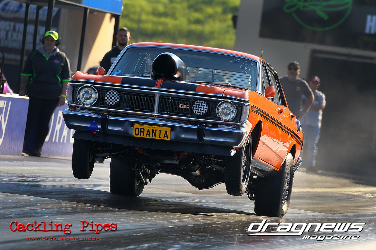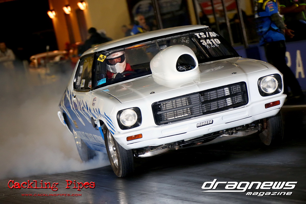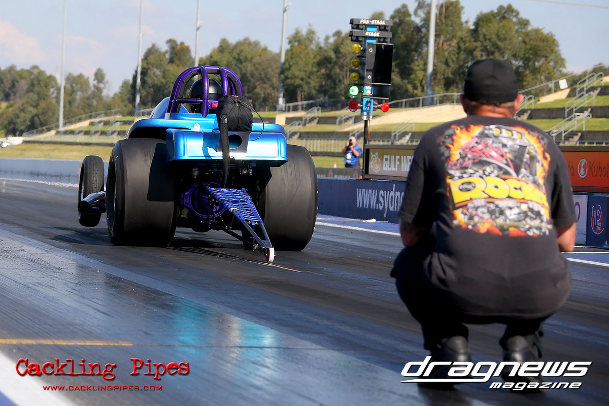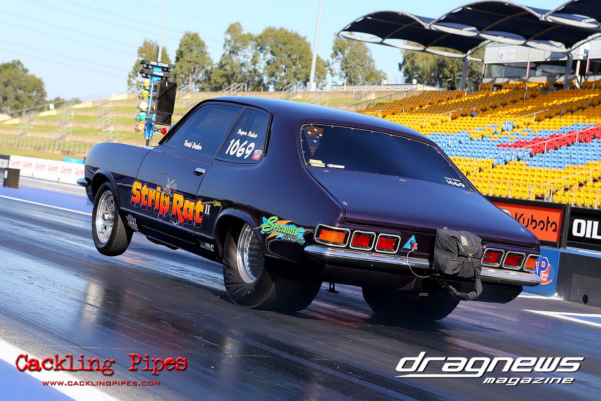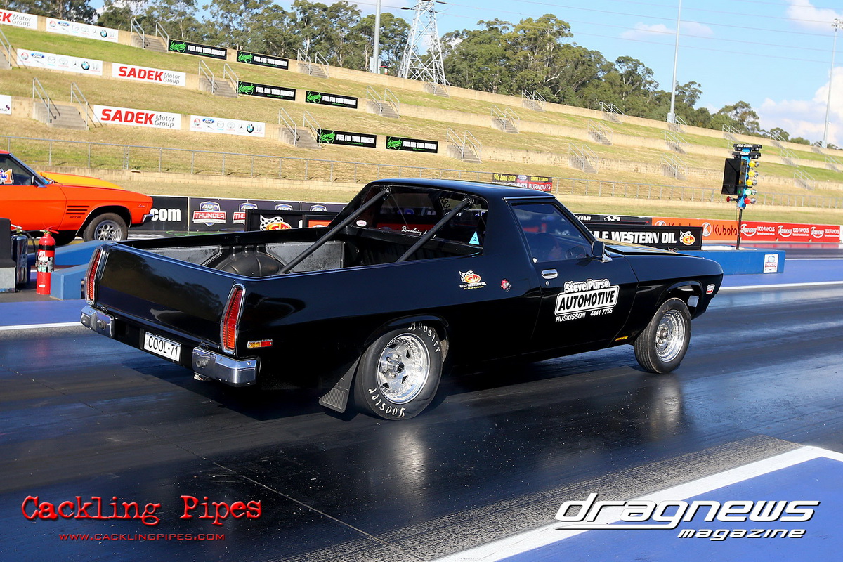 Darryl Stephen has fronted three of the four Super Gas final rounds this season in his old school Falcon. Taking a .025 to .097 holeshot in this final against Roy Romeo, Stephen racked up his second season win with a 9.91 to Romeo’s too quick 9.85.