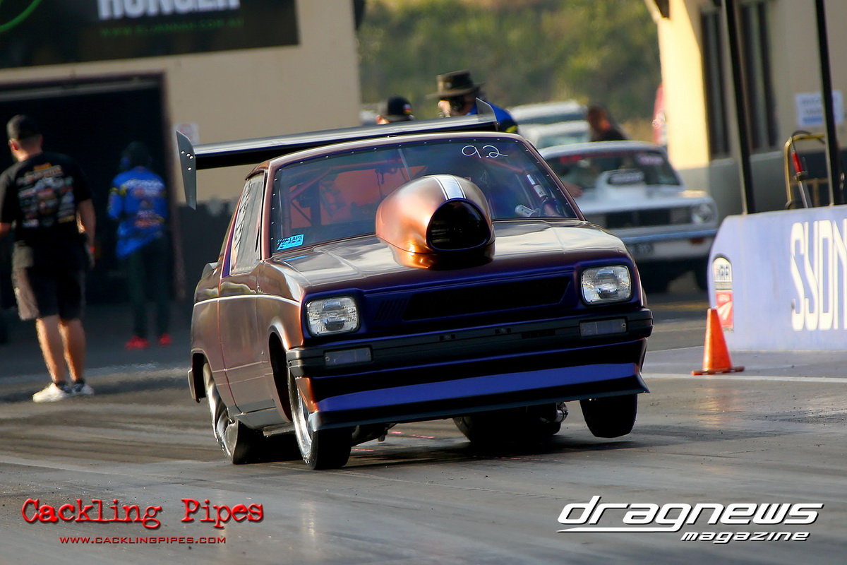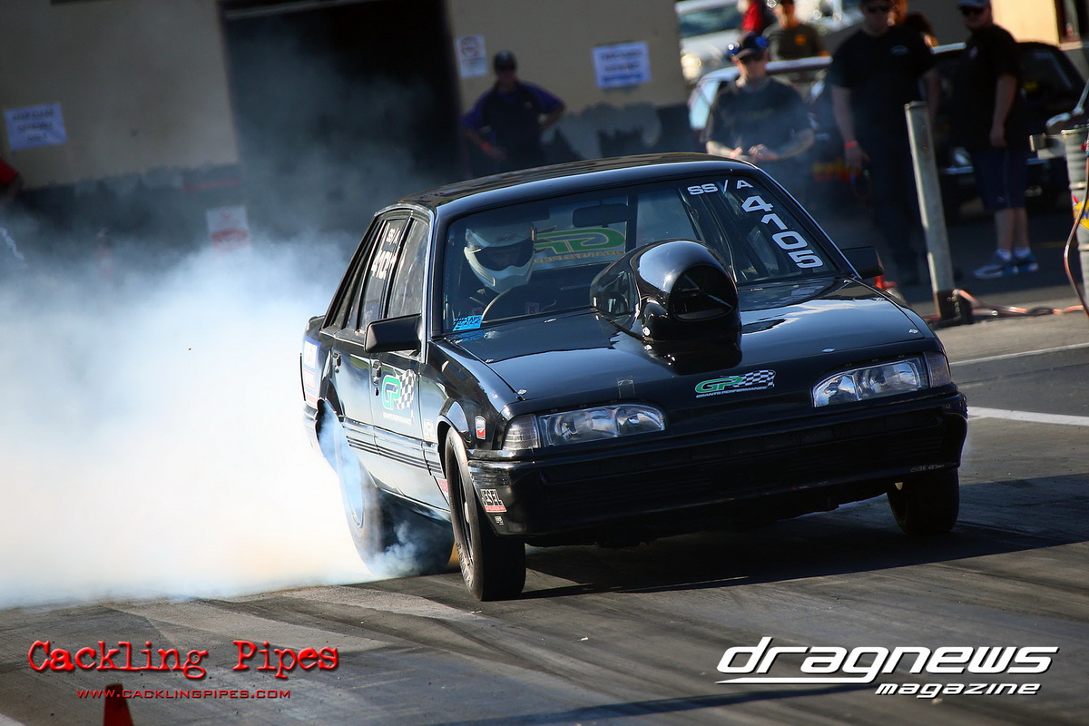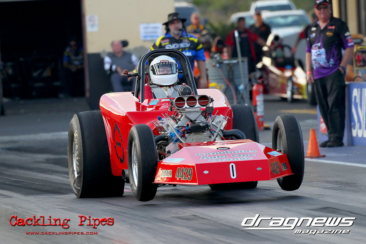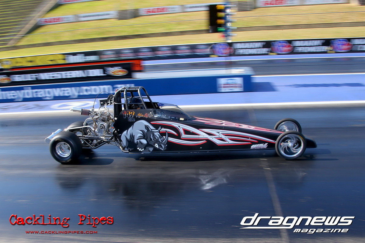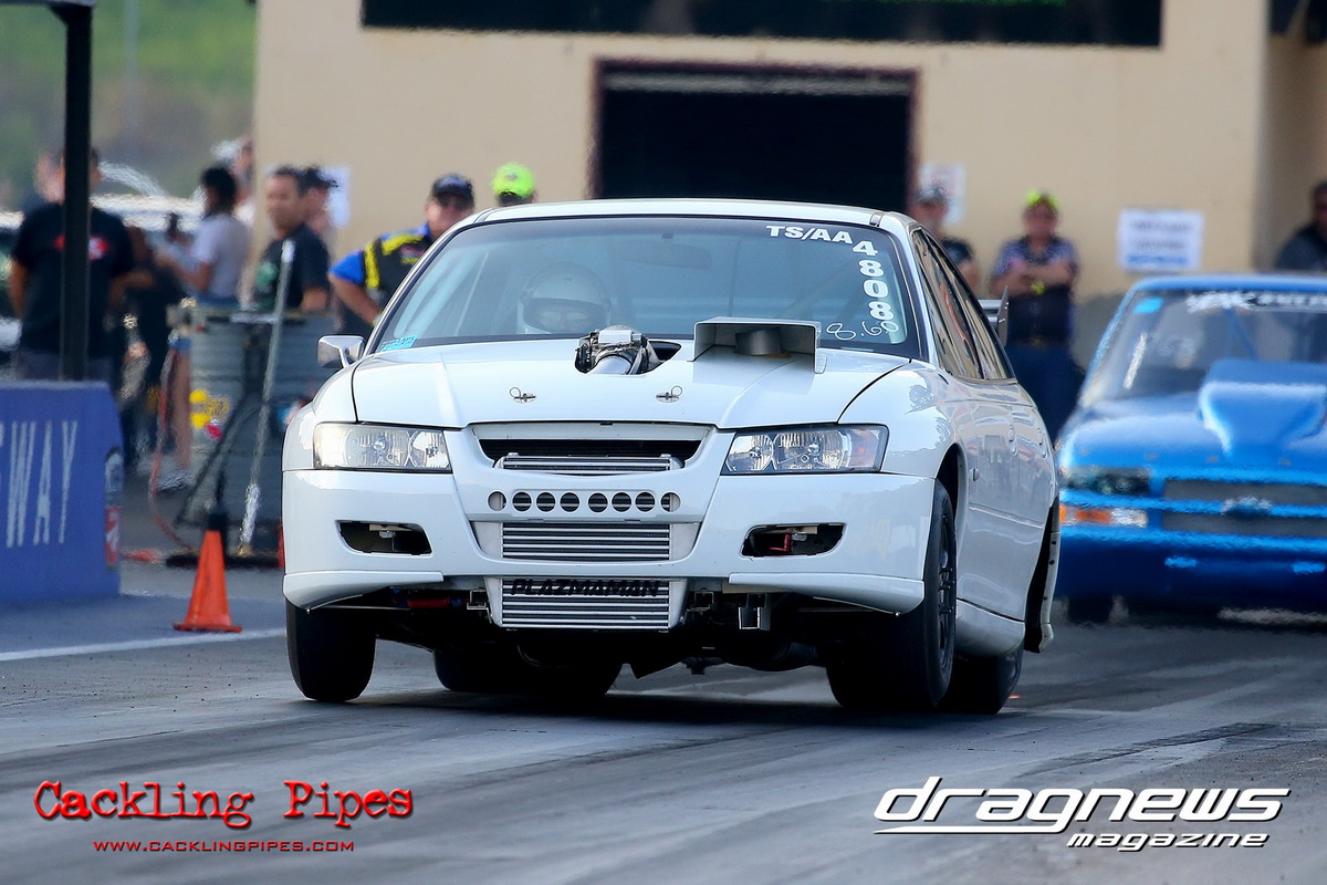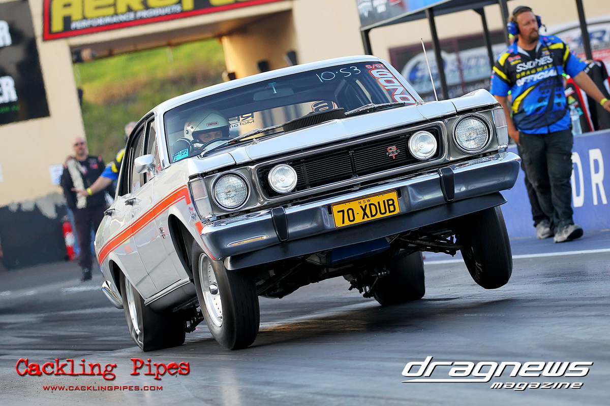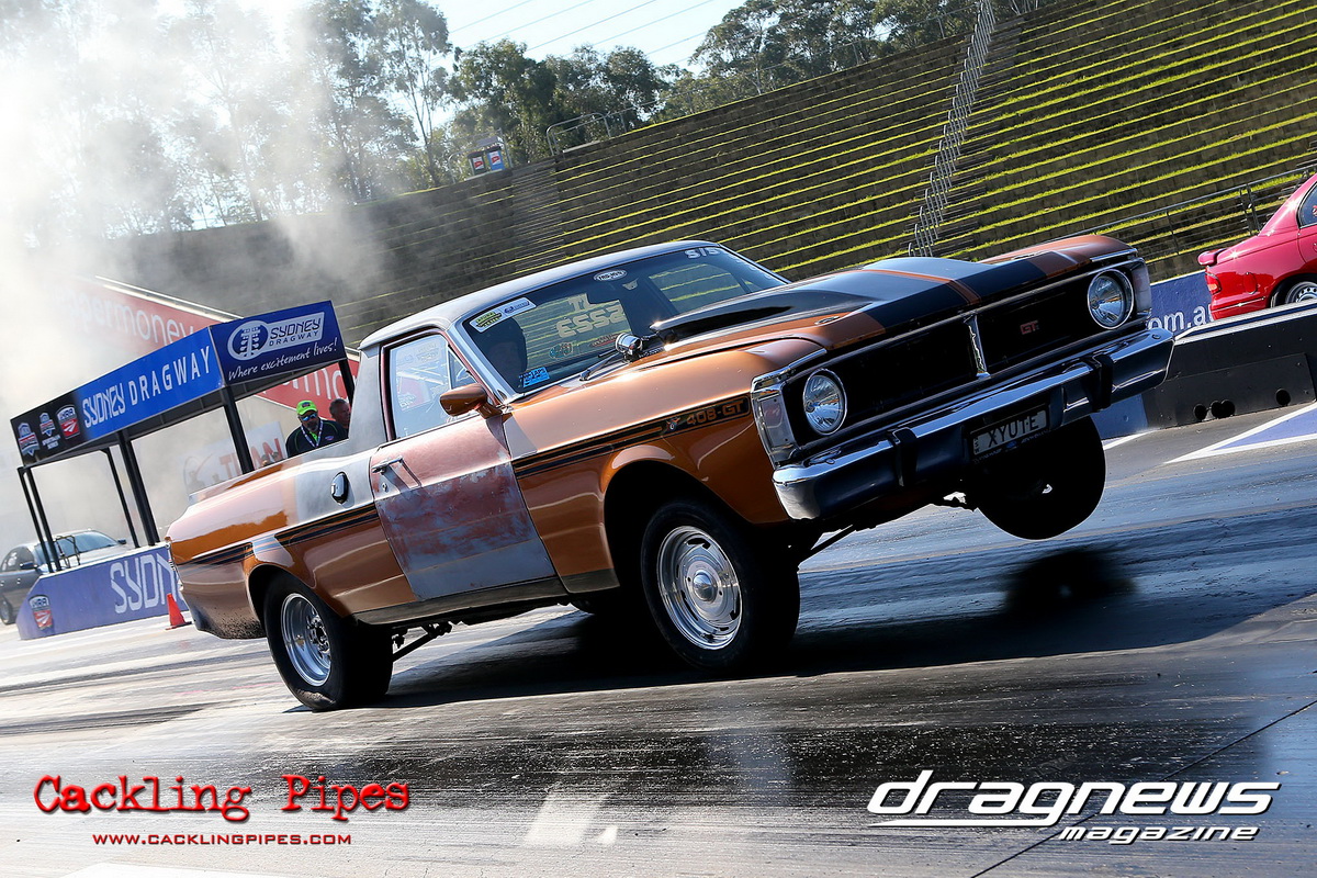 Darryl Stephen has fronted three of the four Super Gas final rounds this season in his old school Falcon. Taking a .025 to .097 holeshot in this final against Roy Romeo, Stephen racked up his second season win with a 9.91 to Romeo’s too quick 9.85.