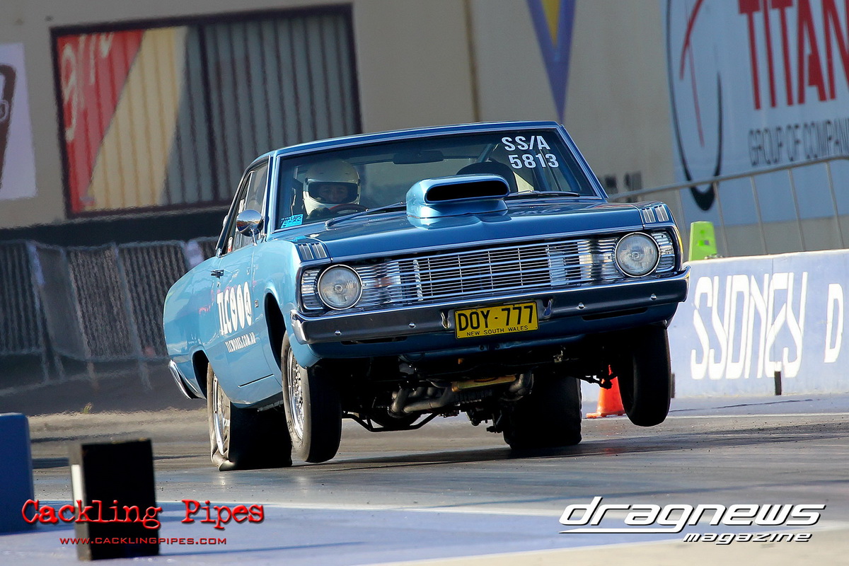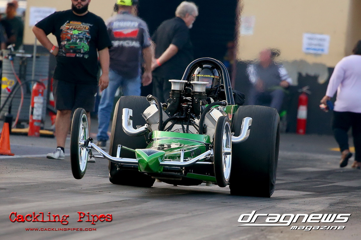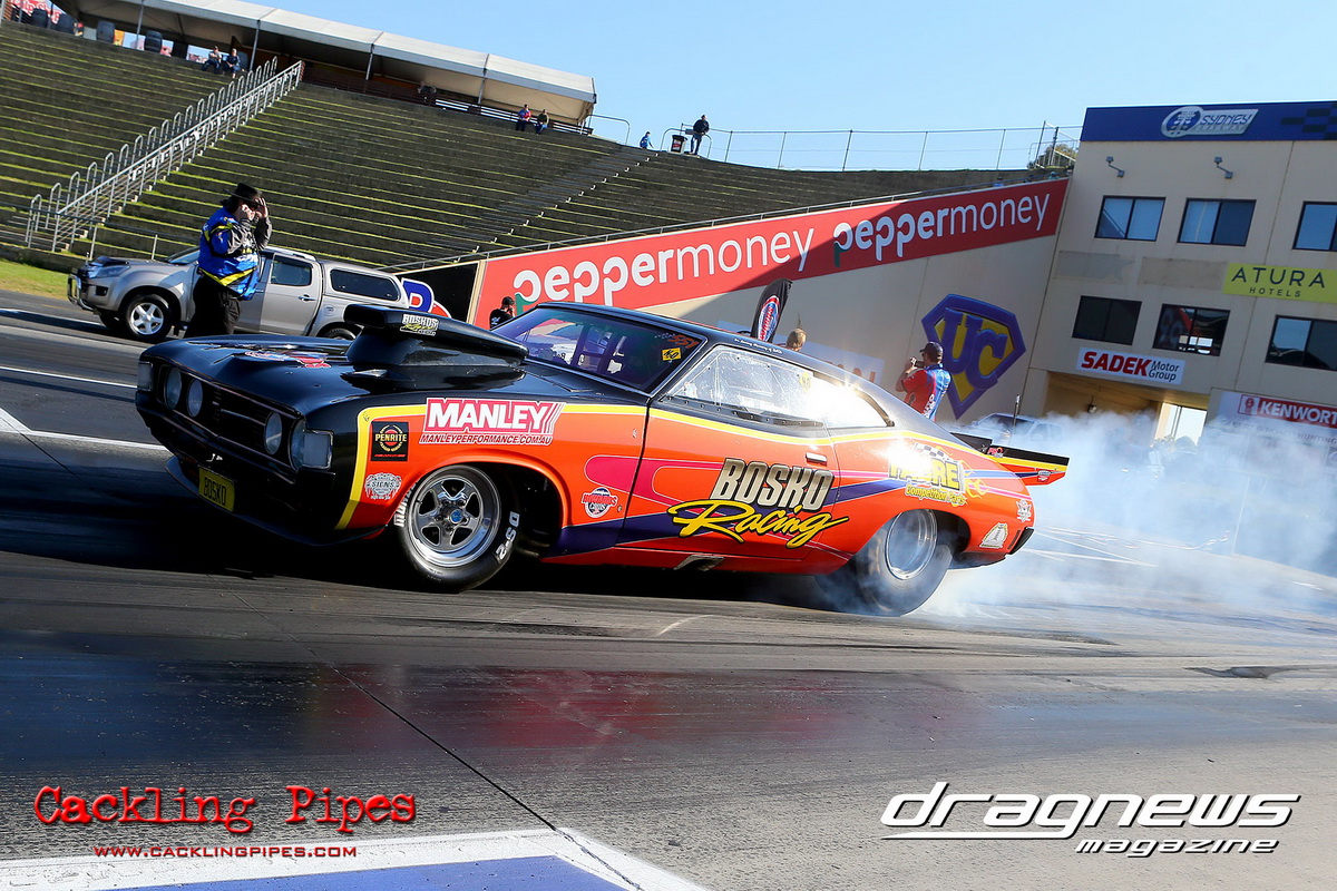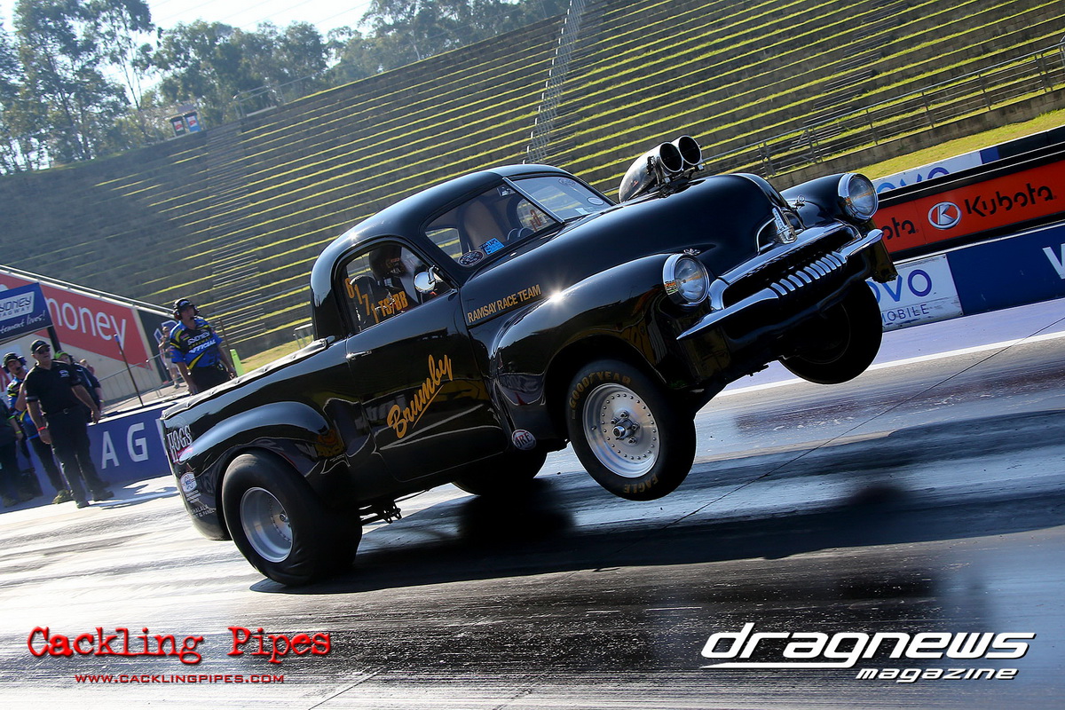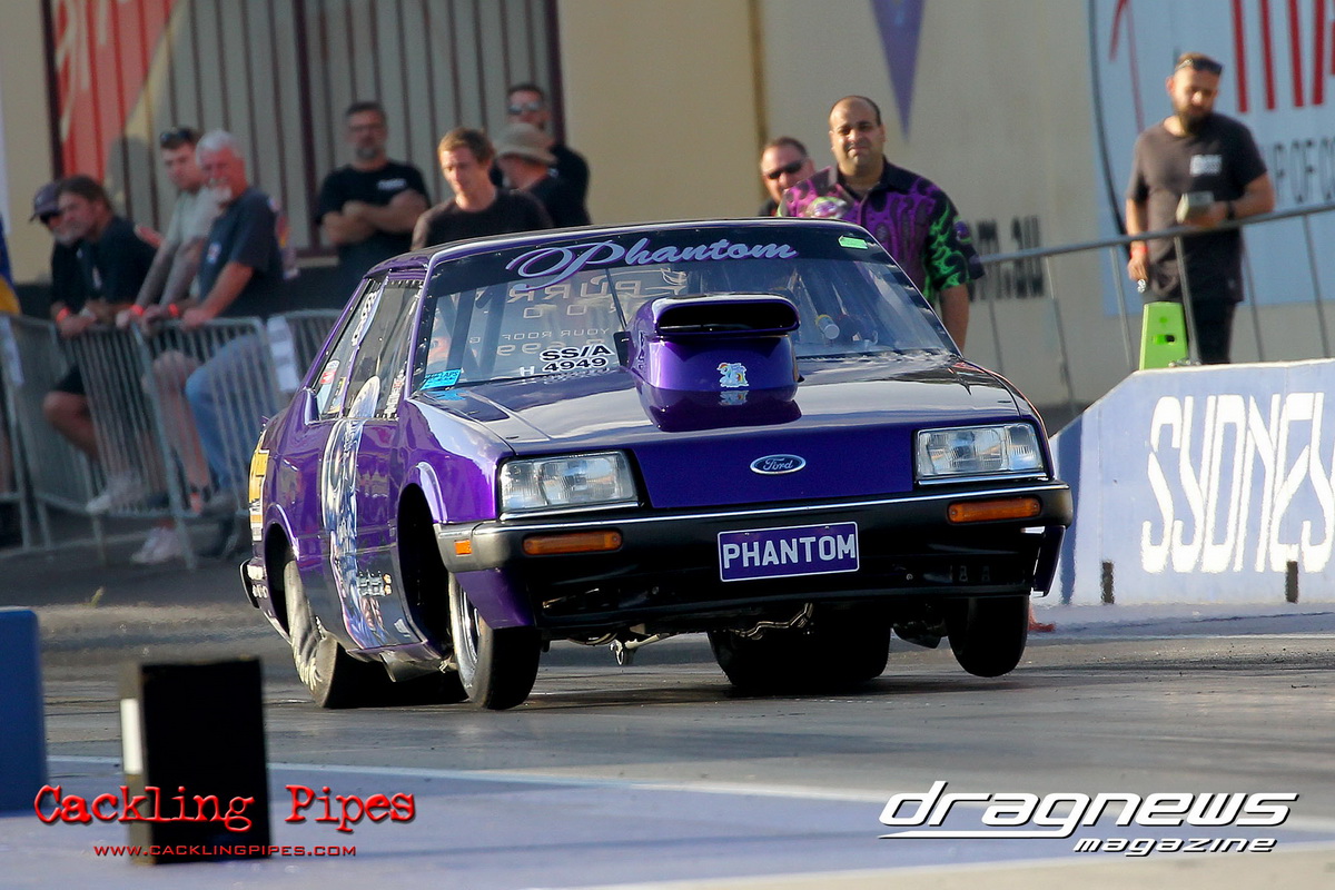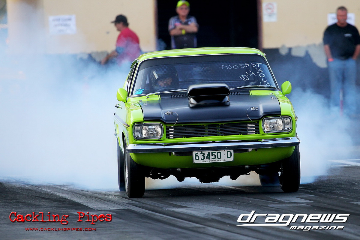 Darryl Stephen has fronted three of the four Super Gas final rounds this season in his old school Falcon. Taking a .025 to .097 holeshot in this final against Roy Romeo, Stephen racked up his second season win with a 9.91 to Romeo’s too quick 9.85.