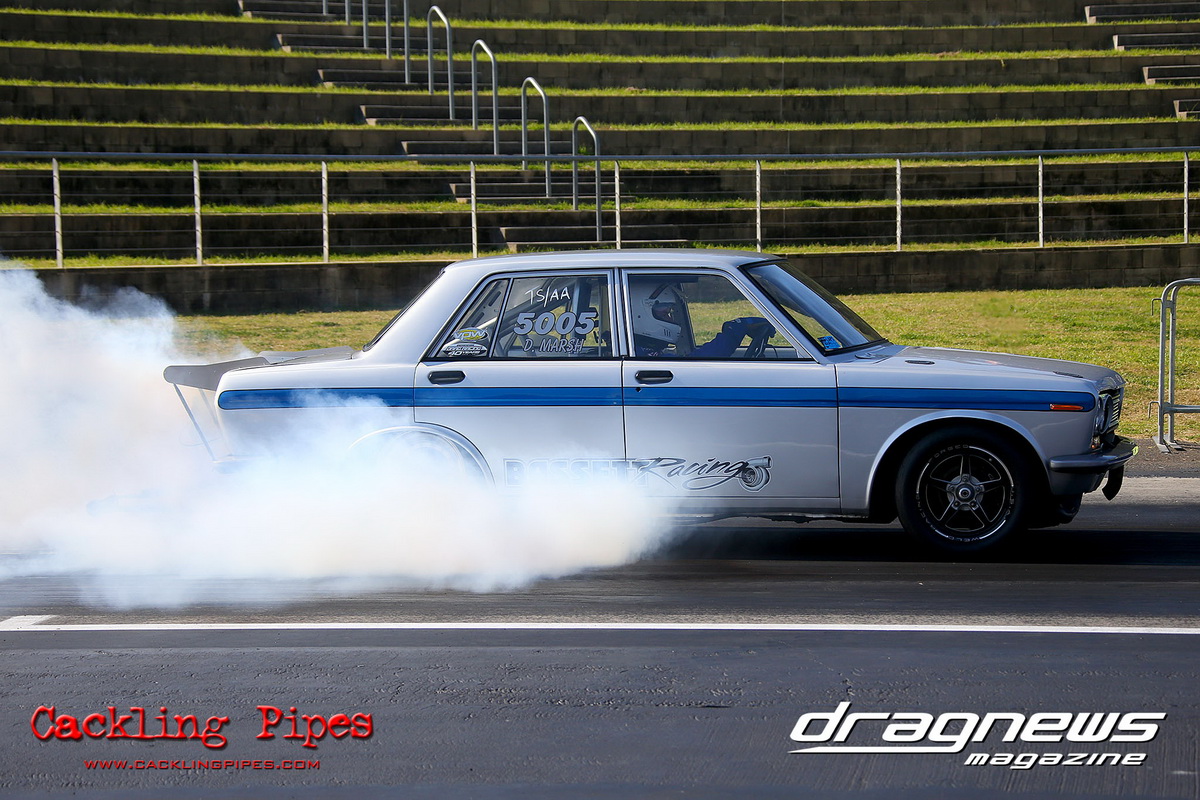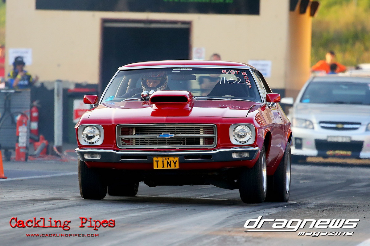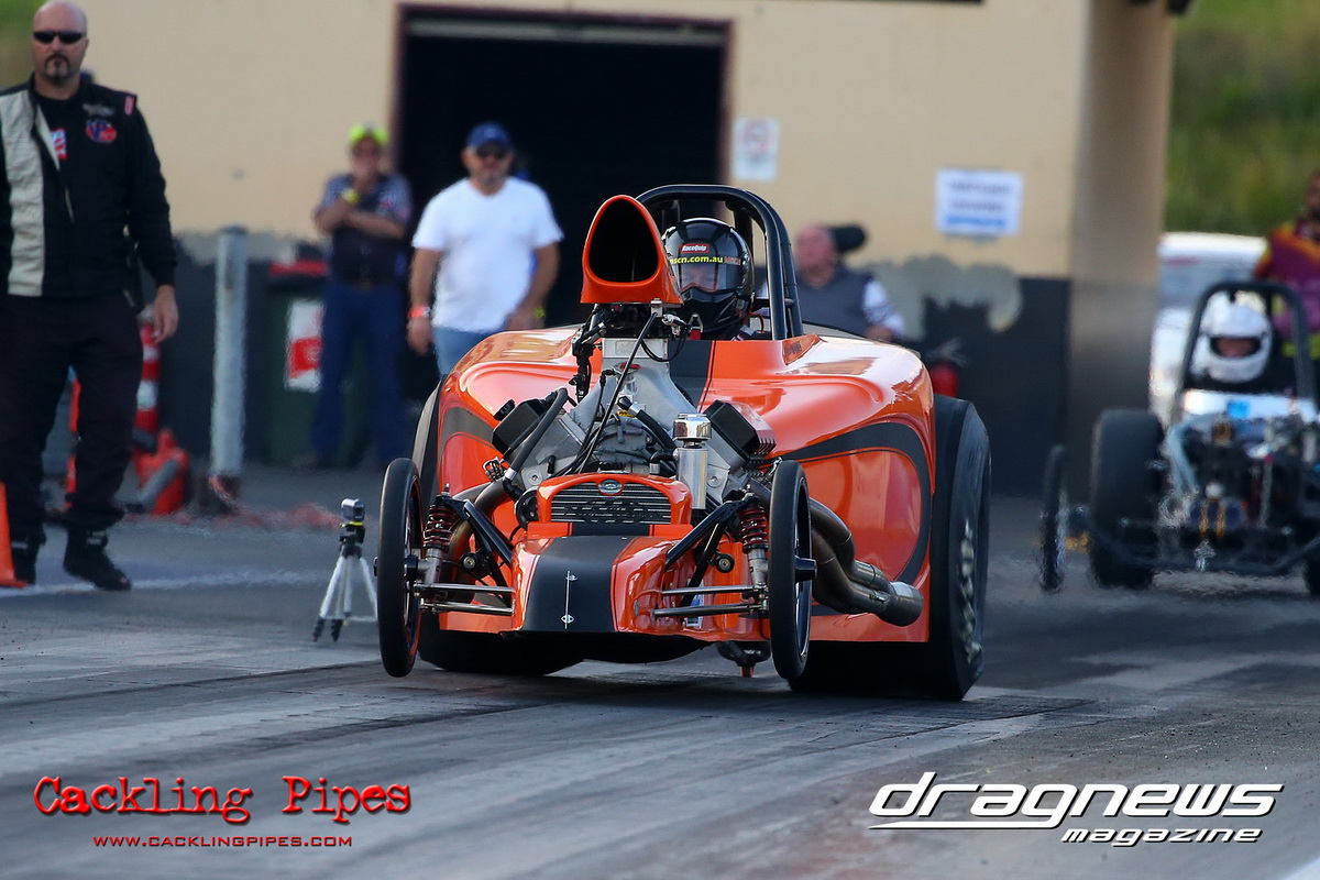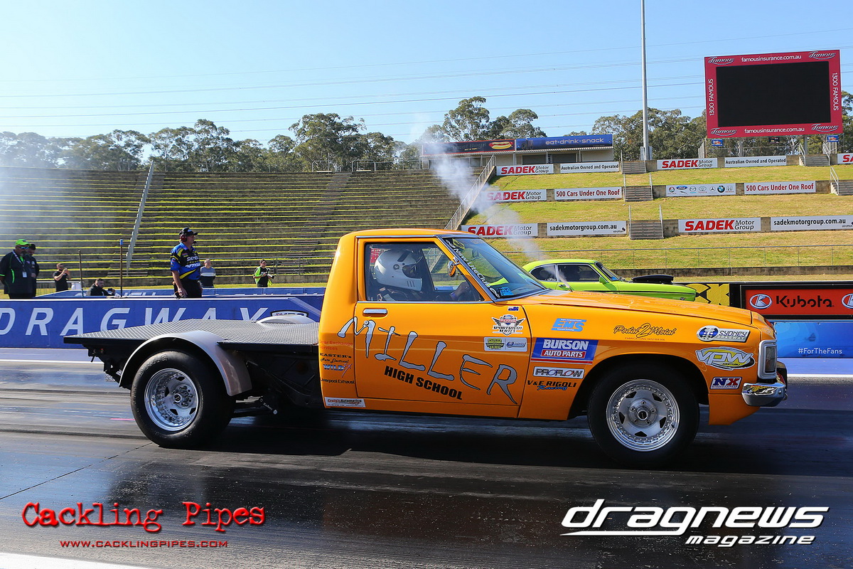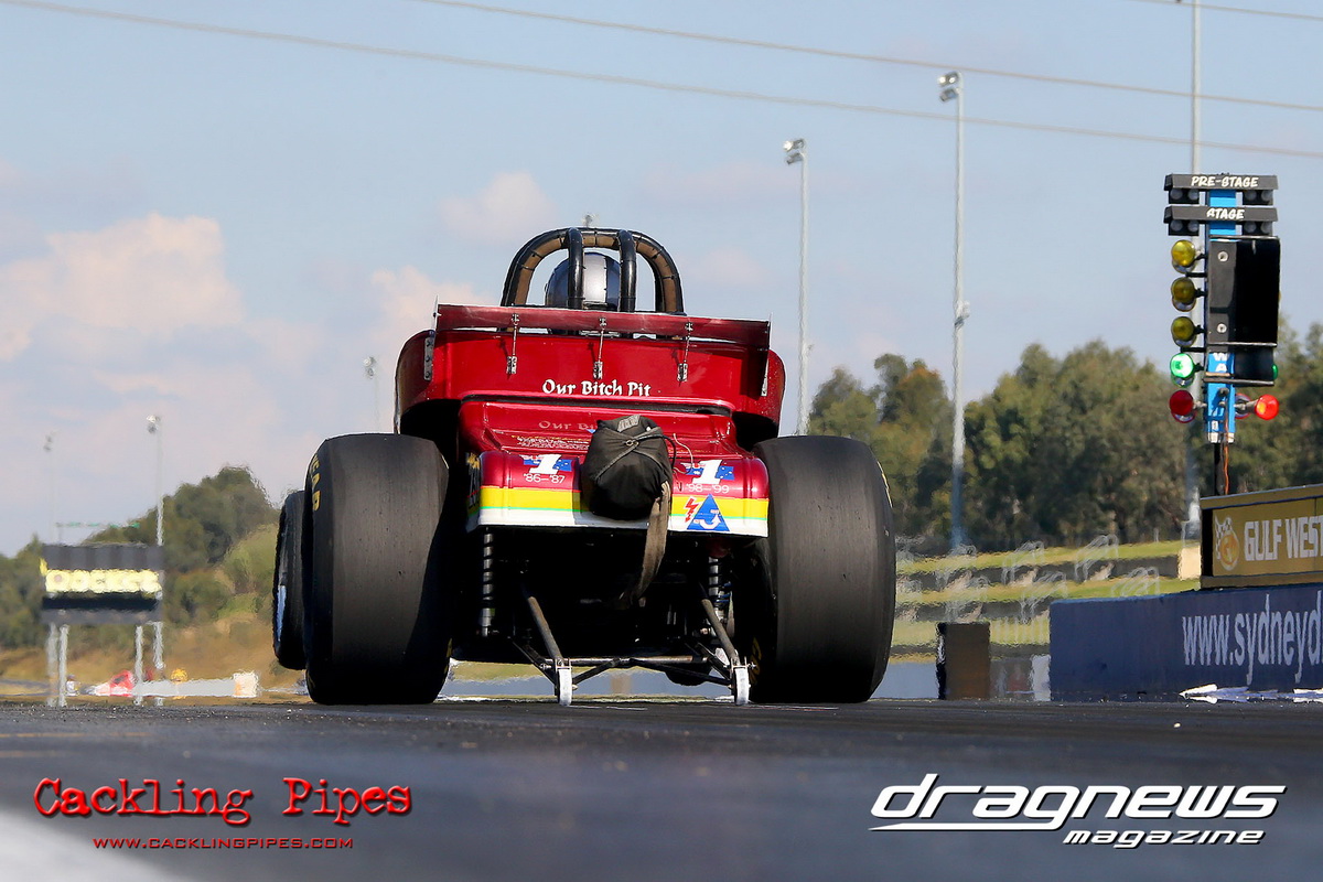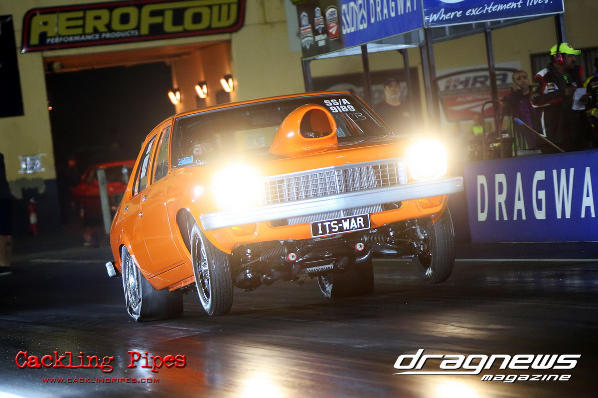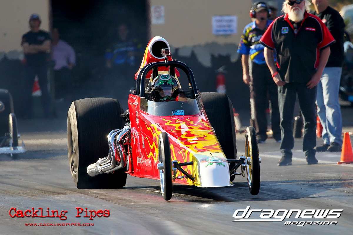 Darryl Stephen has fronted three of the four Super Gas final rounds this season in his old school Falcon. Taking a .025 to .097 holeshot in this final against Roy Romeo, Stephen racked up his second season win with a 9.91 to Romeo’s too quick 9.85.
