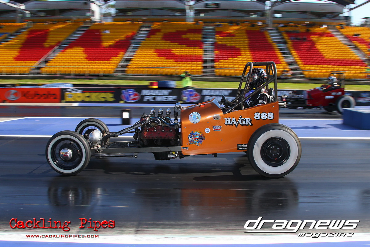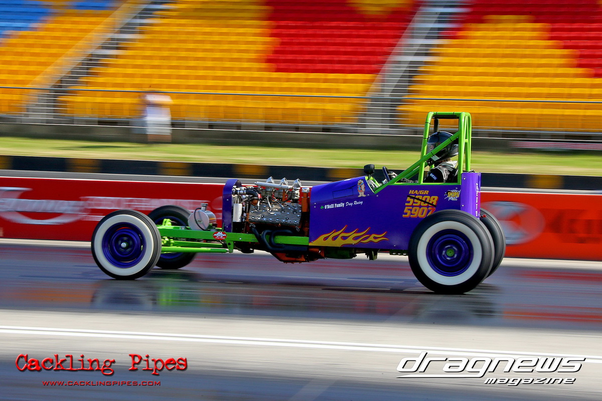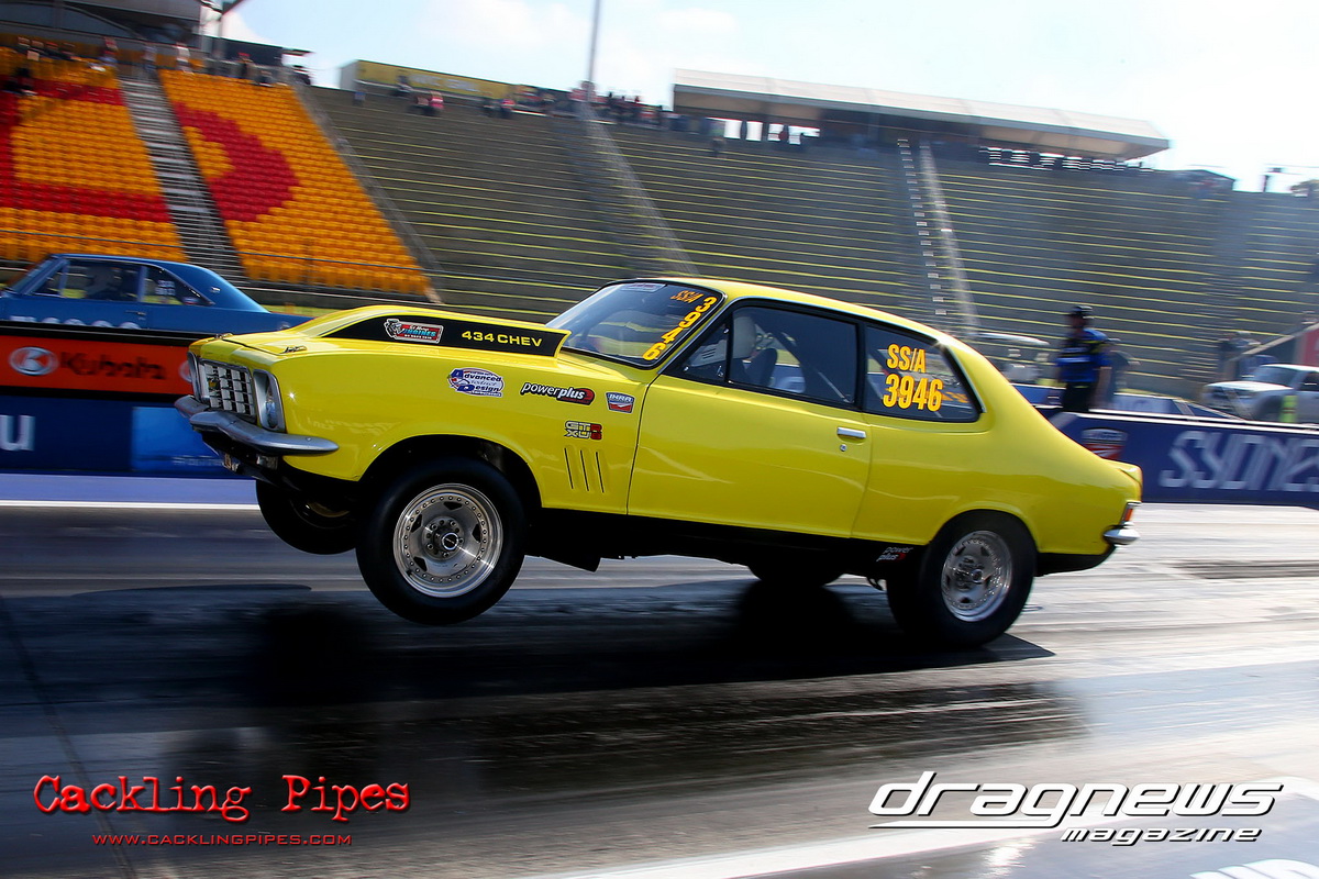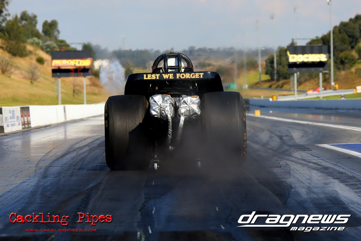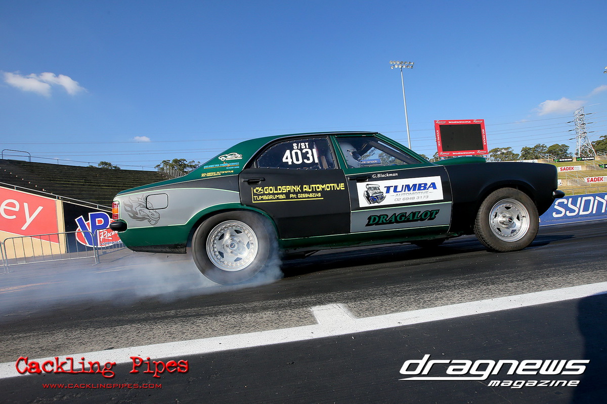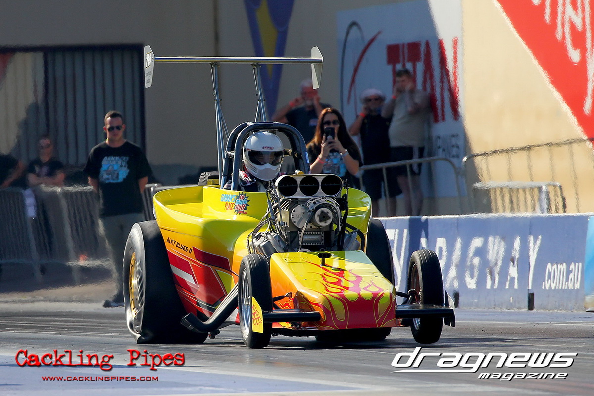 Darryl Stephen has fronted three of the four Super Gas final rounds this season in his old school Falcon. Taking a .025 to .097 holeshot in this final against Roy Romeo, Stephen racked up his second season win with a 9.91 to Romeo’s too quick 9.85.